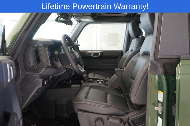 Bronco Badlands is nicely equipped with Equipment Group 332A Mid Package (2-Door Intelligent Access w/Lock/Unlock, Ambient Footwell Lighting, Connected Navigation, Dr & Pass Illuminated Sliding Visor Vanity Mirrors, Dual Smart Charging USB Ports, Dual-Zone Electronic Automatic Temperature Control, Front Row Heated Seats, Power Outlet - Back Side of Center Floor Console, and Rear Parking Sensors), Sasquatch Package (High Clearance Fender Flares, High Clearance Suspension, Position-Sensitive Bilstein Shock Absorbers, and Wheels: 17" Carbonized Gray Painted Aluminum), 4-Wheel Disc Brakes, 7 Speakers, ABS brakes, Air Conditioning, Alloy wheels, AM/FM radio: SiriusXM with 360L, AM/FM Stereo, Auto High-Beam Headlamps, Auto High-beam Headlights, Auto-dimming Rear-View mirror, BLIS Blind Spot Information System, Brake assist, Compass, Delay-off headlights, Door Storage Bags, Driver door bin, Driver vanity mirror, Dual front impact airbags, Dual front side impact airbags, Electronic Stability Control, Emergency communication system: 911 Assist, Exterior Parking Camera Rear, Ford Performance Heavy-Duty Modular Front Bumper, Front anti-roll bar, Front Bucket Seats, Front Center Armrest, Front fog lights, Front License Plate Bracket, Front reading lights, Front wheel independent suspension, Fully automatic headlights, Hard Top Sound Deadening Headliner, Heated door mirrors, Heated front seats, Heated steering wheel, Illuminated entry, Integrated roll-over protection, Internet access capable: FordPass Connect, Lane-Keeping System, Leather Shift Knob, Low tire pressure warning, Marine Grade Vinyl Heated Bucket Seats, Occupant sensing airbag, Outside temperature display, Overhead airbag, Overhead console, Panic alarm, Passenger door bin, Passenger vanity mirror, Power door mirrors, Power steering, Power windows, Pre-Collision Assist w/Automatic Emergency Braking, Radio data system, Rear-View Camera, Rear-Window Defroster & Washer, Remote keyless entry, Security system, Shadow Black Painted Hard Top, SiriusXM w/360L, Speed control, Split folding rear seat, Steering wheel mounted audio controls, SYNC 4, Tachometer, Telescoping steering wheel, Tilt steering wheel, Traction control, Trip computer, Variably intermittent wipers, Voltmeter, and Wheels: 17" Carbonized Gray-Painted Aluminum.