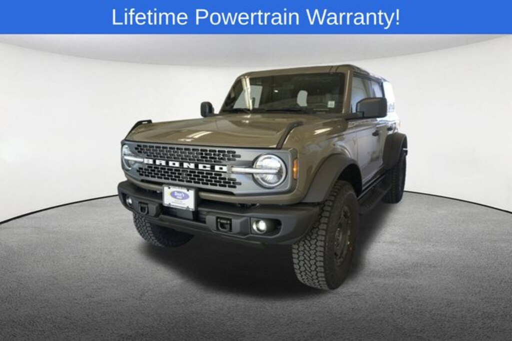 Bronco Badlands is nicely equipped with 4-Wheel Disc Brakes, 4.7 Axle Ratio, 7 Speakers, ABS brakes, Air Conditioning, Alloy wheels, AM/FM radio: SiriusXM with 360L, AM/FM Stereo, Auto High-beam Headlights, Auto-dimming Rear-View mirror, Brake assist, Compass, Delay-off headlights, Driver door bin, Driver vanity mirror, Dual front impact airbags, Dual front side impact airbags, Electronic Stability Control, Emergency communication system: 911 Assist, Exterior Parking Camera Rear, Front anti-roll bar, Front Bucket Seats, Front Center Armrest, Front fog lights, Front reading lights, Front wheel independent suspension, Fully automatic headlights, Heated door mirrors, Heated front seats, Heated steering wheel, Illuminated entry, Integrated roll-over protection, Leather Shift Knob, Low tire pressure warning, Marine Grade Vinyl Heated Bucket Seats, Occupant sensing airbag, Outside temperature display, Overhead airbag, Overhead console, Panic alarm, Passenger door bin, Passenger vanity mirror, Power door mirrors, Power steering, Power windows, Radio data system, Remote keyless entry, Security system, SiriusXM w/360L, Speed control, Split folding rear seat, Steering wheel mounted audio controls, SYNC 4, Tachometer, Telescoping steering wheel, Tilt steering wheel, Traction control, Trip computer, Variably intermittent wipers, Voltmeter, and Wheels: 17" Carbonized Gray-Painted Aluminum.