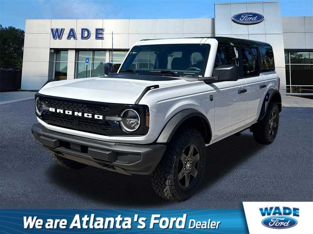 Bronco Big Bend is nicely equipped with Black Appearance Package (Black Molded-In-Color Door Handles, Black Molded-In-Color Fender Flares, Black Molded-In-Color Sideview Mirror Caps, and Black-Painted Molded-In-Color Grille), Equipment Group 222A Mid Package (Connected Navigation), 4-Wheel Disc Brakes, 4.46 Axle Ratio, 7 Speakers, ABS brakes, Air Conditioning, Alloy wheels, AM/FM radio: SiriusXM with 360L, AM/FM Stereo, Auto High-beam Headlights, Brake assist, Cloth Bucket Seats, Compass, Delay-off headlights, Driver door bin, Driver vanity mirror, Dual front impact airbags, Dual front side impact airbags, Electronic Stability Control, Emergency communication system: 911 Assist, Exterior Parking Camera Rear, Front anti-roll bar, Front Bucket Seats, Front Center Armrest, Front reading lights, Front wheel independent suspension, Fully automatic headlights, Hard Top Sound Deadening Headliner, Heated door mirrors, Illuminated entry, Integrated roll-over protection, Leather Shift Knob, Low tire pressure warning, Occupant sensing airbag, Outside temperature display, Overhead airbag, Overhead console, Panic alarm, Passenger door bin, Passenger vanity mirror, Power door mirrors, Power steering, Power windows, Radio data system, Rear-Window Defroster & Washer, Remote keyless entry, Security system, Shadow Black Painted Hard Top, SiriusXM w/360L, Speed control, Split folding rear seat, Steering wheel mounted audio controls, SYNC 4, Tachometer, Telescoping steering wheel, Tilt steering wheel, Traction control, Trip computer, Variably intermittent wipers, and Wheels: 17 Carbonized Gray-Painted Aluminum.