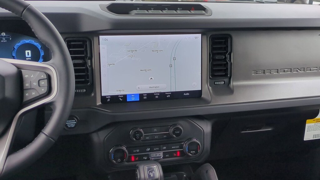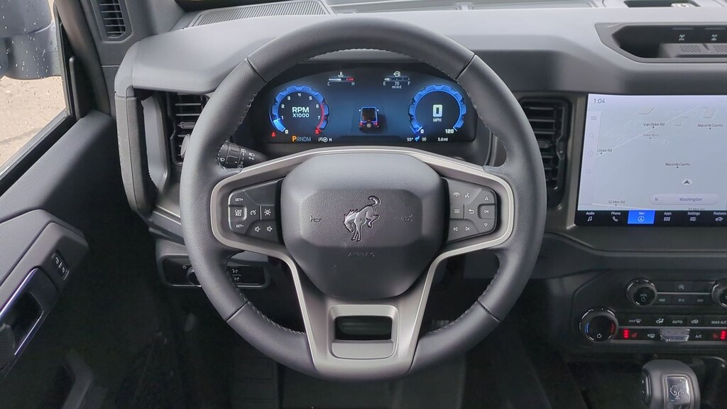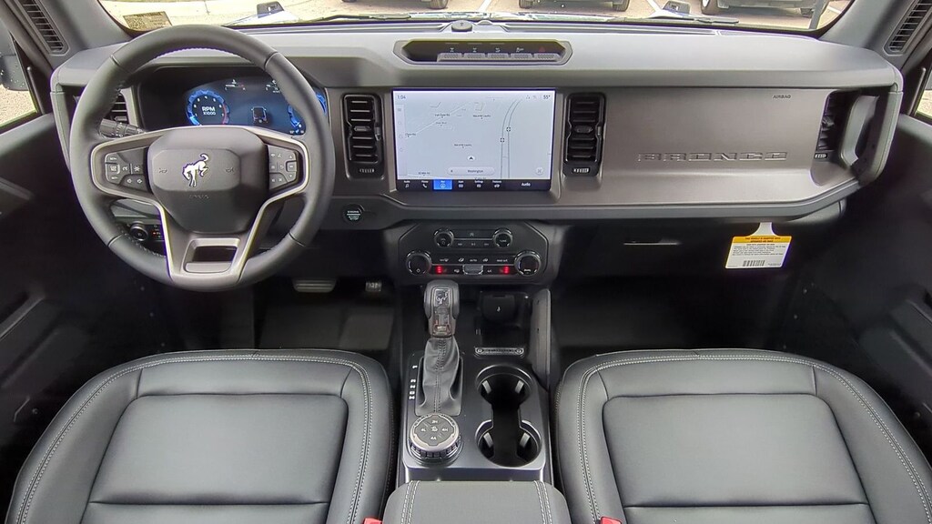 2025 Ford Bronco Big Bend Is nicely equipped with Black Diamond Package (Auxiliary Switches, LED Fog Lamps, Powder Coated Steel Front & Rear Bumpers, Rock Rails, Washout Capable Rubberized Flooring, and Wheels: 17" Black High Gloss Painted Aluminum), Equipment Group 222A Mid Package (2-Door Intelligent Access w/Lock/Unlock, Ambient Footwell Lighting, Connected Navigation, Dr & Pass Illuminated Sliding Visor Vanity Mirrors, Dual Smart Charging USB Ports, Dual-Zone Electronic Automatic Temperature Control, Front Row Heated Seats, Power Outlet - Back Side of Center Floor Console, and Rear Parking Sensors), Sasquatch Package (High Clearance Fender Flares, High Clearance Suspension, Position-Sensitive Bilstein Shock Absorbers, and Wheels: 17" Carbonized Gray Painted Aluminum), 4-Wheel Disc Brakes, 7 Speakers, ABS brakes, Air Conditioning, Alloy wheels, AM/FM radio: SiriusXM with 360L, AM/FM Stereo, Auto High-Beam Headlamps, Auto High-beam Headlights, BLIS Blind Spot Information System, Brake assist, Carbonized Gray Molded-In-Color Hard Top, Cloth Bucket Seats, Compass, Delay-off headlights, Driver door bin, Driver vanity mirror, Dual front impact airbags, Dual front side impact airbags, Electronic Stability Control, Emergency communication system: 911 Assist, Exterior Parking Camera Rear, First Aid Kit, Front anti-roll bar, Front Bucket Seats, Front Center Armrest, Front reading lights, Front wheel independent suspension, Fully automatic headlights, Hard Top Sound Deadening Headliner, Heated door mirrors, Illuminated entry, Integrated roll-over protection, Internet access capable: FordPass Connect, Lane-Keeping System, Leather Shift Knob, Low tire pressure warning, Occupant sensing airbag, Outside temperature display, Overhead airbag, Overhead console, Panic alarm, Passenger door bin, Passenger vanity mirror, Power door mirrors, Power steering, Power windows, Pre-Collision Assist w/Automatic Emergency Braking, Radio data system, Rear-View Camera, Rear-Window Defroster & Washer, Remote keyless entry, Security system, SiriusXM w/360L, Speed control, Split folding rear seat, Steering wheel mounted audio controls, SYNC 4, Tachometer, Telescoping steering wheel, Tilt steering wheel, Traction control, Trip computer, Variably intermittent wipers, and Wheels: 17" Carbonized Gray-Painted Aluminum. Factory MSRP: $58,295 Dealer Discount of $3,887 off MSRP
