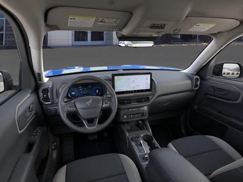 BLACK DIAMOND OFF-ROAD PACKAGE Deletes standard tire inflator and sealant kit and overhead console w/sunglasses storage, Brush Guard, Recovery Hooks, 2 casted in front and 2 D-ring in rear, 2nd Row Carpeted Seatback, rubberized seatback mat, Auxiliary Switches & Wiring, Class II Trailer Tow Pack w/Trailer Sway Control, full size spare wheel, full size spare tire and rubberized cargo floor, Underbody Protection, steel skid plate under engine and steel canister shield, Cargo Mat, Front & Rear Black Bumpers, Molded-in-color w/steel plates, Cargo Management System (Shelf/Divider/Table), Interior Grab Handle, 1 in the center floor console front row passenger side, Fender Tie Downs, 110V/400W AC Power Outlet, Behind center console and cargo area, Wheels: 17 Carbonized Gray Painted Aluminum. 2025 Ford Bronco Sport with Velocity Blue exterior and Medium Light Smoked Truffle interior features a 3 Cylinder Engine with 181 HP at 6000 RPM*.