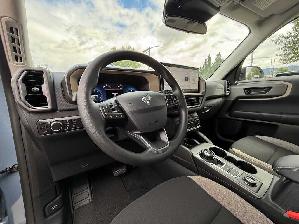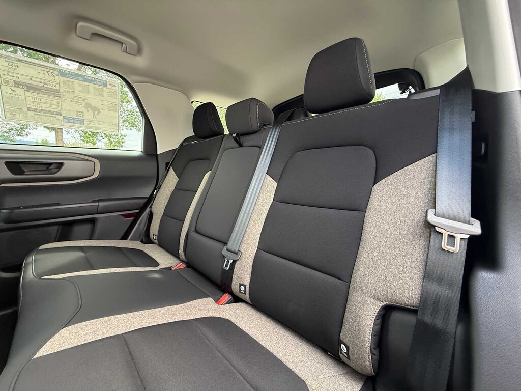 I got a 2025 Big Bend with the black diamond off road package. The steel modular front and rear in combination with bush guard gives this year model. A very aggressive off road look. With the ability to easily mount accessories and power them with the factory installed auxiliary switches. Hitch receiver seamlessly mounted into the rear steel bumper flanked by some very chunky recovery points. The upgraded aluminum rims wrapped with Continental all-terrains. It make this the most capable bronco sport yet. The interior of the 2025 has been updated with a new 13 inch touchscreen with Android Auto and apple car play. The lines of the dash flow elegantly from the new infotainment screen to the new all digital 12 inch gauge chaster. Toggling through the different modes on the gauge chaster is very intuitive, and all the displays are laid out very cleanly. Moving from gauge chaster the center storage cubby just below the infotainment screen there is a wireless charger and USB/ USB-c ports. The passenger side of that same cubby gets a handle and a matching one on the roof just in case the driver bucks a little too much. The passenger also gets a mesh storage area. That leads us to the fact this vehicle has tons of storage options all throughout. You have pockets on the sides of the front two seat big enough for the latest new phones. Very generous door storage on all four doors plus huge glove box and center console with 12 volt outlet. The back side of the center console has air vents and another 12 volt outlet plus a 110 outlet. Now getting to the cargo area it is massive for a crossover SUV. With off road package you get a cargo management system and a very nice rubber mat. Under that there is a full size tire plus scissor jack and funnel to use with the capless filler system. On the liftgate there isa pair of very bright led lights turned on with a switch in the cargo area. This feature packed vehicle has tons awesome gadgets and hidden a little homages I spend all day just talk that. At the end of the day it is car. So how does it drive. It is wonderful, the steering and pedal response is beautiful. Rides very smooth and little to no road noise going down the highway. The active cruise control and co-pilot 360 have been very handy. The car literally drives itself most of the time. There is not enough good things I could same about this car. I love it and you pick one too. You will see what I mean. - 5.0