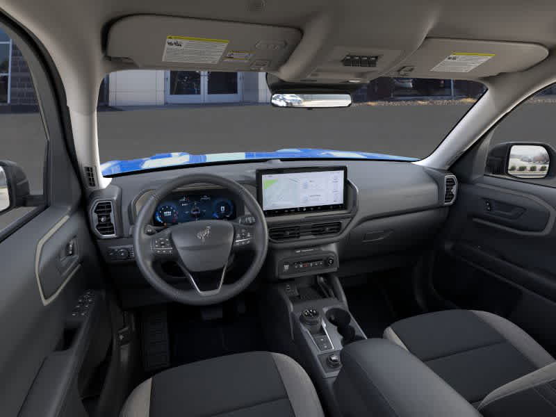 BLACK DIAMOND OFF-ROAD PACKAGE Deletes standard tire inflator and sealant kit and overhead console w/sunglasses storage, Brush Guard, Recovery Hooks, 2 casted in front and 2 D-ring in rear, 2nd Row Carpeted Seatback, rubberized seatback mat, Auxiliary Switches & Wiring, Class II Trailer Tow Pack w/Trailer Sway Control, full size spare wheel, full size spare tire and rubberized cargo floor, Underbody Protection, steel skid plate under engine, steel fuel tank shield and steel canister shield, Cargo Mat, Front & Rear Black Bumpers, Molded-in-color w/steel plates, Cargo Management System (Shelf/Divider/Table), Interior Grab Handle, 1 in the center floor console front row passenger side, Fender Tie Downs, 110V/400W AC Power Outlet, Behind center console and cargo area, Wheels: 17 Carbonized, CONVENIENCE PACKAGE Heated 8-Way Power Drivers Seat, (Fore/aft, up/down, recline, lumbar), Front Driver/Passenger Seat Back Map Pockets, Universal Garage Door Opener (UGDO), Premium Wrapped Steering Wheel, LED Fog Lamps. 2025 Ford Bronco Sport with Velocity Blue exterior and Medium Light Smoked Truffle interior features a 3 Cylinder Engine with 181 HP at 6000 RPM*.