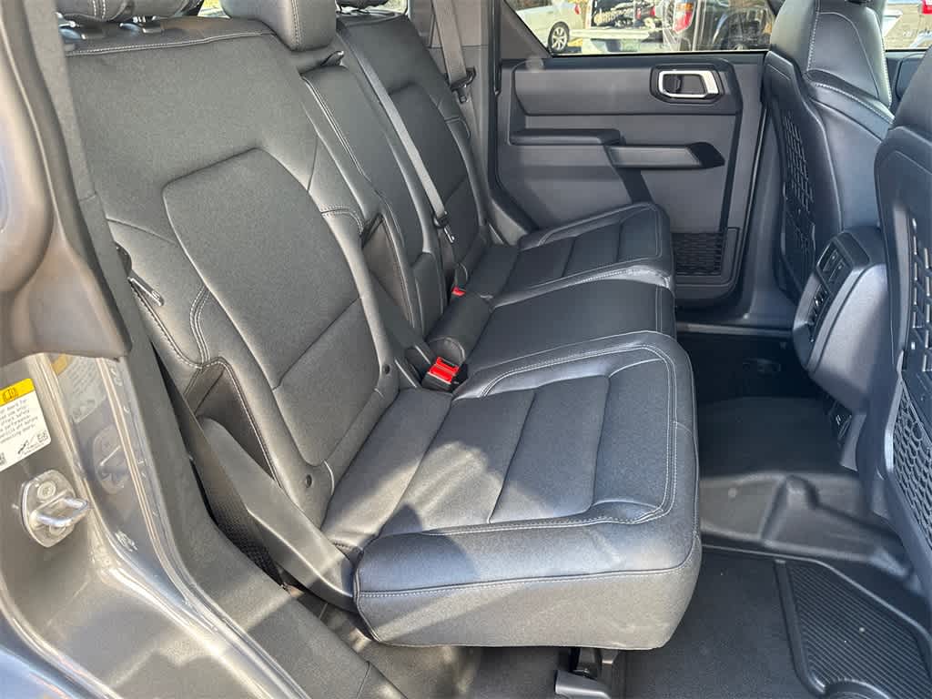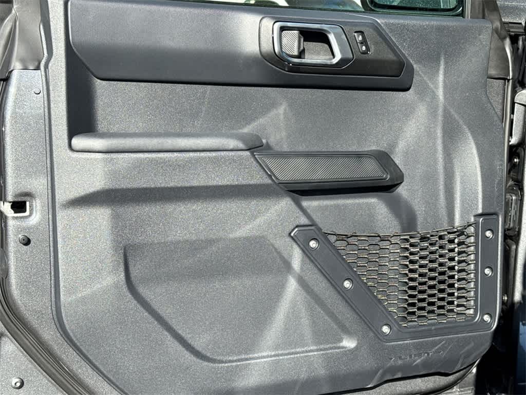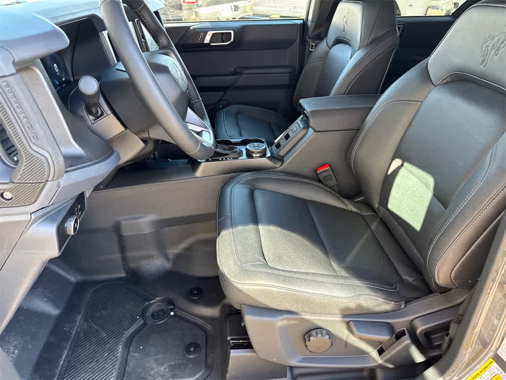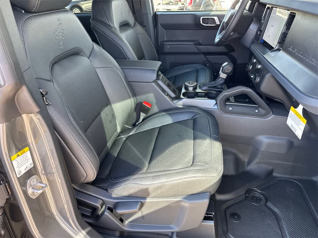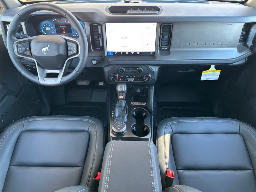 Bronco Big Bend is nicely equipped with 4-Wheel Disc Brakes, 4.46 Axle Ratio, 7 Speakers, ABS brakes, Air Conditioning, Alloy wheels, AM/FM radio: SiriusXM with 360L, AM/FM Stereo, Auto High-beam Headlights, Brake assist, Cloth Bucket Seats, Compass, Connected Navigation, Delay-off headlights, Driver door bin, Driver vanity mirror, Dual front impact airbags, Dual front side impact airbags, Electronic Stability Control, Emergency communication system: 911 Assist, Exterior Parking Camera Rear, Front anti-roll bar, Front Bucket Seats, Front Center Armrest, Front reading lights, Front wheel independent suspension, Fully automatic headlights, Heated door mirrors, Illuminated entry, Integrated roll-over protection, Internet access capable: FordPass Connect, Leather Shift Knob, Low tire pressure warning, Occupant sensing airbag, Outside temperature display, Overhead airbag, Overhead console, Panic alarm, Passenger door bin, Passenger vanity mirror, Power door mirrors, Power steering, Power windows, Radio data system, Remote keyless entry, Security system, SiriusXM w/360L, Speed control, Split folding rear seat, Steering wheel mounted audio controls, SYNC 4, Tachometer, Telescoping steering wheel, Tilt steering wheel, Traction control, Trip computer, Variably intermittent wipers, and Wheels: 17 Carbonized Gray-Painted Aluminum.