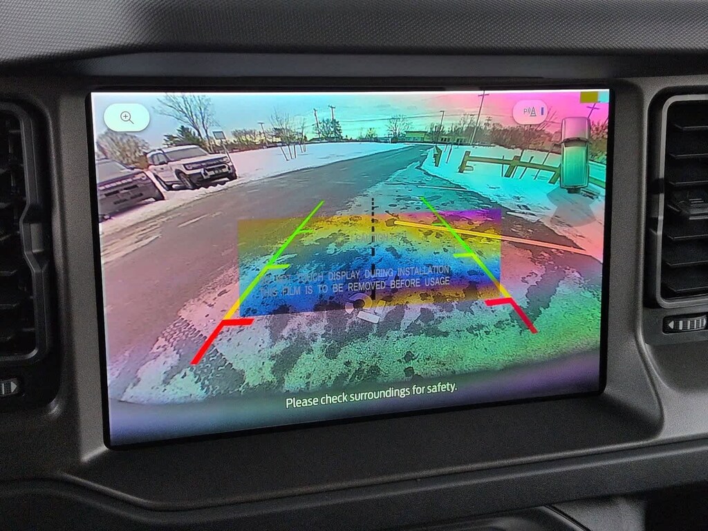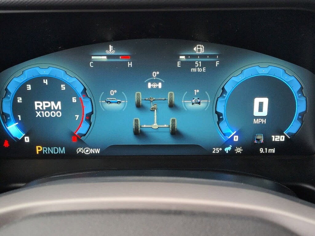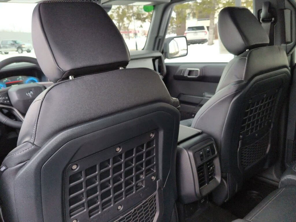 Bronco Badlands is nicely equipped with Equipment Group 332A Mid Package (2-Door Intelligent Access w/Lock/Unlock, Ambient Footwell Lighting, Connected Navigation, Dr & Pass Illuminated Sliding Visor Vanity Mirrors, Dual Smart Charging USB Ports, Dual-Zone Electronic Automatic Temperature Control, Front Row Heated Seats, Power Outlet - Back Side of Center Floor Console, and Rear Parking Sensors), 4-Wheel Disc Brakes, 4.7 Axle Ratio, 7 Speakers, ABS brakes, Air Conditioning, Alloy wheels, AM/FM radio: SiriusXM with 360L, AM/FM Stereo, Auto High-Beam Headlamps, Auto High-beam Headlights, Auto-dimming Rear-View mirror, BLIS Blind Spot Information System, Brake assist, Carbonized Gray Molded-In-Color Hard Top, Compass, Delay-off headlights, Door Storage Bags, Driver door bin, Driver vanity mirror, Dual front impact airbags, Dual front side impact airbags, Electronic Stability Control, Emergency communication system: 911 Assist, Exterior Parking Camera Rear, Front & Rear Floor Liners, Front anti-roll bar, Front Bucket Seats, Front Center Armrest, Front fog lights, Front License Plate Bracket, Front reading lights, Front wheel independent suspension, Fully automatic headlights, Hard Top Sound Deadening Headliner, Heated door mirrors, Heated front seats, Heated steering wheel, Illuminated entry, Integrated roll-over protection, Internet access capable: FordPass Connect, Lane-Keeping System, Leather Shift Knob, Low tire pressure warning, Marine Grade Vinyl Heated Bucket Seats, Occupant sensing airbag, Outside temperature display, Overhead airbag, Overhead console, Panic alarm, Passenger door bin, Passenger vanity mirror, Power door mirrors, Power steering, Power windows, Pre-Collision Assist w/Automatic Emergency Braking, Radio data system, Rear-View Camera, Rear-Window Defroster & Washer, Remote keyless entry, Security system, SiriusXM w/360L, Speed control, Split folding rear seat, Steering wheel mounted audio controls, SYNC 4, Tachometer, Telescoping steering wheel, Tilt steering wheel, Traction control, Trip computer, Variably intermittent wipers, Voltmeter, and Wheels: 17 Carbonized Gray-Painted Aluminum.