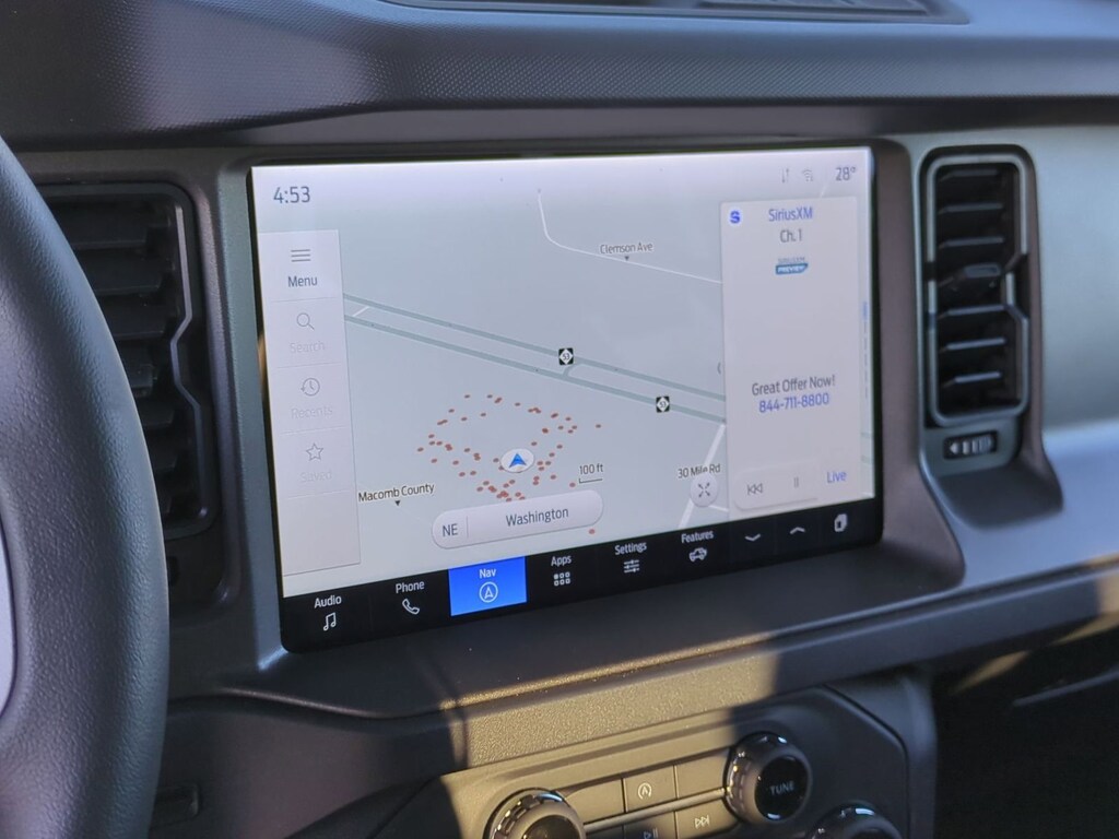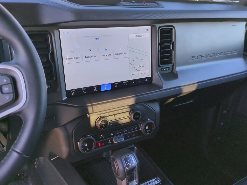 2025 Ford Bronco Big Bend Is nicely equipped with Equipment Group 222A Mid Package (2-Door Intelligent Access w/Lock/Unlock, Ambient Footwell Lighting, Connected Navigation, Dr & Pass Illuminated Sliding Visor Vanity Mirrors, Dual Smart Charging USB Ports, Dual-Zone Electronic Automatic Temperature Control, Front Row Heated Seats, Power Outlet - Back Side of Center Floor Console, and Rear Parking Sensors), 4-Wheel Disc Brakes, 4.46 Axle Ratio, 7 Speakers, ABS brakes, Air Conditioning, Alloy wheels, AM/FM radio: SiriusXM with 360L, AM/FM Stereo, Auto High-Beam Headlamps, Auto High-beam Headlights, BLIS Blind Spot Information System, Brake assist, Carbonized Gray Molded-In-Color Hard Top, Cloth Bucket Seats, Compass, Delay-off headlights, Driver door bin, Driver vanity mirror, Dual front impact airbags, Dual front side impact airbags, Electronic Stability Control, Emergency communication system: 911 Assist, Exterior Parking Camera Rear, First Aid Kit, Front anti-roll bar, Front Bucket Seats, Front Center Armrest, Front reading lights, Front wheel independent suspension, Fully automatic headlights, Hard Top Sound Deadening Headliner, Heated door mirrors, Illuminated entry, Integrated roll-over protection, Internet access capable: FordPass Connect, Lane-Keeping System, Leather Shift Knob, Low tire pressure warning, Occupant sensing airbag, Outside temperature display, Overhead airbag, Overhead console, Panic alarm, Passenger door bin, Passenger vanity mirror, Power door mirrors, Power steering, Power windows, Pre-Collision Assist w/Automatic Emergency Braking, Radio data system, Rear-View Camera, Rear-Window Defroster & Washer, Remote keyless entry, Security system, Side Step, SiriusXM w/360L, Speed control, Split folding rear seat, Steering wheel mounted audio controls, SYNC 4, Tachometer, Telescoping steering wheel, Tilt steering wheel, Traction control, Trip computer, Variably intermittent wipers, and Wheels: 17" Carbonized Gray-Painted Aluminum. Factory MSRP: $50,810 Dealer Discount of $3,128 off MSRP