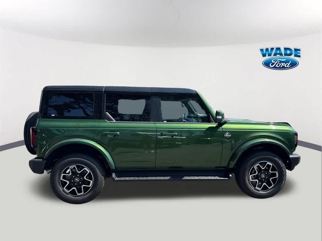 Bronco Outer Banks Advanced is nicely equipped with 18 Bright Machined Aluminum Wheels, 3.73 Axle Ratio, 4-Wheel Disc Brakes, 7 Speakers, ABS brakes, Air Conditioning, Alloy wheels, AM/FM radio: SiriusXM with 360L, AM/FM Stereo, Auto High-beam Headlights, Auto-dimming Rear-View mirror, Automatic temperature control, Brake assist, Compass, Connected Navigation, Delay-off headlights, Driver door bin, Driver vanity mirror, Dual front impact airbags, Dual front side impact airbags, Electronic Stability Control, Emergency communication system: 911 Assist, Exterior Parking Camera Rear, Front anti-roll bar, Front Bucket Seats, Front Center Armrest, Front dual zone A/C, Front fog lights, Front reading lights, Front wheel independent suspension, Fully automatic headlights, Heated door mirrors, Heated front seats, Heated Leather-Trimmed/Vinyl Bucket Seats, Heated steering wheel, Illuminated entry, Integrated roll-over protection, Leather Shift Knob, Low tire pressure warning, Navigation system: Connected Navigation, Occupant sensing airbag, Outside temperature display, Overhead airbag, Overhead console, Panic alarm, Passenger door bin, Passenger vanity mirror, Power door mirrors, Power driver seat, Power passenger seat, Power steering, Power windows, Radio data system, Rear seat center armrest, Remote keyless entry, Security system, SiriusXM w/360L, Speed control, Split folding rear seat, Steering wheel mounted audio controls, SYNC 4, Tachometer, Telescoping steering wheel, Tilt steering wheel, Traction control, Trip computer, Variably intermittent wipers, and Voltmeter.