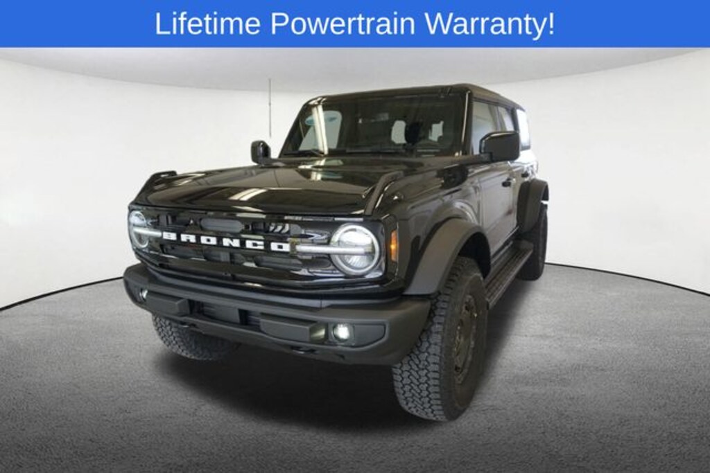 Bronco Outer Banks Advanced is nicely equipped with 18" Bright Machined Aluminum Wheels, 3.73 Axle Ratio, 4-Wheel Disc Brakes, 7 Speakers, ABS brakes, Air Conditioning, Alloy wheels, AM/FM radio: SiriusXM with 360L, AM/FM Stereo, Auto High-beam Headlights, Auto-dimming Rear-View mirror, Automatic temperature control, Brake assist, Compass, Connected Navigation, Delay-off headlights, Driver door bin, Driver vanity mirror, Dual front impact airbags, Dual front side impact airbags, Electronic Stability Control, Emergency communication system: 911 Assist, Exterior Parking Camera Rear, Front anti-roll bar, Front Bucket Seats, Front Center Armrest, Front dual zone A/C, Front fog lights, Front reading lights, Front wheel independent suspension, Fully automatic headlights, Heated door mirrors, Heated front seats, Heated Leather-Trimmed/Vinyl Bucket Seats, Heated steering wheel, Illuminated entry, Integrated roll-over protection, Leather Shift Knob, Low tire pressure warning, Navigation system: Connected Navigation, Occupant sensing airbag, Outside temperature display, Overhead airbag, Overhead console, Panic alarm, Passenger door bin, Passenger vanity mirror, Power door mirrors, Power driver seat, Power passenger seat, Power steering, Power windows, Radio data system, Rear seat center armrest, Remote keyless entry, Security system, SiriusXM w/360L, Speed control, Split folding rear seat, Steering wheel mounted audio controls, SYNC 4, Tachometer, Telescoping steering wheel, Tilt steering wheel, Traction control, Trip computer, Variably intermittent wipers, and Voltmeter.