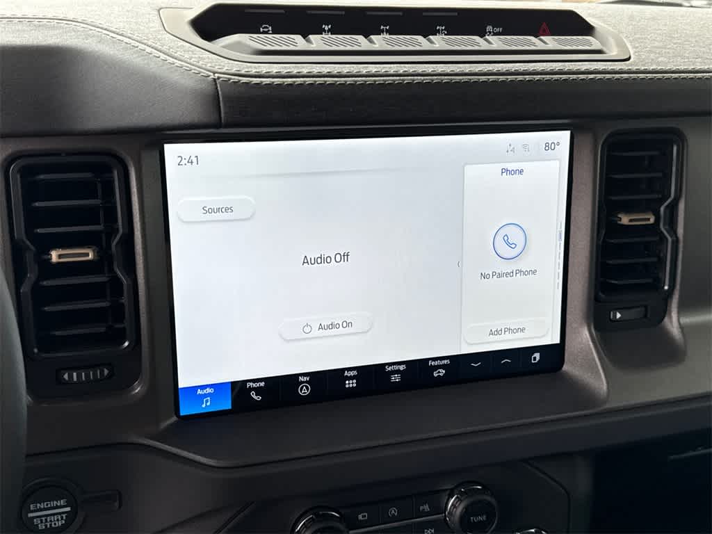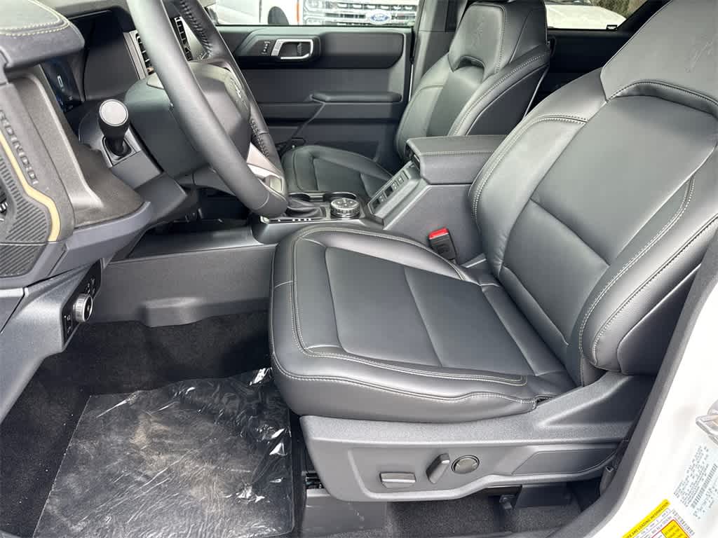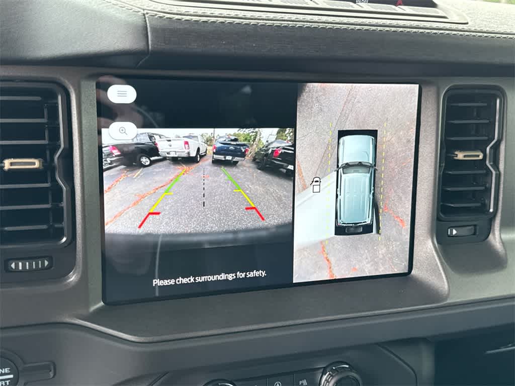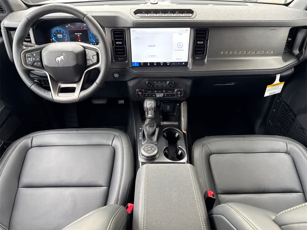 Bronco Badlands is nicely equipped with Equipment Group 334A Lux Package (2-Door Intelligent Access w/Lock/Unlock, 360-Degree Camera, Adaptive Cruise Control, Ambient Footwell Lighting, Connected Navigation, Dr & Pass Illuminated Sliding Visor Vanity Mirrors, Dual Smart Charging USB Ports, Dual-Zone Electronic Automatic Temperature Control, Evasive Steering Assist, Front Parking Sensors, Front Row Heated Seats, Information on Demand Panel, Power Outlet - Back Side of Center Floor Console, Radio: B&O Sound System by Bang & Olufsen, Rear Parking Sensors, Sideview Mirrors, and Universal Garage Door Opener), 4-Wheel Disc Brakes, 4.7 Axle Ratio, 7 Speakers, ABS brakes, Air Conditioning, Alloy wheels, AM/FM radio: SiriusXM with 360L, AM/FM Stereo, Auto High-Beam Headlamps, Auto High-beam Headlights, Auto-dimming Rear-View mirror, BLIS Blind Spot Information System, Brake assist, Compass, Delay-off headlights, Driver door bin, Driver vanity mirror, Dual front impact airbags, Dual front side impact airbags, Electronic Stability Control, Emergency communication system: 911 Assist, Exterior Parking Camera Rear, Front anti-roll bar, Front Bucket Seats, Front Center Armrest, Front fog lights, Front reading lights, Front wheel independent suspension, Fully automatic headlights, Hard Top Sound Deadening Headliner, Heated door mirrors, Heated front seats, Heated steering wheel, Illuminated entry, Integrated roll-over protection, Lane-Keeping System, Leather Shift Knob, Leather-Trimmed/Vinyl Bucket Seats, Low tire pressure warning, Marine Grade Vinyl Heated Bucket Seats, Occupant sensing airbag, Outside temperature display, Overhead airbag, Overhead console, Panic alarm, Passenger door bin, Passenger vanity mirror, Power door mirrors, Power steering, Power windows, Pre-Collision Assist w/Automatic Emergency Braking, Radio data system, Rear-View Camera, Rear-Window Defroster & Washer, Remote keyless entry, Security system, Shadow Black Painted Hard Top, SiriusXM w/360L, Speed control, Split folding rear seat, Steering wheel mounted audio controls, SYNC 4, Tachometer, Telescoping steering wheel, Tilt steering wheel, Traction control, Trip computer, Variably intermittent wipers, and Voltmeter.