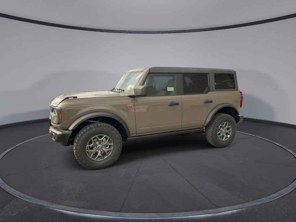 Bronco Badlands is nicely equipped with Equipment Group 332A Mid Package (2-Door Intelligent Access w/Lock/Unlock, Ambient Footwell Lighting, Connected Navigation, Dr & Pass Illuminated Sliding Visor Vanity Mirrors, Dual Smart Charging USB Ports, Dual-Zone Electronic Automatic Temperature Control, Front Row Heated Seats, Power Outlet - Back Side of Center Floor Console, and Rear Parking Sensors), 4-Wheel Disc Brakes, 4.7 Axle Ratio, 7 Speakers, ABS brakes, Air Conditioning, Alloy wheels, AM/FM radio: SiriusXM with 360L, AM/FM Stereo, Auto High-Beam Headlamps, Auto High-beam Headlights, Auto-dimming Rear-View mirror, BLIS Blind Spot Information System, Brake assist, Carbonized Gray Molded-In-Color Hard Top, Compass, Delay-off headlights, Driver door bin, Driver vanity mirror, Dual front impact airbags, Dual front side impact airbags, Electronic Stability Control, Emergency communication system: 911 Assist, Exterior Parking Camera Rear, Front & Rear Floor Liners, Front anti-roll bar, Front Bucket Seats, Front Center Armrest, Front fog lights, Front License Plate Bracket, Front reading lights, Front wheel independent suspension, Fully automatic headlights, Heated door mirrors, Heated front seats, Heated steering wheel, Illuminated entry, Integrated roll-over protection, Internet access capable: FordPass Connect, Lane-Keeping System, Leather Shift Knob, Low tire pressure warning, Marine Grade Vinyl Heated Bucket Seats, Occupant sensing airbag, Outside temperature display, Overhead airbag, Overhead console, Panic alarm, Passenger door bin, Passenger vanity mirror, Power door mirrors, Power steering, Power windows, Pre-Collision Assist w/Automatic Emergency Braking, Radio data system, Rear-View Camera, Rear-Window Defroster & Washer, Remote keyless entry, Security system, SiriusXM w/360L, Speed control, Split folding rear seat, Steering wheel mounted audio controls, SYNC 4, Tachometer, Telescoping steering wheel, Tilt steering wheel, Traction control, Trip computer, Variably intermittent wipers, Voltmeter, and Wheels: 17 Carbonized Gray-Painted Aluminum.