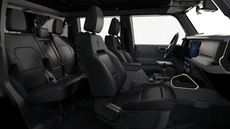 Bronco Badlands is nicely equipped with Equipment Group 334A Lux Package (2-Door Intelligent Access w/Lock/Unlock, 360-Degree Camera, Adaptive Cruise Control, Ambient Footwell Lighting, Connected Navigation, Dr & Pass Illuminated Sliding Visor Vanity Mirrors, Dual Smart Charging USB Ports, Dual-Zone Electronic Automatic Temperature Control, Evasive Steering Assist, Front Parking Sensors, Front Row Heated Seats, Information on Demand Panel, Power Outlet - Back Side of Center Floor Console, Radio: B&O Sound System by Bang & Olufsen, Rear Parking Sensors, Sideview Mirrors, and Universal Garage Door Opener), 4-Wheel Disc Brakes, 4.7 Axle Ratio, 7 Speakers, ABS brakes, Air Conditioning, Alloy wheels, AM/FM radio: SiriusXM with 360L, AM/FM Stereo, Auto High-Beam Headlamps, Auto High-beam Headlights, Auto-dimming Rear-View mirror, BLIS Blind Spot Information System, Brake assist, Carbonized Gray Molded-In-Color Hard Top, Compass, Delay-off headlights, Door Storage Bags, Driver door bin, Driver vanity mirror, Dual front impact airbags, Dual front side impact airbags, Electronic Stability Control, Emergency communication system: 911 Assist, Exterior Parking Camera Rear, Front anti-roll bar, Front Bucket Seats, Front Center Armrest, Front fog lights, Front reading lights, Front wheel independent suspension, Fully automatic headlights, Heated door mirrors, Heated front seats, Heated steering wheel, Illuminated entry, Integrated roll-over protection, Lane-Keeping System, Leather Shift Knob, Leather-Trimmed/Vinyl Bucket Seats, Low tire pressure warning, Marine Grade Vinyl Heated Bucket Seats, Occupant sensing airbag, Outside temperature display, Overhead airbag, Overhead console, Panic alarm, Passenger door bin, Passenger vanity mirror, Power door mirrors, Power steering, Power windows, Pre-Collision Assist w/Automatic Emergency Braking, Radio data system, Raptor-Style Running Board, Rear-View Camera, Rear-Window Defroster & Washer, Remote keyless entry, Security system, SiriusXM w/360L, Speed control, Split folding rear seat, Steering wheel mounted audio controls, SYNC 4, Tachometer, Telescoping steering wheel, Tilt steering wheel, Traction control, Trip computer, Variably intermittent wipers, Voltmeter, and Wheels: 17" Carbonized Gray-Painted Aluminum. See dealer for details. Price may include Ford Employee discount. Price does not include licensing costs, registration fees, taxes and dealer doc fee of $280, which are to be paid by the consumer.$2500 - Retail Customer Cash. Exp. 03/31/2026 $750 - 2026 College Student Recognition Exclusive Cash Reward Pgm. Exp. 01/04/2027