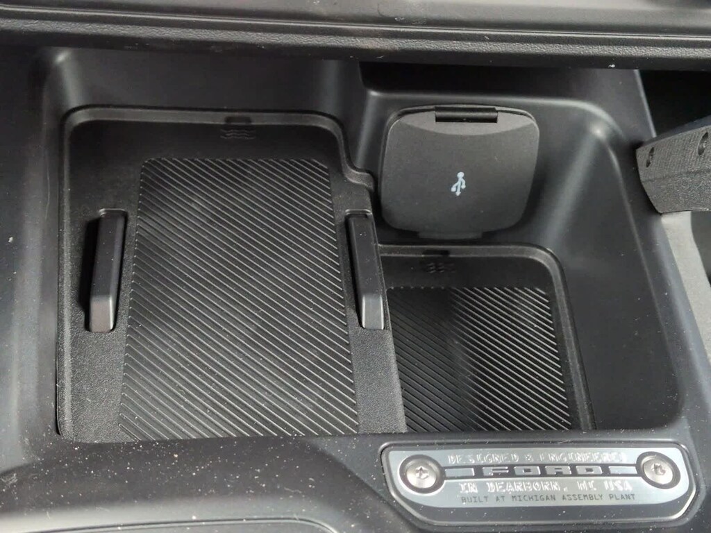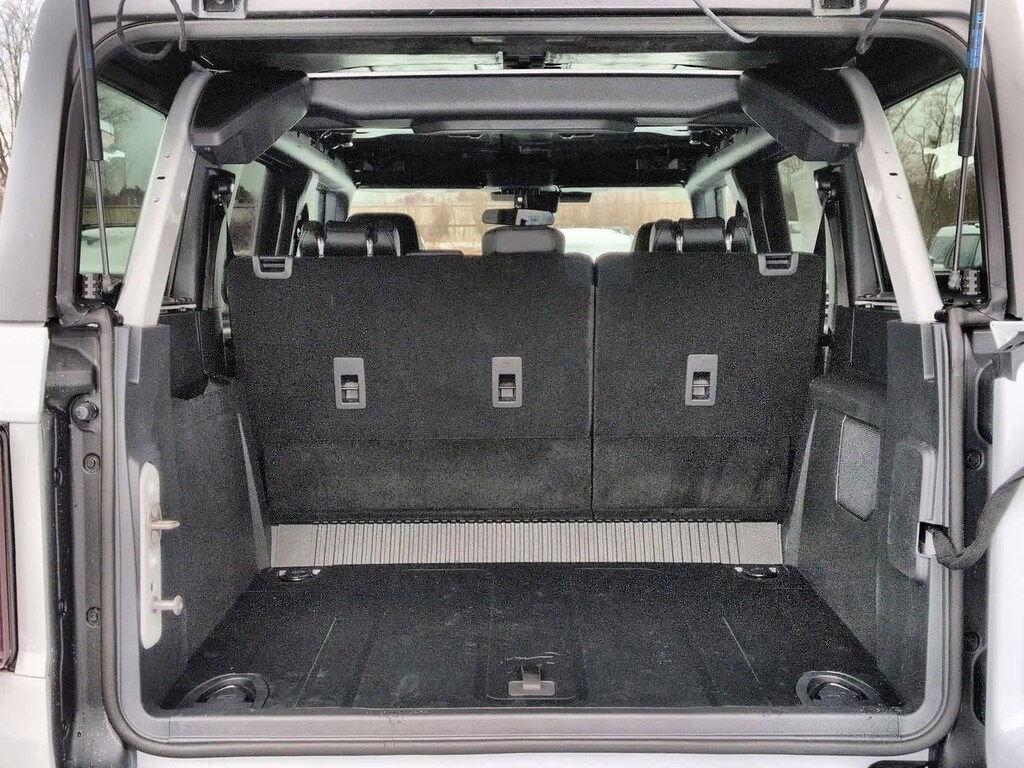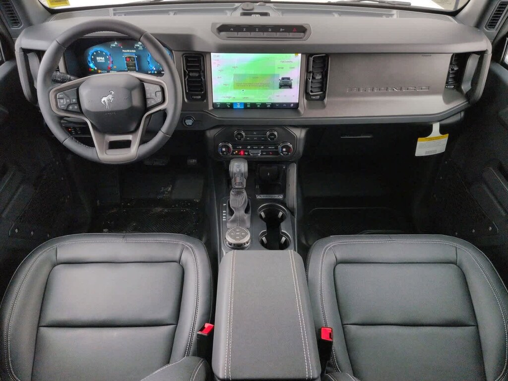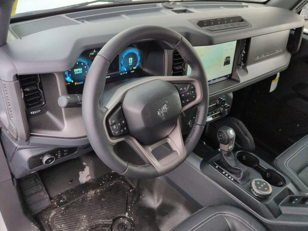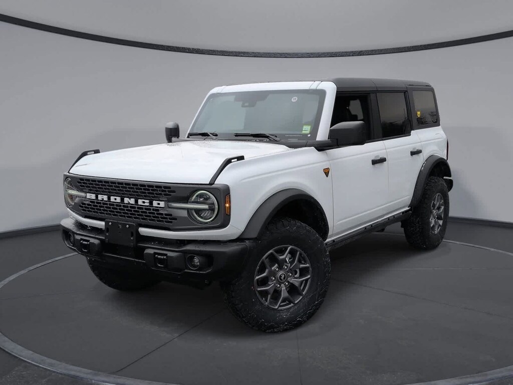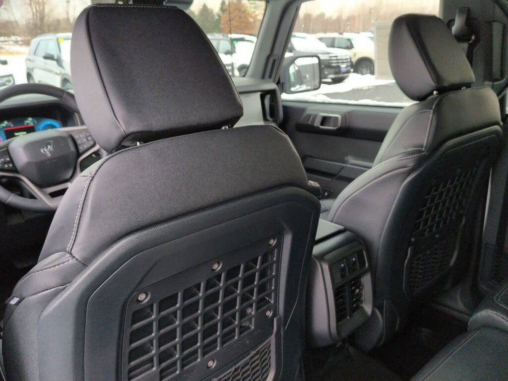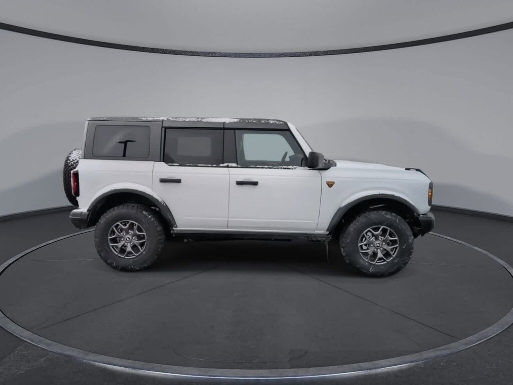 Bronco Badlands is nicely equipped with Equipment Group 332A Mid Package (2-Door Intelligent Access w/Lock/Unlock, Ambient Footwell Lighting, Connected Navigation, Dr & Pass Illuminated Sliding Visor Vanity Mirrors, Dual Smart Charging USB Ports, Dual-Zone Electronic Automatic Temperature Control, Front Row Heated Seats, Power Outlet - Back Side of Center Floor Console, and Rear Parking Sensors), 4-Wheel Disc Brakes, 4.7 Axle Ratio, 7 Speakers, ABS brakes, Air Conditioning, Alloy wheels, AM/FM radio: SiriusXM with 360L, AM/FM Stereo, Auto High-Beam Headlamps, Auto High-beam Headlights, Auto-dimming Rear-View mirror, BLIS Blind Spot Information System, Brake assist, Carbonized Gray Molded-In-Color Hard Top, Compass, Delay-off headlights, Driver door bin, Driver vanity mirror, Dual front impact airbags, Dual front side impact airbags, Electronic Stability Control, Emergency communication system: 911 Assist, Exterior Parking Camera Rear, Front & Rear Floor Liners, Front anti-roll bar, Front Bucket Seats, Front Center Armrest, Front fog lights, Front License Plate Bracket, Front reading lights, Front wheel independent suspension, Fully automatic headlights, Heated door mirrors, Heated front seats, Heated steering wheel, Illuminated entry, Integrated roll-over protection, Internet access capable: FordPass Connect, Lane-Keeping System, Leather Shift Knob, Low tire pressure warning, Marine Grade Vinyl Heated Bucket Seats, Occupant sensing airbag, Outside temperature display, Overhead airbag, Overhead console, Panic alarm, Passenger door bin, Passenger vanity mirror, Power door mirrors, Power steering, Power windows, Pre-Collision Assist w/Automatic Emergency Braking, Radio data system, Rear-View Camera, Rear-Window Defroster & Washer, Remote keyless entry, Security system, SiriusXM w/360L, Speed control, Split folding rear seat, Steering wheel mounted audio controls, SYNC 4, Tachometer, Telescoping steering wheel, Tilt steering wheel, Traction control, Trip computer, Variably intermittent wipers, Voltmeter, and Wheels: 17 Carbonized Gray-Painted Aluminum.