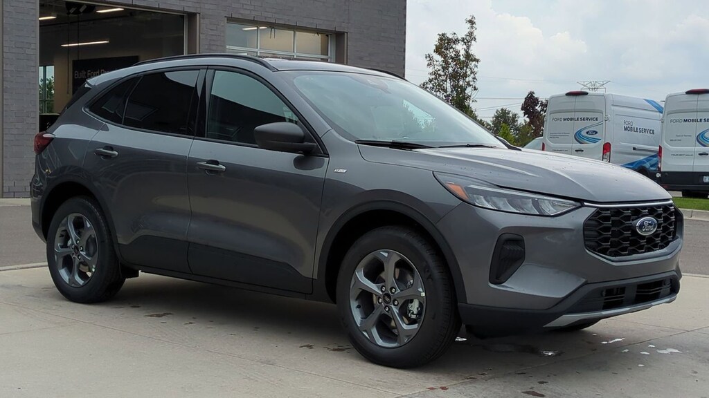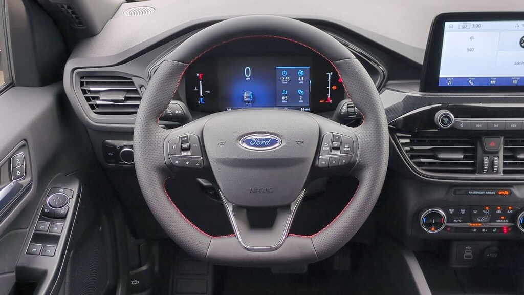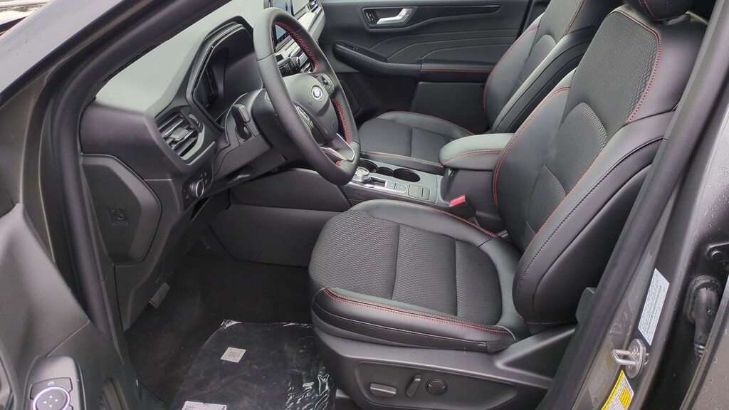 2025 Ford Escape ST-Line Is nicely equipped with Cold Weather Package (Heated Front Row Seats, Heated Sideview Mirrors, Heated Steering Wheel, and Remote Starter System), Equipment Group 300A, AWD, 3.81 Axle Ratio, 4-Wheel Disc Brakes, 6 Speakers, ABS brakes, Air Conditioning, Alloy wheels, AM/FM radio: SiriusXM, AM/FM Stereo, Auto High-beam Headlights, Automatic temperature control, Black Roof-Rack Side Rails, Brake assist, Bumpers: body-color, Compass, Delay-off headlights, Driver door bin, Driver vanity mirror, Dual front impact airbags, Dual front side impact airbags, Electronic Stability Control, Emergency communication system: SYNC 4 911 Assist, First Aid Kit, FordPass Connect, Four wheel independent suspension, Front anti-roll bar, Front Bucket Seats, Front Center Armrest, Front dual zone A/C, Front reading lights, Fully automatic headlights, Illuminated entry, Internet access capable: FordPass Connect 4G, Knee airbag, Low tire pressure warning, Occupant sensing airbag, Outside temperature display, Overhead airbag, Overhead console, Panic alarm, Panoramic Vista Roof, Passenger door bin, Passenger vanity mirror, Power door mirrors, Power driver seat, Power Liftgate, Power steering, Power windows, Radio data system, Rear anti-roll bar, Rear reading lights, Rear seat center armrest, Rear window defroster, Rear window wiper, Remote keyless entry, Road Side Assistance Kit, Speed control, Speed-sensing steering, Speed-Sensitive Wipers, Split folding rear seat, Spoiler, Sport steering wheel, Steering wheel mounted audio controls, SYNC 4, Tachometer, Telescoping steering wheel, Tilt steering wheel, Traction control, Trip computer, Variably intermittent wipers, Vinyl/Cloth Front Sport Contour Bucket Seats, and Wheels: 18" Rock Metallic Painted Aluminum. Factory MSRP: $36,480 Dealer Discount of $2,512 off MSRP Priced below KBB Fair Purchase Price!