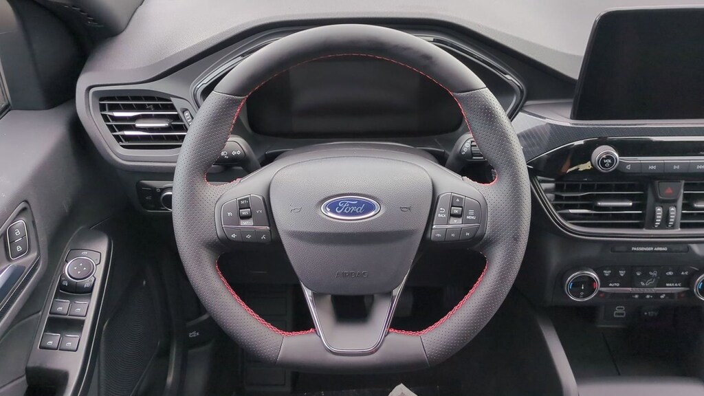 2025 Ford Escape ST-Line Is nicely equipped with Cold Weather Package (Heated Front Row Seats, Heated Sideview Mirrors, Heated Steering Wheel, and Remote Starter System), Equipment Group 300A, AWD, 3.81 Axle Ratio, 4-Wheel Disc Brakes, 6 Speakers, ABS brakes, Air Conditioning, Alloy wheels, AM/FM radio: SiriusXM, AM/FM Stereo, Auto High-beam Headlights, Automatic temperature control, Black Roof-Rack Side Rails, Brake assist, Bumpers: body-color, Compass, Delay-off headlights, Driver door bin, Driver vanity mirror, Dual front impact airbags, Dual front side impact airbags, Electronic Stability Control, Emergency communication system: SYNC 4 911 Assist, First Aid Kit, FordPass Connect, Four wheel independent suspension, Front anti-roll bar, Front Bucket Seats, Front Center Armrest, Front dual zone A/C, Front reading lights, Fully automatic headlights, Illuminated entry, Internet access capable: FordPass Connect 4G, Knee airbag, Low tire pressure warning, Occupant sensing airbag, Outside temperature display, Overhead airbag, Overhead console, Panic alarm, Panoramic Vista Roof, Passenger door bin, Passenger vanity mirror, Power door mirrors, Power driver seat, Power Liftgate, Power steering, Power windows, Radio data system, Rear anti-roll bar, Rear reading lights, Rear seat center armrest, Rear window defroster, Rear window wiper, Remote keyless entry, Road Side Assistance Kit, Speed control, Speed-sensing steering, Speed-Sensitive Wipers, Split folding rear seat, Spoiler, Sport steering wheel, Steering wheel mounted audio controls, SYNC 4, Tachometer, Telescoping steering wheel, Tilt steering wheel, Traction control, Trip computer, Variably intermittent wipers, Vinyl/Cloth Front Sport Contour Bucket Seats, and Wheels: 18" Rock Metallic Painted Aluminum. Factory MSRP: $37,475 Dealer Discount of $2,615 off MSRP Priced below KBB Fair Purchase Price!
