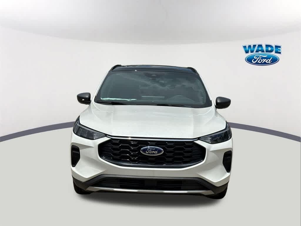 Escape ST-Line is nicely equipped with Cold Weather Package (Heated Front Row Seats, Heated Sideview Mirrors, Heated Steering Wheel, and Remote Starter System), Equipment Group 300A, Tech Pack #1 (Adaptive Cruise Control w/Stop-and-Go, Connected Navigation, Ford Co-Pilot360 Assist+, Intersection Assist, Predictive Speed Assist, Rear Parking Sensor, Rear-View Camera, and SYNC 4 w/Enhanced Voice Recognition), 3.81 Axle Ratio, 4-Wheel Disc Brakes, 6 Speakers, ABS brakes, Air Conditioning, Alloy wheels, AM/FM radio: SiriusXM, AM/FM Stereo, Auto High-beam Headlights, Automatic temperature control, Black Roof-Rack Side Rails, Brake assist, Bumpers: body-color, Cargo Mat, Compass, Delay-off headlights, Driver door bin, Driver vanity mirror, Dual front impact airbags, Dual front side impact airbags, Easy Access Cargo Shade, Electronic Stability Control, Emergency communication system: SYNC 4 911 Assist, FordPass Connect, Four wheel independent suspension, Front & Rear Floor Liners w/Carpet Mats, Front anti-roll bar, Front Bucket Seats, Front Center Armrest, Front dual zone A/C, Front reading lights, Fully automatic headlights, Illuminated entry, Knee airbag, Low tire pressure warning, Occupant sensing airbag, Outside temperature display, Overhead airbag, Overhead console, Panic alarm, Panoramic Vista Roof, Passenger door bin, Passenger vanity mirror, Power door mirrors, Power driver seat, Power Liftgate, Power steering, Power windows, Radio data system, Rear anti-roll bar, Rear reading lights, Rear seat center armrest, Rear window defroster, Rear window wiper, Remote keyless entry, Speed control, Speed-sensing steering, Speed-Sensitive Wipers, Split folding rear seat, Spoiler, Sport steering wheel, Steering wheel mounted audio controls, SYNC 4, Tachometer, Telescoping steering wheel, Tilt steering wheel, Traction control, Trip computer, Variably intermittent wipers, Vinyl/Cloth Front Sport Contour Bucket Seats, and Wheels: 18 Rock Metallic Painted Aluminum.