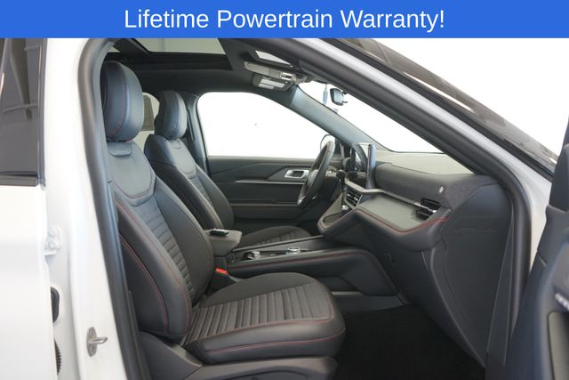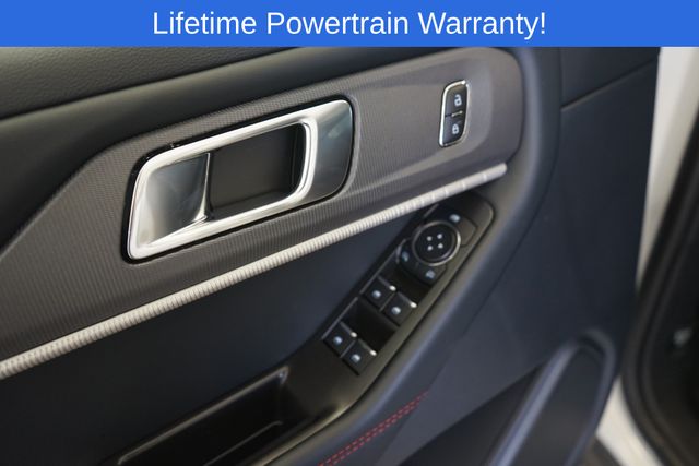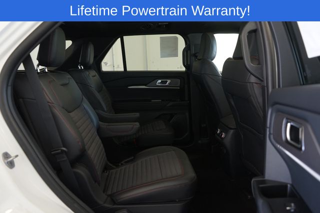 Explorer ST-Line is nicely equipped with Equipment Group 300A Standard Package, 10 Speakers, 2nd Row Captain's Chairs w/E-Z Entry & Armrest, 3.58 Non-Limited Slip Rear Axle, 3rd row seats: bench, 4-Wheel Disc Brakes, ABS brakes, Air Conditioning, Alloy wheels, AM/FM radio: SiriusXM with 360L, Apple CarPlay/Android Auto, Auto High-beam Headlights, Automatic temperature control, Brake assist, Bumpers: body-color, Compass, Delay-off headlights, Driver door bin, Driver vanity mirror, Dual front impact airbags, Dual front side impact airbags, Electronic Stability Control, Emergency communication system: 911 Assist, Exterior Parking Camera Rear, Four wheel independent suspension, Front anti-roll bar, Front Bucket Seats, Front Center Armrest, Front dual zone A/C, Front fog lights, Front License Plate Bracket, Front reading lights, Fully automatic headlights, Garage door transmitter, Heated door mirrors, Heated front seats, Heated steering wheel, Heated Unique Cloth Captain's Chairs, Illuminated entry, Internet access capable: FordPass Connect 5G, Knee airbag, Leather steering wheel, Low tire pressure warning, Navigation System, Occupant sensing airbag, Outside temperature display, Overhead airbag, Overhead console, Panic alarm, Panoramic Vista Roof w/Power Shade, Passenger door bin, Passenger vanity mirror, Power door mirrors, Power driver seat, Power Liftgate, Power passenger seat, Power steering, Power windows, Radio: B&O Sound System by Bang & Olufsen, Rear air conditioning, Rear anti-roll bar, Rear reading lights, Rear window defroster, Rear window wiper, Remote keyless entry, Security system, Speed control, Speed-sensing steering, Speed-Sensitive Wipers, Split folding rear seat, Spoiler, Steering wheel mounted audio controls, Tachometer, Telescoping steering wheel, Tilt steering wheel, Traction control, Trip computer, Variably intermittent wipers, and Wheels: 20" Ebony-Painted Machined Aluminum.