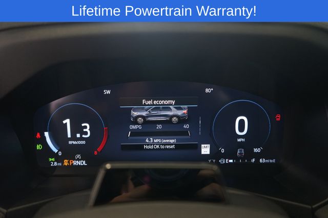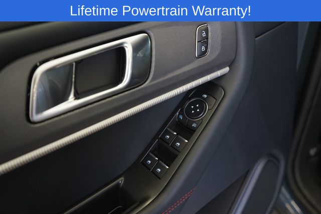 Explorer ST-Line is nicely equipped with Equipment Group 300A Standard Package, 10 Speakers, 2nd Row Captain's Chairs w/E-Z Entry & Armrest, 3.58 Non-Limited Slip Rear Axle, 3rd row seats: bench, 4-Wheel Disc Brakes, ABS brakes, Air Conditioning, Alloy wheels, AM/FM radio: SiriusXM with 360L, Apple CarPlay/Android Auto, Auto High-beam Headlights, Automatic temperature control, Brake assist, Bumpers: body-color, Compass, Delay-off headlights, Driver door bin, Driver vanity mirror, Dual front impact airbags, Dual front side impact airbags, Electronic Stability Control, Emergency communication system: 911 Assist, Exterior Parking Camera Rear, Ford BlueCruise Equipped (1-Year Plan), Four wheel independent suspension, Front anti-roll bar, Front Bucket Seats, Front Center Armrest, Front dual zone A/C, Front fog lights, Front License Plate Bracket, Front reading lights, Fully automatic headlights, Garage door transmitter, Heated door mirrors, Heated front seats, Heated steering wheel, Heated Unique Cloth Captain's Chairs, Illuminated entry, Knee airbag, Leather steering wheel, Low tire pressure warning, Navigation System, Occupant sensing airbag, Outside temperature display, Overhead airbag, Overhead console, Panic alarm, Passenger door bin, Passenger vanity mirror, Power door mirrors, Power driver seat, Power Liftgate, Power passenger seat, Power steering, Power windows, Radio: B&O Sound System by Bang & Olufsen, Rear air conditioning, Rear anti-roll bar, Rear reading lights, Rear window defroster, Rear window wiper, Remote keyless entry, Security system, Speed control, Speed-sensing steering, Speed-Sensitive Wipers, Split folding rear seat, Spoiler, Steering wheel mounted audio controls, Tachometer, Telescoping steering wheel, Tilt steering wheel, Traction control, Trip computer, Variably intermittent wipers, and Wheels: 20" Ebony-Painted Machined Aluminum.