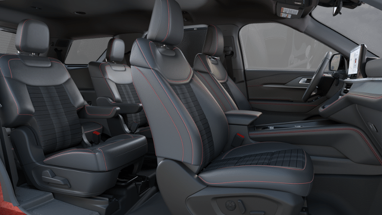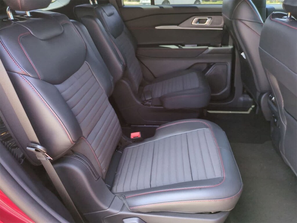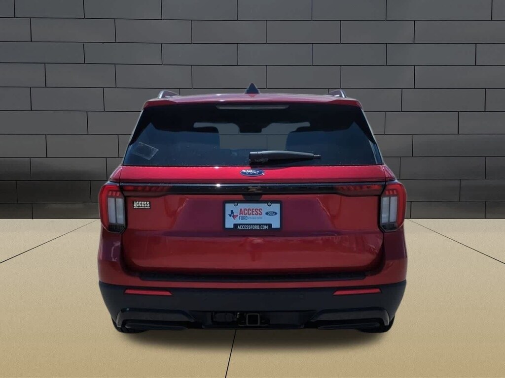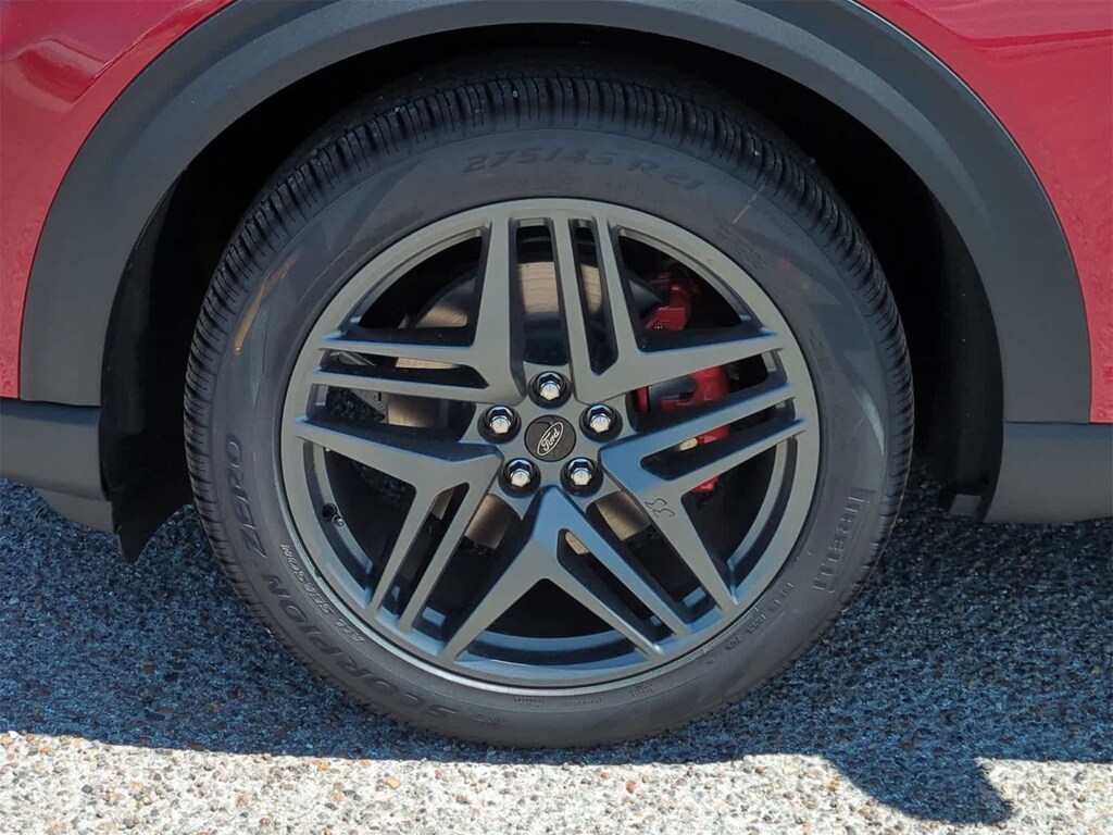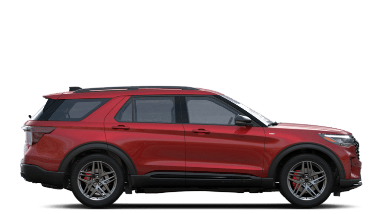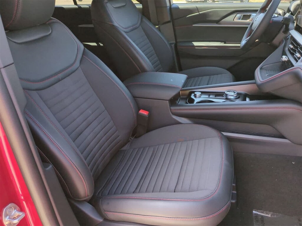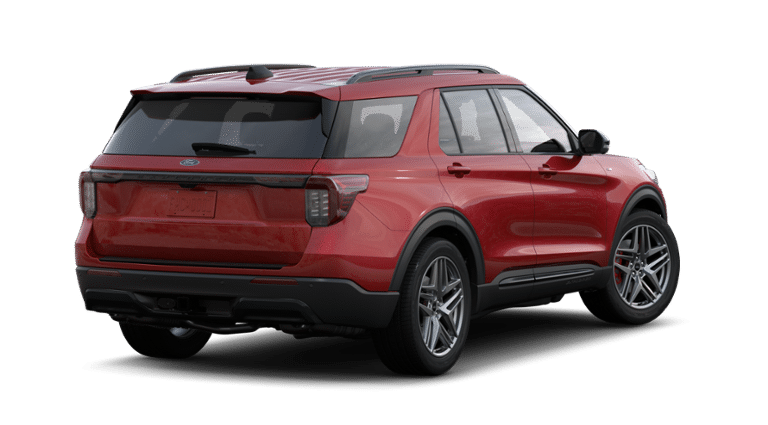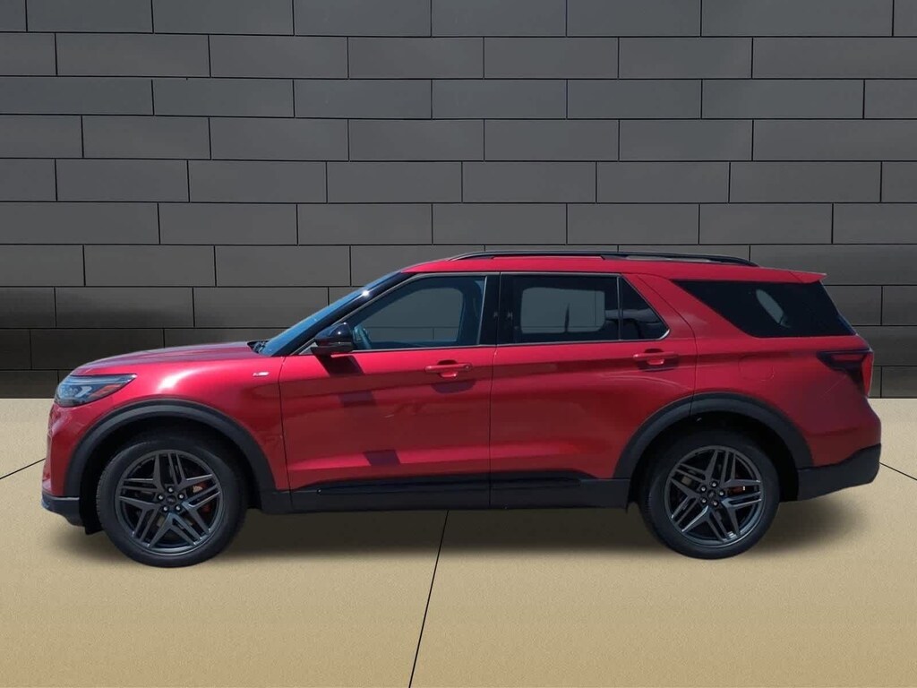 PREMIUM PACKAGE 110V/150W AC Power Outlet, Replaces the powerpoint port on the rear side of the center floor console, Auto-Dimming Interior Rearview Mirror, Memory Drivers Seat, Power-Folding Sideview Mirrors w/Autofold, power and heated glass, LED turn signal indicators, security approach lamps, drivers side auto-dimming and driver and passenger side memory, Rain-Sensing Wipers (Front Only), Ambient Lighting, Wireless Charging Pad, 2nd Row Heated Seats, ST-LINE STREET PACK Wheels: 21 Magnetite-Painted Aluminum, Tires: P275/45R21 AS BSW, Performance Brakes, Red Painted Perf Front & Rear Brake Calipers, 18 SPARE WHEEL & JACK KIT 18 spare tire, 2ND ROW CAPTAINS CHAIRS W/E-Z ENTRY & ARMREST E-Z entry is manually activated, Replaces standard 2nd row 35/30/35 bench seats, TRANSMISSION: 10-SPEED AUTOMATIC (STD). 2025 Ford Explorer with Rapid Red Metallic Tinted Clearcoat exterior and Onyx interior features a 4 Cylinder Engine with 300 HP at 5500 RPM*.