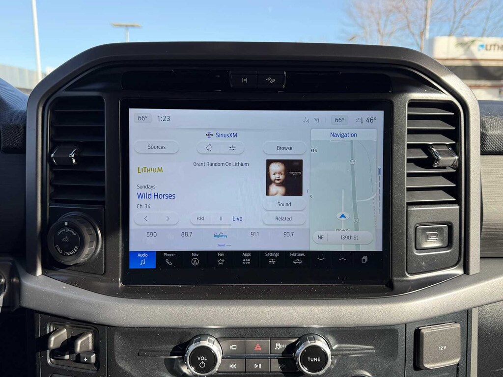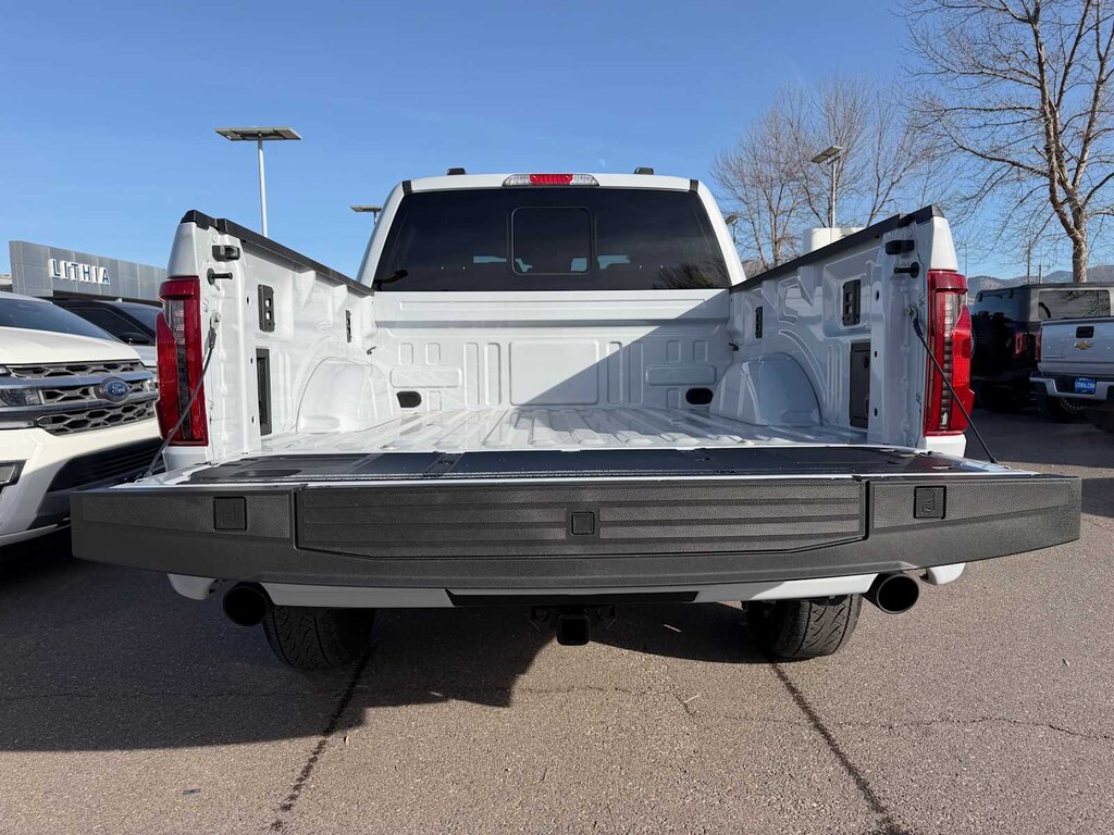 EQUIPMENT GROUP 302A MID Chrome Door & Tailgate Handles, Wrapped Steering Wheel, Connected Navigation, 1-year trial, Navigation services require SYNC4 and FordPass Connect (optional on select vehicles), complimentary connect service and the FordPass app (see FordPass terms for details), Eligible vehicles receive a complimentary 1-year trial of navigation services that begins on the new vehicle warranty start date, Customers must unlock the navigation service trial by activating the eligible vehicle w/a FordPass member account, If not subscribed by the end of the complimentary period, the connected navigation service will revert to a moving-map and active routing will no longer be available, Connected service and features depend on compatible AT&T network availability, Evolving, ENGINE: 3.5L V6 ECOBOOST auto start-stop technology, 3.31 Axle Ratio, GVWR: 7,100 lbs Payload Package, XLT BLACK APPEARANCE PACKAGE PLUS Black Grille, Gray Box Side Decal, Black Exterior Badging, 6 Black Running Boards, Wheels: 20 Gloss Black Painted Aluminum, Tires: 275/60R20 BSW Automatic Transmission, Body-Color Front & Rear Bumpers, Dual Exhaust w/Black Tips, Dark Interior Appliques, Floor Shifter, BED UTILITY PACKAGE Tailgate Step w/Tailgate Work Surface, LED Box Lighting, 4 Pickup Box Tie-Down Plates, ELECTRONIC LOCKING W/3.55 AXLE RATIO, TRANSMISSION: ELECTRONIC 10-SPEED AUTOMATIC SelectShift w/progressive range select and selectable drive modes: normal, ECO, sport, tow/haul, slippery, deep snow/sand and mud/rut (STD). Ford XLT with Space White exterior and Black interior features a V6 Cylinder Engine with 325 HP at 5000 RPM*.