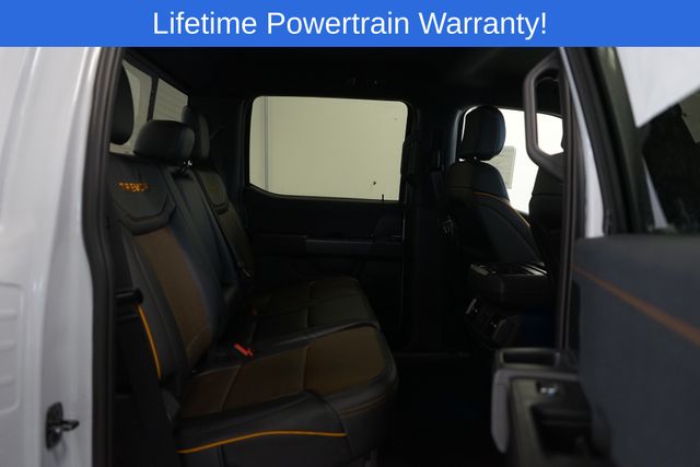 F-150 Tremor is nicely equipped with GVWR: 7,100 lbs Payload Package, 4-Wheel Disc Brakes, 8 Speakers, ABS brakes, Adjustable pedals, Air Conditioning, Alloy wheels, AM/FM radio: SiriusXM with 360L, Auto High-beam Headlights, Auto-dimming door mirrors, Auto-dimming Rear-View mirror, Automatic temperature control, Brake assist, Bumpers: body-color, Compass, Delay-off headlights, Driver door bin, Driver vanity mirror, Dual front impact airbags, Dual front side impact airbags, Electronic Locking w/3.73 Axle Ratio, Electronic Stability Control, Emergency communication system: SYNC 4 911 Assist, Front anti-roll bar, Front Bucket Seats, Front Center Armrest, Front dual zone A/C, Front fog lights, Front reading lights, Front wheel independent suspension, Fully automatic headlights, Heated door mirrors, Heated front seats, Illuminated entry, Internet access capable: FordPass Connect 5G, Low tire pressure warning, Navigation system: Connected Navigation, Occupant sensing airbag, Outside temperature display, Overhead airbag, Overhead console, Panic alarm, Passenger door bin, Passenger vanity mirror, Power door mirrors, Power driver seat, Power passenger seat, Power steering, Power windows, Radio data system, Radio: B&O Sound System by Bang & Olufsen, Rear reading lights, Rear step bumper, Rear window defroster, Remote keyless entry, Security system, Speed control, Split folding rear seat, Steering wheel mounted audio controls, SYNC 4 w/Enhanced Voice Recognition, Tachometer, Telescoping steering wheel, Tilt steering wheel, Traction control, Trip computer, Turn signal indicator mirrors, Unique Sport Cloth 40/Console/40 Power Front Seat, Variably intermittent wipers, Voltmeter, and Wheels: 18" Alloy w/Dark Matte Finish.