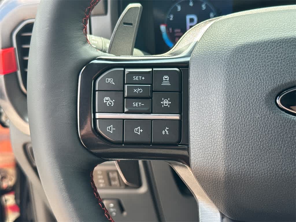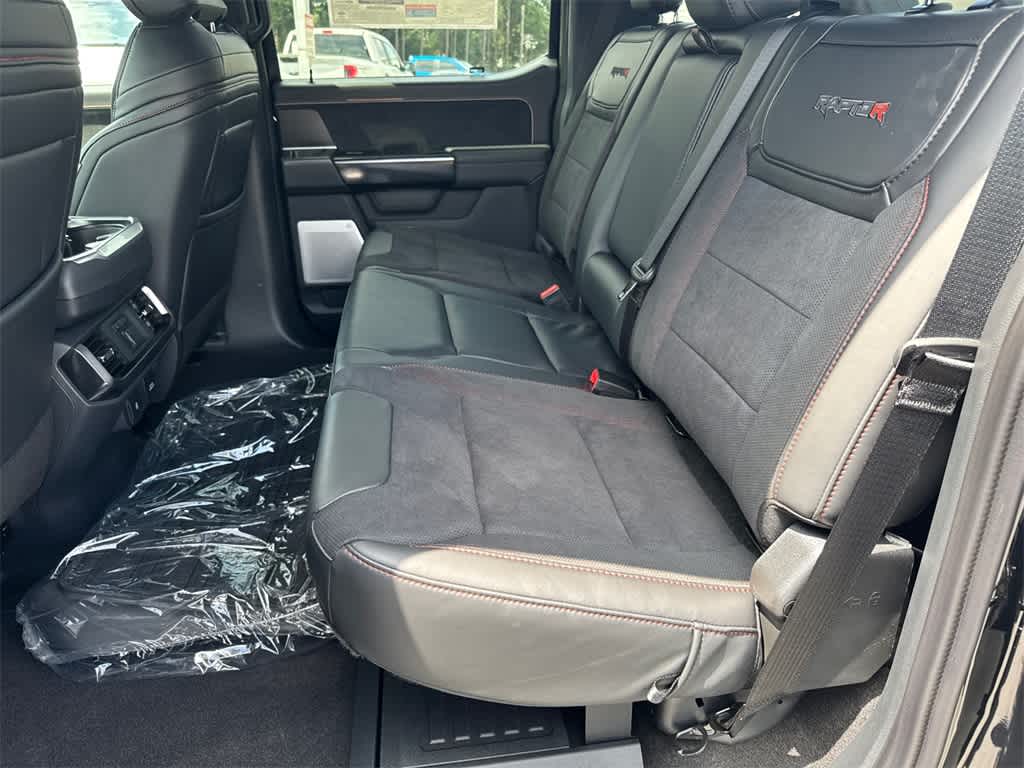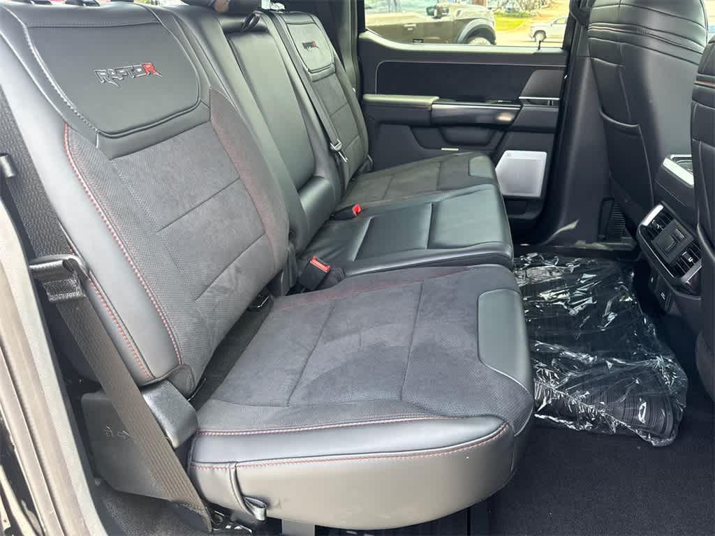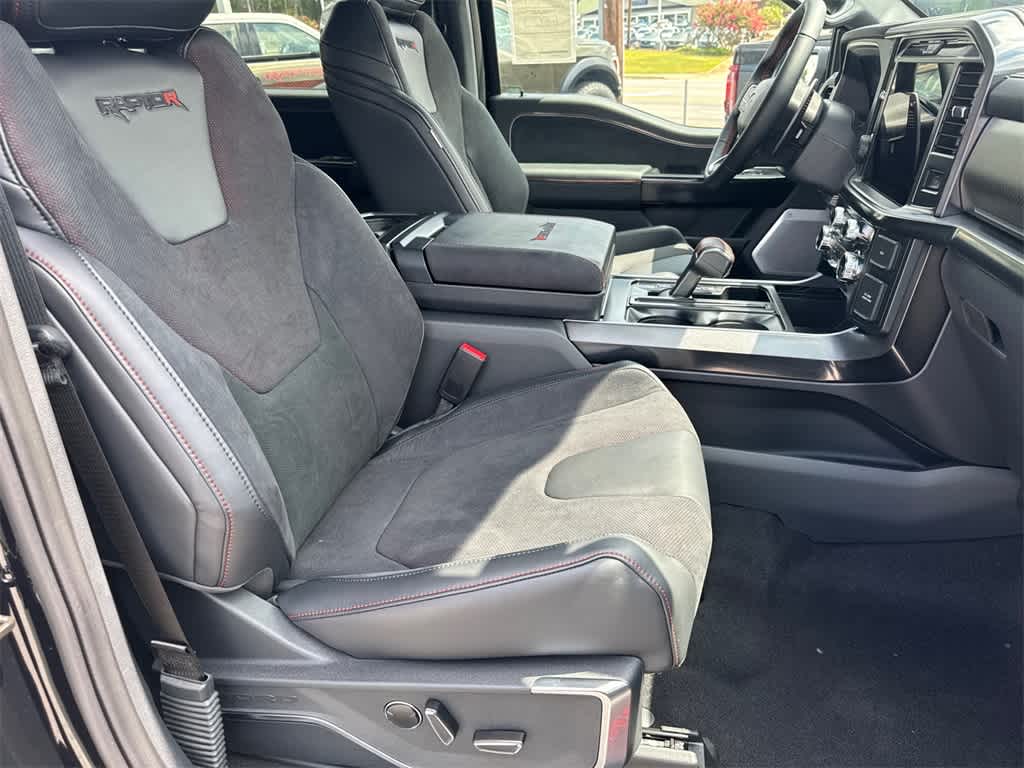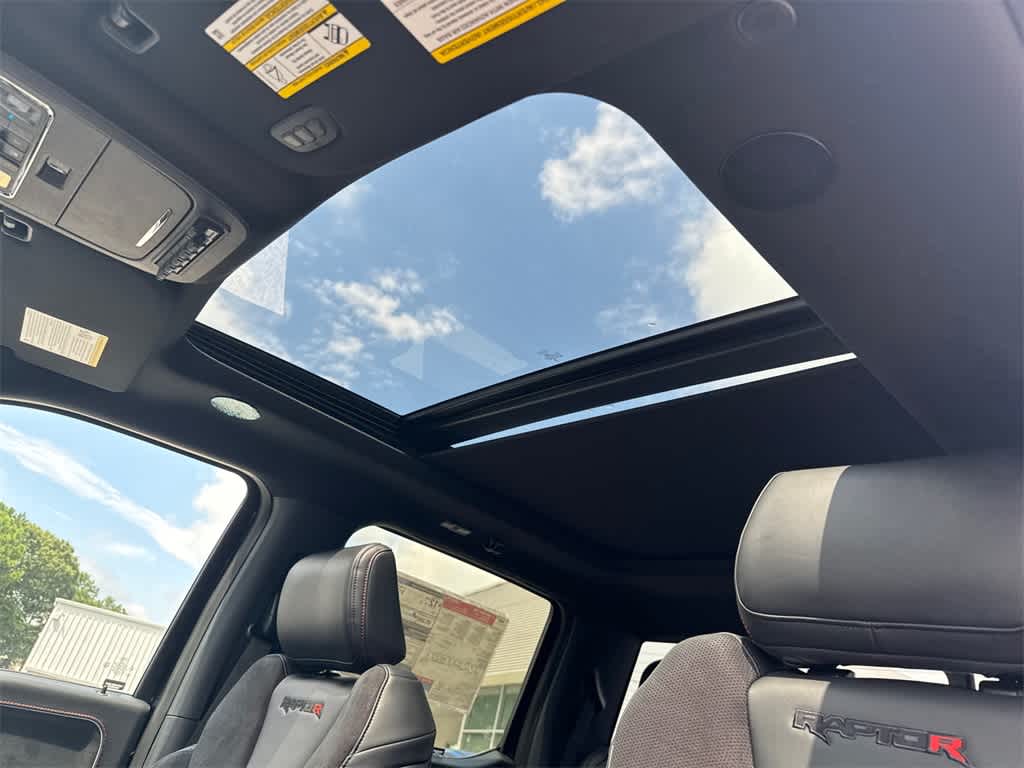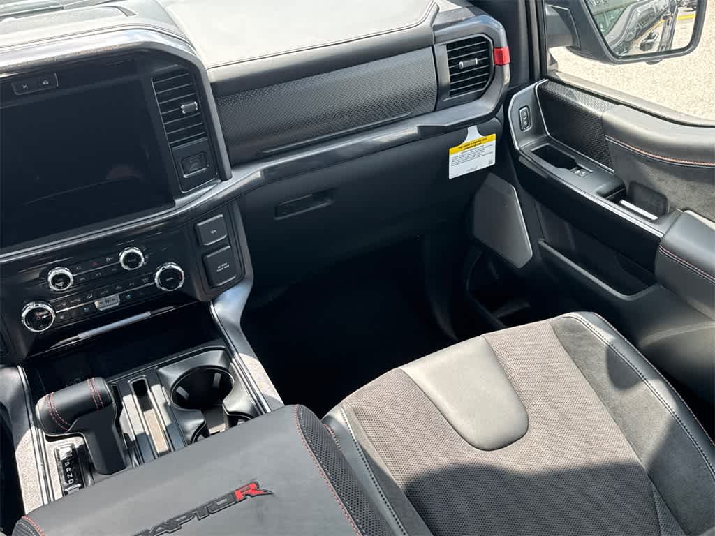 F-150 Raptor is nicely equipped with Equipment Group 803A Raptor R (Code Orange Front Tow Hooks, Code Orange Stitching Doors & Instrument Panel, Dual Valve Shocks, Interior Code Orange Raptor R Badging, Modular Front Bumper, Raptor R Badge Tailgate Applique, Raptor R Exterior Graphics, Raptor R Exterior Theme, Raptor R Interior Theme, Raptor R Unique Grille, Raptor R Unique Hood Vent w/R Badge, RECARO w/Code Orange Stitching Front Seats, Removes 2KW Pro Power Onboard, Unique Carbon Fiber Appliques, Upgraded Dual Exhaust, and Wheels: Raptor R Unique 17 Forged Aluminum), 4WD, 14 Speakers, 17 Cast Aluminum Wheels, 4-Wheel Disc Brakes, ABS brakes, Adjustable pedals, Air Conditioning, Alloy wheels, AM/FM radio: SiriusXM with 360L, Auto High-beam Headlights, Auto tilt-away steering wheel, Auto-dimming door mirrors, Auto-dimming Rear-View mirror, Automatic temperature control, Brake assist, Bumpers: body-color, Compass, Delay-off headlights, Driver door bin, Driver vanity mirror, Dual front impact airbags, Dual front side impact airbags, Electronic Locking w/4.10 Axle Ratio, Electronic Stability Control, Emergency communication system: SYNC 4 911 Assist, Front anti-roll bar, Front Bucket Seats, Front Center Armrest, Front dual zone A/C, Front fog lights, Front reading lights, Front wheel independent suspension, Fully automatic headlights, Garage door transmitter, Heads-Up Display, Heated door mirrors, Heated front seats, Heated rear seats, Heated steering wheel, Illuminated entry, Lane Departure Warning System, Leather steering wheel, Low tire pressure warning, Memory seat, Navigation system: Connected Navigation, Occupant sensing airbag, Outside temperature display, Overhead airbag, Overhead console, Panic alarm, Passenger door bin, Passenger vanity mirror, Pedal memory, Power door mirrors, Power driver seat, Power passenger seat, Power steering, Power windows, Radio data system, Radio: B&O Unleashed Sound System by Bang & Olufsen, Rain sensing wipers, Rear reading lights, Rear step bumper, Rear window defroster, Remote keyless entry, Security system, Speed control, Speed-sensing steering, Split folding rear seat, Steering wheel memory, Steering wheel mounted audio controls, SYNC 4 w/Enhanced Voice Recognition, Tachometer, Telescoping steering wheel, Tilt steering wheel, Tough Bed Spray-In Bedliner, Traction control, Trip computer, Turn signal indicator mirrors, Twin Panel Moonroof, Variably intermittent wipers, and Ventilated front seats.