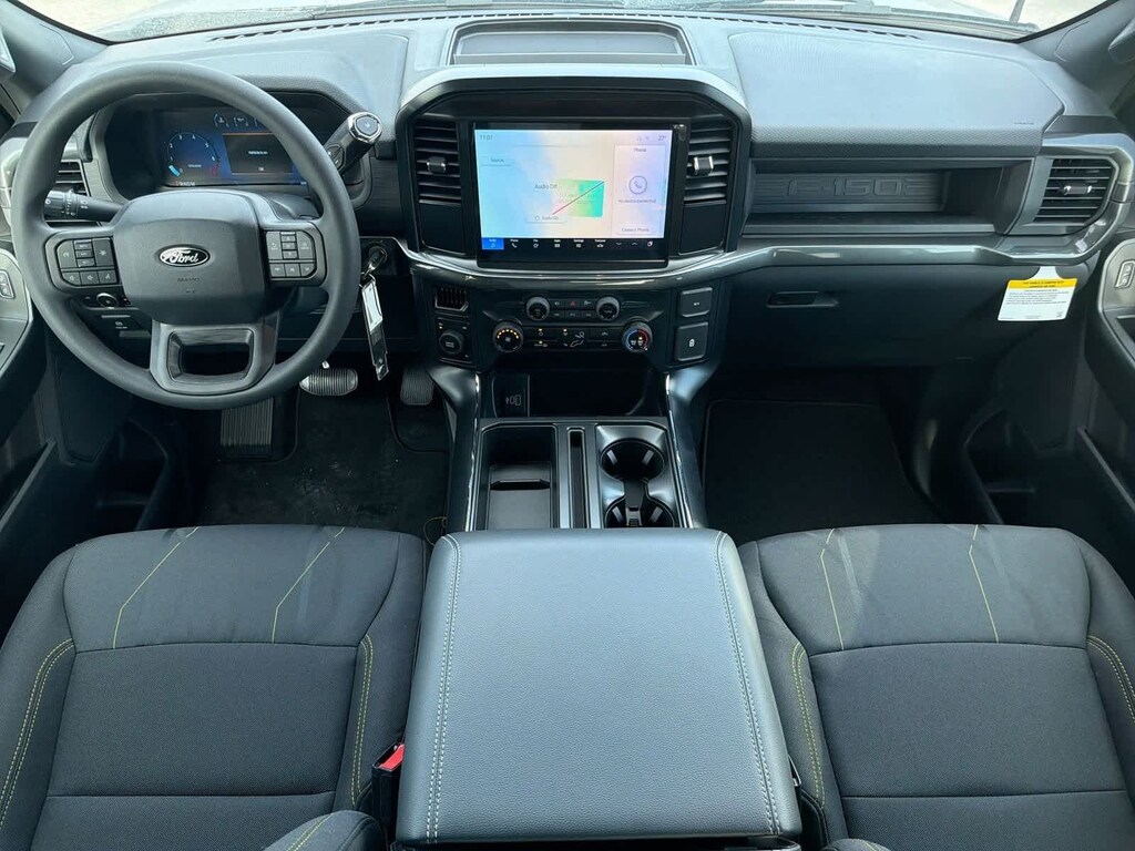 F-150 STX is nicely equipped with Equipment Group 200A Mid (LED Fog Lamps w/LED Cornering Lamp and Wheels: 20 Dark Gray w/Machined Aluminum), GVWR: 6,650 lbs Payload Package, STX Black Appearance Package (20 Wheels, 6 Black Running Boards, Black Exterior Badging, Gray Box Side Decal, Unique Sport Cloth 40/Console/40 Front-Seats, and Wheels: 20 Gloss Black), 3.55 Axle Ratio, 4-Wheel Disc Brakes, 6 Speakers, ABS brakes, Air Conditioning, Alloy wheels, AM/FM radio: SiriusXM with 360L, Auto High-beam Headlights, Brake assist, Bumpers: body-color, Compass, Delay-off headlights, Driver door bin, Dual front impact airbags, Dual front side impact airbags, Electronic Stability Control, Emergency communication system: SYNC 4 911 Assist, Front anti-roll bar, Front Bucket Seats, Front Center Armrest, Front License Plate Bracket, Front reading lights, Front wheel independent suspension, Fully automatic headlights, Heated door mirrors, Illuminated entry, Internet access capable: FordPass Connect 5G, Low tire pressure warning, Occupant sensing airbag, Outside temperature display, Overhead airbag, Overhead console, Panic alarm, Passenger door bin, Passenger vanity mirror, Power door mirrors, Power steering, Power windows, Radio data system, Radio: AM/FM Stereo w/SiriusXM 360L, Rear Parking Sensors, Rear step bumper, Rear window defroster, Remote keyless entry, Security system, Speed control, Split folding rear seat, Steering wheel mounted audio controls, SYNC 4 w/Enhanced Voice Recognition, Tachometer, Telescoping steering wheel, Tilt steering wheel, Tough Bed Spray-In Bedliner, Traction control, Trip computer, Variably intermittent wipers, Voltmeter, and Wheels: 18 Gloss Black.