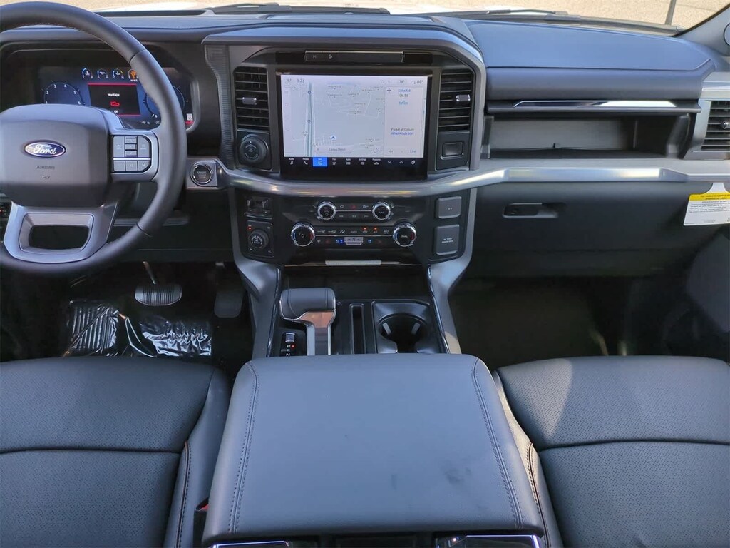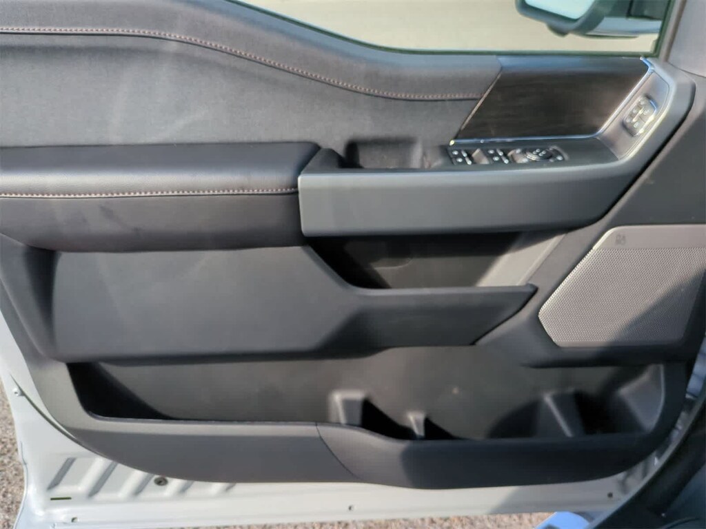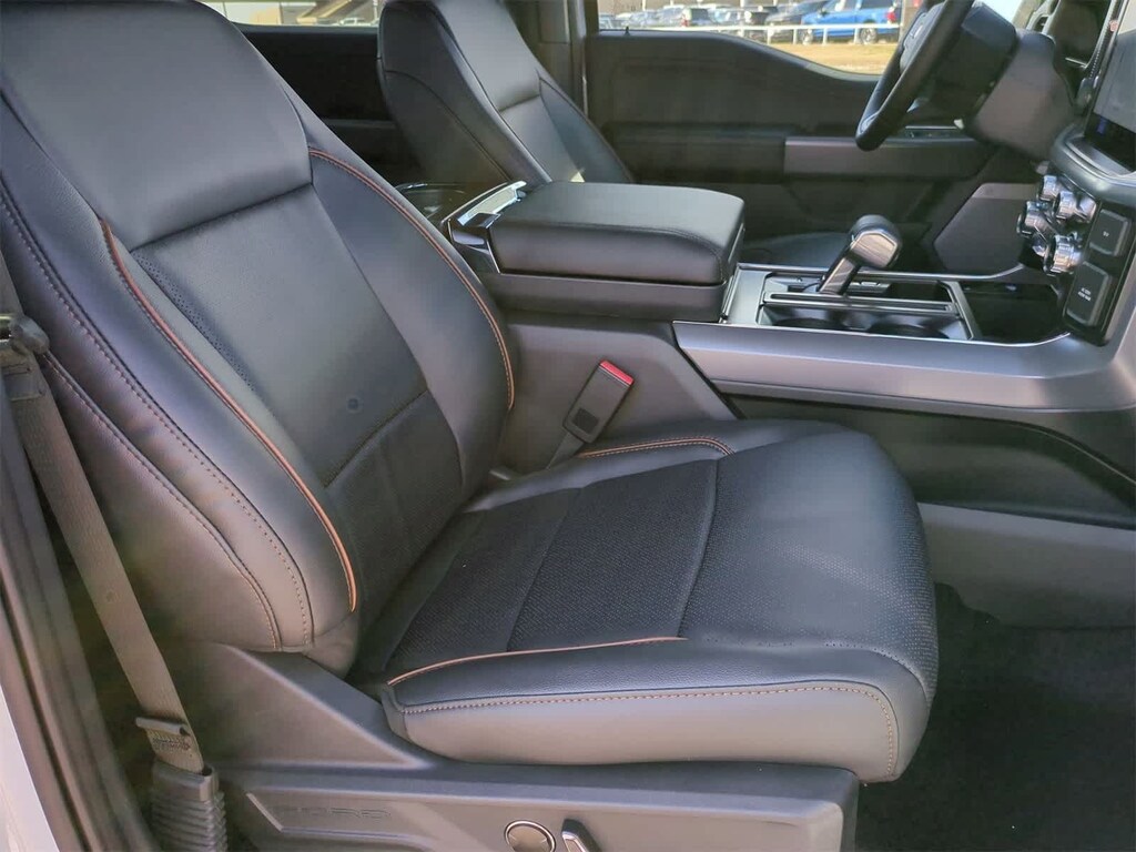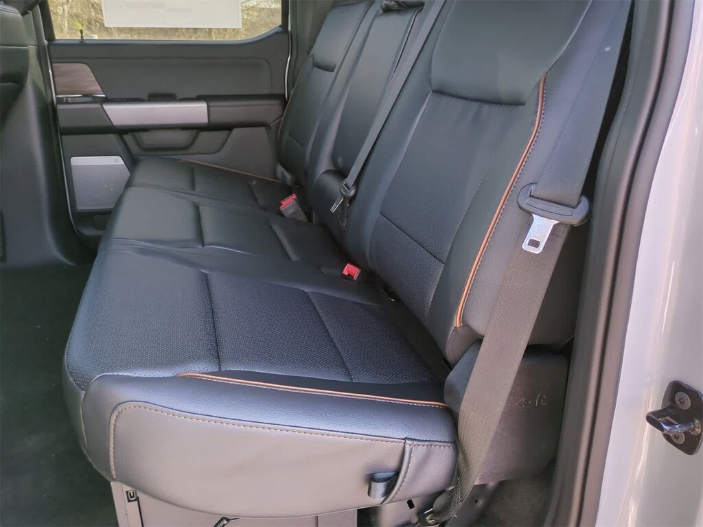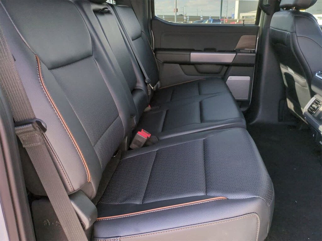 EQUIPMENT GROUP 502A HIGH Ambient Lighting - Ice Blue Color Only, Wheels: 20 Chrome-Like PVD, Radio: B&O Unleashed Sound System by Bang & Olufsen, HD Radio and 14 speakers including subwoofer, 2nd Row Heated Seats, Mobile Office Package, Wireless Charging, Partitioned Lockable Rear Storage, Console Worksurface, 6 Extended Angular Bright Anodized Step Bar, Power-Sliding Rear Window, Heads-Up Display, Illuminated Driver & Passenger Visors, covered mirrors, Tires: 275/60R20 All-Terrain, BED UTILITY PACKAGE LED Box Lighting, Pro Access Tailgate, Power Tailgate, 4 Pickup Box Tie-Down Plates, 6 Extended Running Boards, TWIN PANEL MOONROOF, TRANSMISSION: ELECTRONIC 10-SPEED AUTOMATIC SelectShift w/progressive range select and selectable drive modes: normal, ECO, sport, tow/haul, slippery, deep snow/sand and mud/rut (STD). 2025 Ford F-150 with Space White exterior and Black interior features a 8 Cylinder Engine with 400 HP at 6000 RPM*.