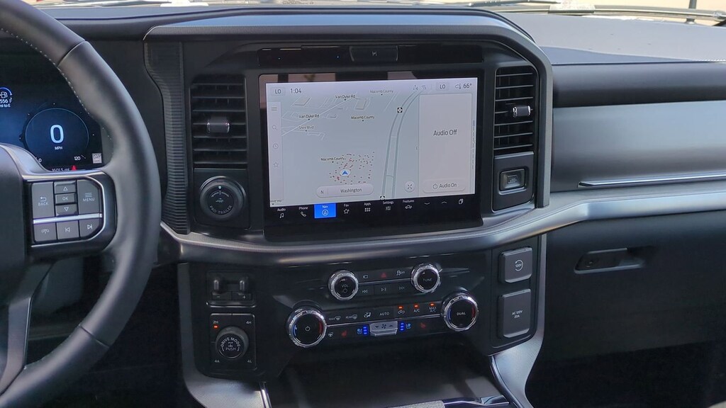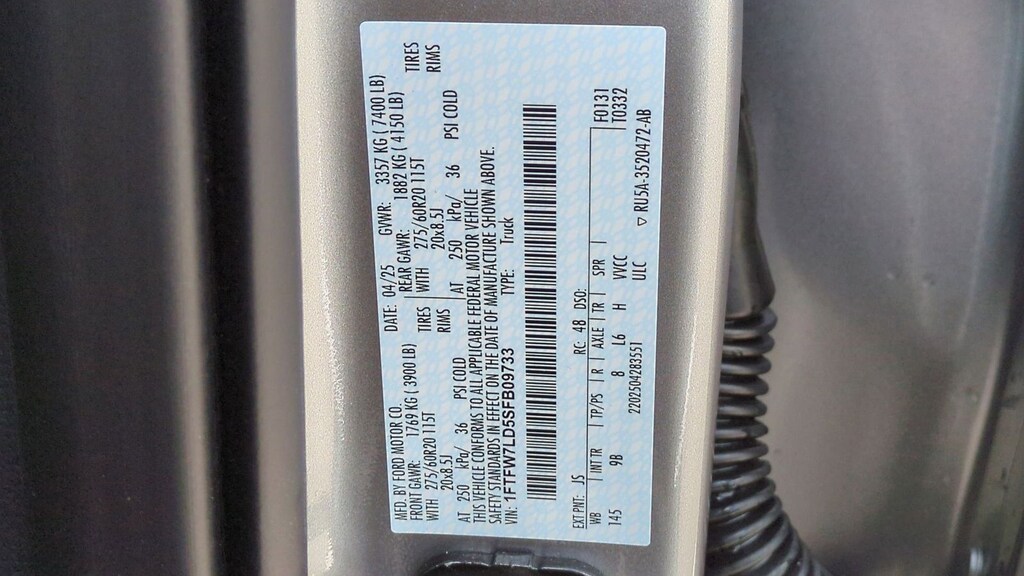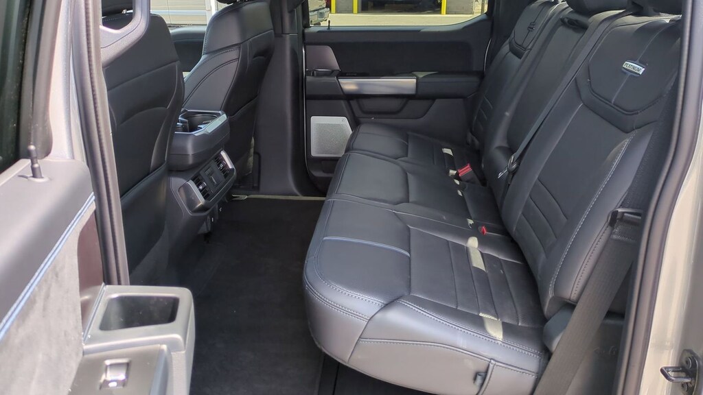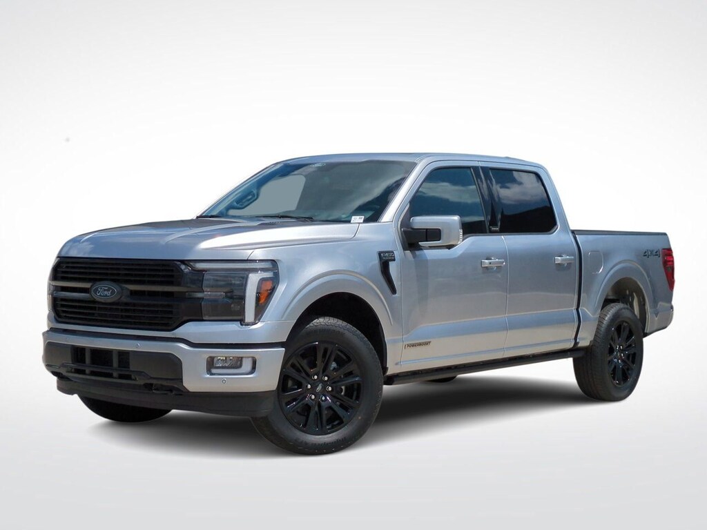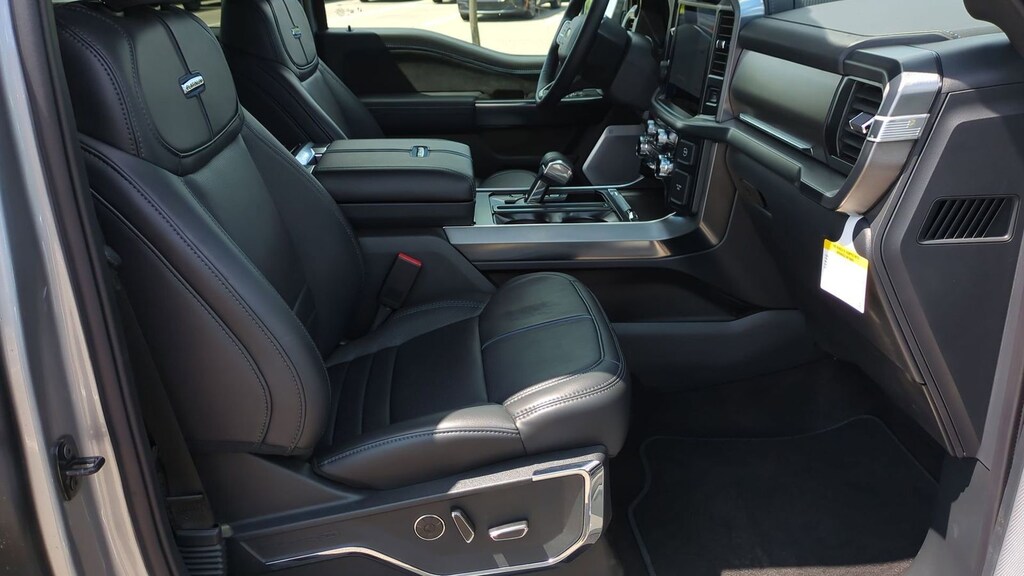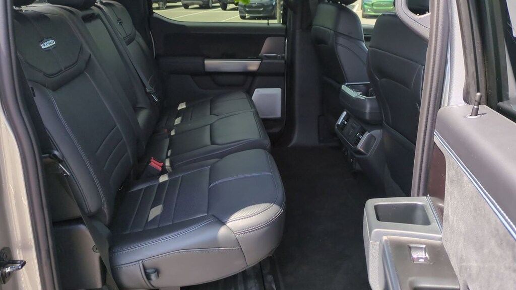 2025 Ford F-150 Platinum Is nicely equipped with Equipment Group 702A High, 3.5L PowerBoost Full-Hybrid V6, 4WD, 4-Wheel Disc Brakes, 8 Speakers, ABS brakes, Adjustable pedals, Air Conditioning, Alloy wheels, AM/FM radio: SiriusXM with 360L, Auto High-beam Headlights, Auto tilt-away steering wheel, Auto-dimming door mirrors, Auto-dimming Rear-View mirror, Automatic temperature control, Brake assist, Bumpers: body-color, Compass, Delay-off headlights, Driver door bin, Driver vanity mirror, Dual front impact airbags, Dual front side impact airbags, Electronic Stability Control, Emergency communication system: SYNC 4 911 Assist, Front anti-roll bar, Front Bucket Seats, Front Center Armrest, Front dual zone A/C, Front fog lights, Front reading lights, Front wheel independent suspension, Fully automatic headlights, Garage door transmitter, Heated door mirrors, Heated front seats, Heated rear seats, Heated steering wheel, Illuminated entry, Illuminated Ford Logo Badge, Internet access capable: FordPass Connect 5G, Leather steering wheel, Low tire pressure warning, Memory seat, Navigation system: Connected Navigation, Occupant sensing airbag, Outside temperature display, Overhead airbag, Overhead console, Panic alarm, Passenger door bin, Passenger vanity mirror, Pedal memory, Power door mirrors, Power driver seat, Power passenger seat, Power steering, Power windows, Radio data system, Radio: B&O Sound System by Bang & Olufsen, Rain sensing wipers, Rear reading lights, Rear seat center armrest, Rear step bumper, Rear window defroster, Remote keyless entry, SecuriCode Keyless-Entry Keypad, Security system, Speed control, Split folding rear seat, Steering wheel memory, Steering wheel mounted audio controls, SYNC 4 w/Enhanced Voice Recognition, Tachometer, Telescoping steering wheel, Tilt steering wheel, Traction control, Trip computer, Turn signal indicator mirrors, Unique Multi-Contour Leather Bucket Seats, Variably intermittent wipers, Ventilated front seats, Voltmeter, and Wheels: 20" Painted Gloss Ebony Black. Factory MSRP: $84,195 Dealer Discount of $8,534 off MSRP