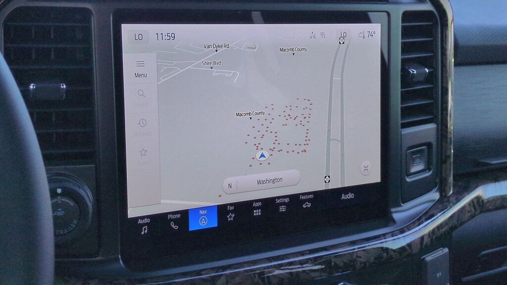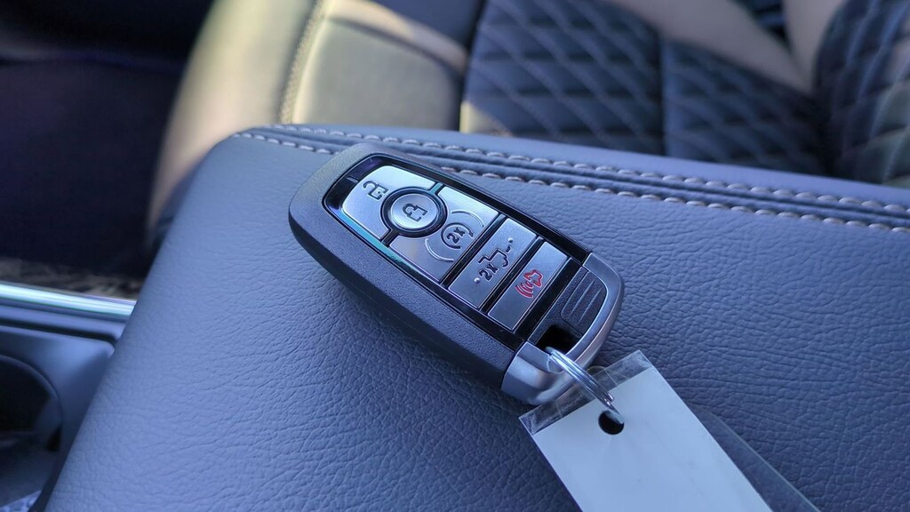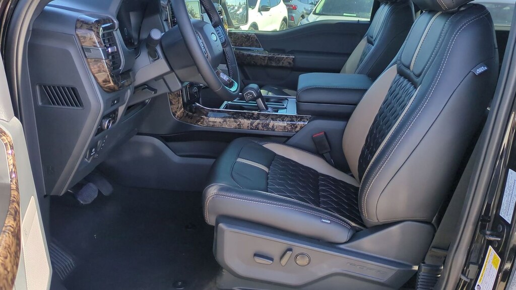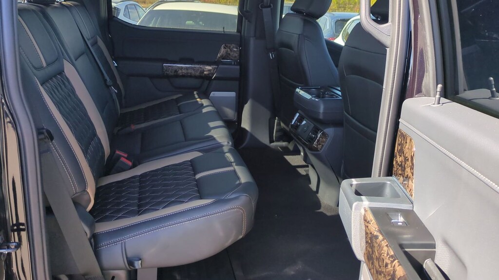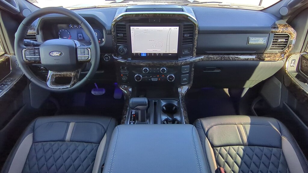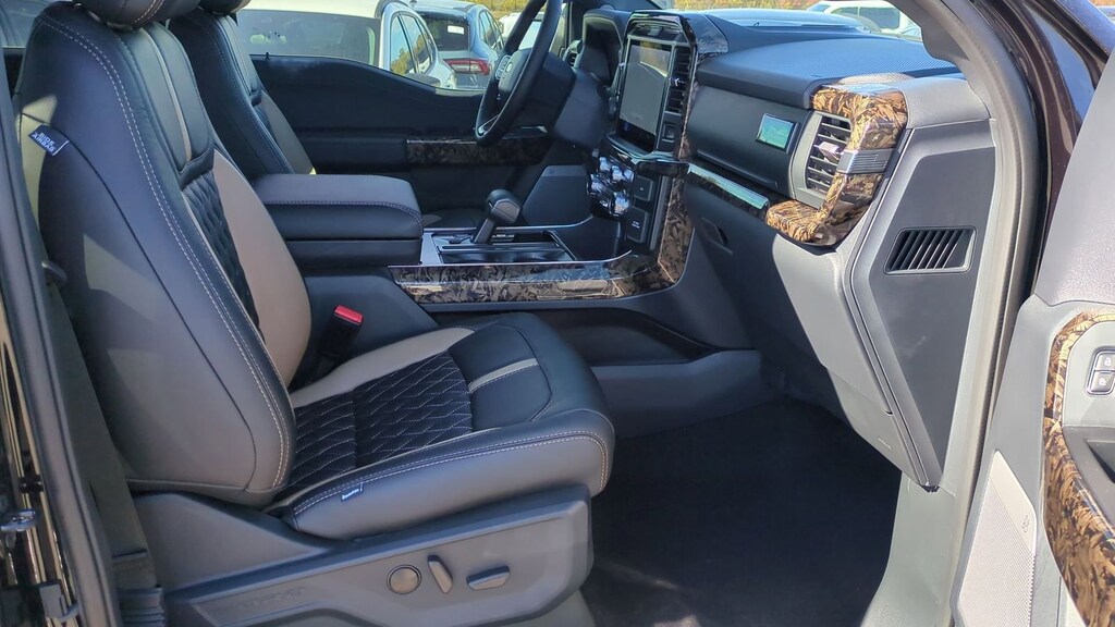 Is nicely equipped with Bed Utility Package (4 Pickup Box Tie-Down Plates, LED Box Lighting, and Tailgate Step w/Tailgate Work Surface), Equipment Group 303A High (360 Degree Camera, 400W Cab & Bed Outlets, 6" Angular Bright Anodized Step Bar, Adaptive Cruise Control w/Stop & Go, Auto-Dimming Rear-View Mirror, Black Painted Grille w/Chrome Center Bar, Chrome Door & Tailgate Handles, Chrome Single-Tip Exhaust, Connected Navigation, Driver State Detection, Dual-Zone Electronic Automatic Temperature Control, Evasive Steering Assist, Ford Co-Pilot360 Assist 2.0, Front Parking Sensors, Heated Front Seats, Intelligent Access w/Push Button Start, Power Glass Heated Sideview Mirrors, Power-Adjustable Pedals, Power-Sliding Rear Window, Radio: B&O Sound System by Bang & Olufsen, Remote Start System w/Remote Tailgate Release, Towing Technology, Wheels: 20" Chrome-Like PVD, and Wrapped Steering Wheel), Mobile Office Package (Console Worksurface and Partitioned Lockable Rear Storage), Tow/Haul Package, 4WD, 4-Wheel Disc Brakes, 6 Speakers, ABS brakes, Air Conditioning, Alloy wheels, AM/FM radio: SiriusXM with 360L, Auto High-beam Headlights, Brake assist, Bumpers: chrome, Chrome wheels, Cloth 40/20/40 Front Seat, Compass, Delay-off headlights, Driver door bin, Driver vanity mirror, Dual front impact airbags, Dual front side impact airbags, Electronic Stability Control, Emergency communication system: SYNC 4 911 Assist, Front anti-roll bar, Front Center Armrest, Front fog lights, Front License Plate Bracket, Front reading lights, Front wheel independent suspension, Fully automatic headlights, Heated door mirrors, Illuminated entry, Low tire pressure warning, Occupant sensing airbag, Outside temperature display, Overhead airbag, Overhead console, Panic alarm, Passenger door bin, Passenger vanity mirror, Power door mirrors, Power steering, Power windows, Radio data system, Radio: AM/FM Stereo w/SiriusXM 360L, Rear Parking Sensors, Rear reading lights, Rear step bumper, Rear window defroster, Remote keyless entry, Security system, Speed control, Split folding rear seat, Steering wheel mounted audio controls, SYNC 4 w/Enhanced Voice Recognition, Tachometer, Telescoping steering wheel, Tilt steering wheel, Tough Bed Spray-In Bedliner, Traction control, Trip computer, Twin Panel Moonroof, Variably intermittent wipers, Voltmeter, Wheel Well Liner, and Wheels: 18" Chrome-Like PVD. Factory MSRP: $72,960 Dealer Discount of $7,577 off MSRP