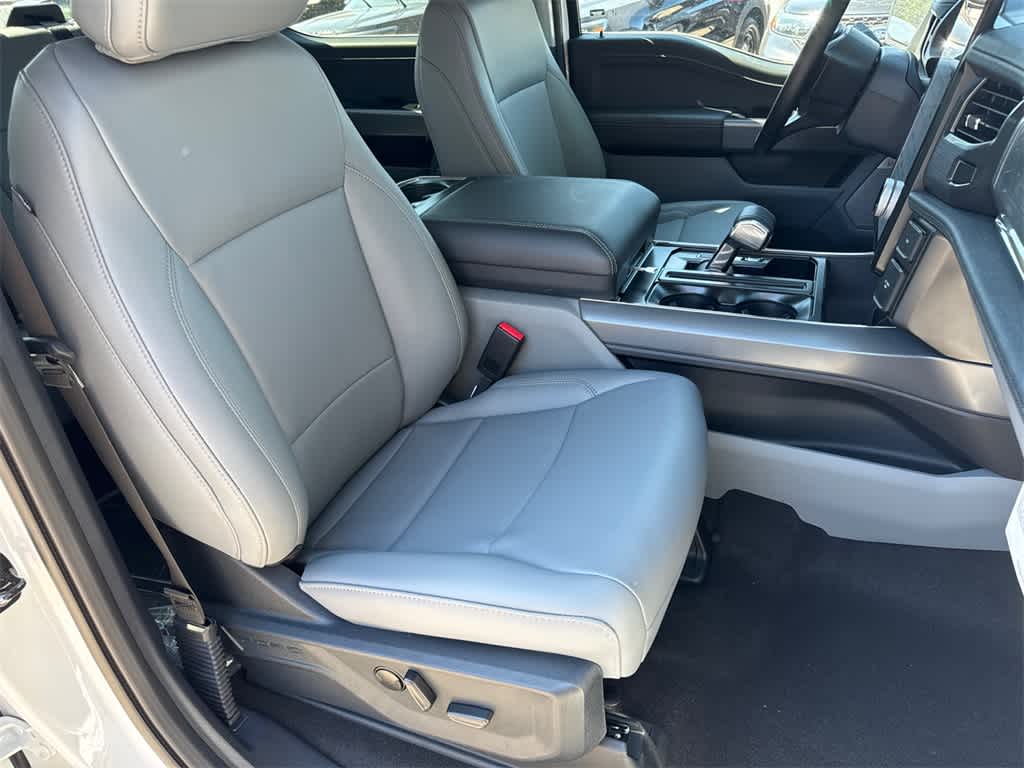 F-150 Lightning Flash is nicely equipped with Equipment Group 312A Standard, 4-Wheel Disc Brakes, 8 Speakers, ABS brakes, ActiveX Trimmed Heated Front Seats, Adjustable pedals, Air Conditioning, Alloy wheels, Auto High-beam Headlights, Auto-dimming Rear-View mirror, Automatic temperature control, Brake assist, Bumpers: body-color, Compass, Delay-off headlights, Driver door bin, Driver vanity mirror, Dual front impact airbags, Dual front side impact airbags, Electronic Stability Control, Emergency communication system: SYNC 4 911 Assist, Four wheel independent suspension, Front anti-roll bar, Front Bucket Seats, Front Center Armrest, Front dual zone A/C, Front License Plate Bracket, Front reading lights, Fully automatic headlights, Heated door mirrors, Heated front seats, Heated steering wheel, Illuminated entry, Knee airbag, Low tire pressure warning, Mobile Power Cord (120/240V), Navigation system: Connected Navigation, Occupant sensing airbag, Outside temperature display, Overhead airbag, Overhead console, Panic alarm, Passenger door bin, Passenger vanity mirror, Power door mirrors, Power driver seat, Power passenger seat, Power steering, Power windows, Pro Power Onboard - 9.6 kW Exportable Power, Radio data system, Radio: B&O Sound System by Bang & Olufsen, Rear anti-roll bar, Rear reading lights, Rear step bumper, Rear window defroster, Remote keyless entry, Security system, Speed control, Speed-sensing steering, Split folding rear seat, Steering wheel mounted audio controls, SYNC 4A w/Enhanced Voice Recognition, Telescoping steering wheel, Tilt steering wheel, Traction control, Trip computer, Turn signal indicator mirrors, Variably intermittent wipers, and Wheels: 20 Alloy Dark Carbonized Gray.