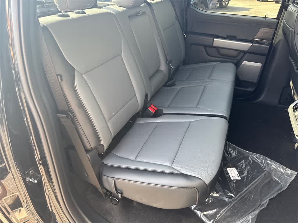 F-150 Lightning Lariat is nicely equipped with Equipment Group 511A Standard, 4-Wheel Disc Brakes, 8 Speakers, ABS brakes, ActiveX Trimmed Heated & Ventilated Seats, Adjustable pedals, Air Conditioning, Alloy wheels, Auto High-beam Headlights, Auto tilt-away steering wheel, Auto-dimming door mirrors, Auto-dimming Rear-View mirror, Automatic temperature control, Brake assist, Bumpers: body-color, Compass, Delay-off headlights, Driver door bin, Driver vanity mirror, Dual front impact airbags, Dual front side impact airbags, Electronic Stability Control, Emergency communication system: SYNC 4 911 Assist, Four wheel independent suspension, Front anti-roll bar, Front Bucket Seats, Front Center Armrest, Front dual zone A/C, Front reading lights, Fully automatic headlights, Heated door mirrors, Heated front seats, Heated rear seats, Heated steering wheel, Illuminated entry, Illuminated running boards, Knee airbag, Low tire pressure warning, Memory seat, Mobile Power Cord (120/240V), Navigation system: Connected Navigation, Occupant sensing airbag, Outside temperature display, Overhead airbag, Overhead console, Panic alarm, Passenger door bin, Passenger vanity mirror, Pedal memory, Power door mirrors, Power driver seat, Power moonroof, Power passenger seat, Power steering, Power windows, Pro Power Onboard - 9.6 kW Exportable Power, Radio data system, Radio: B&O Sound System by Bang & Olufsen, Rain sensing wipers, Rear anti-roll bar, Rear reading lights, Rear seat center armrest, Rear step bumper, Rear window defroster, Remote keyless entry, Security system, Speed control, Speed-sensing steering, Split folding rear seat, Steering wheel memory, Steering wheel mounted audio controls, SYNC 4A w/Enhanced Voice Recognition, Telescoping steering wheel, Tilt steering wheel, Traction control, Trip computer, Turn signal indicator mirrors, Variably intermittent wipers, Ventilated front seats, and Wheels: 20 Alloy Dark Carbonized Gray.