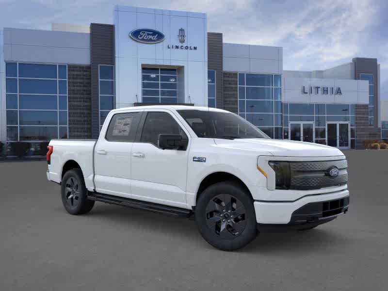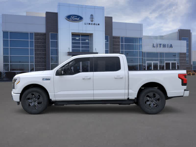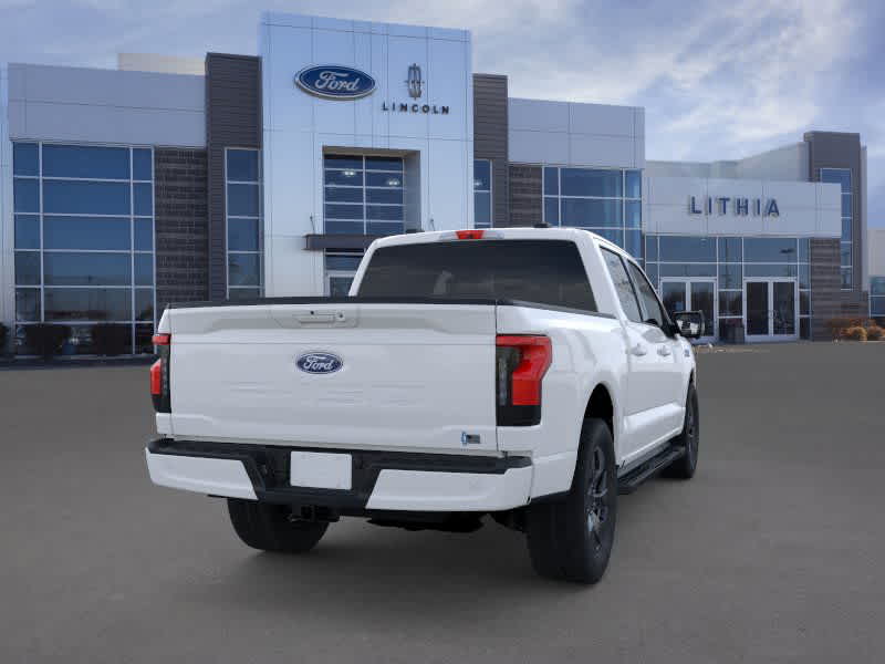 TAILGATE STEP W/TAILGATE WORK SURFACE, 18 SPARE WHEEL & TIRE. 2025 Ford F-150 Lightning with Oxford White exterior and Medium Dark Slate interior features a Electric Motor. Approx. Original Base Sticker Price: $73,400*.