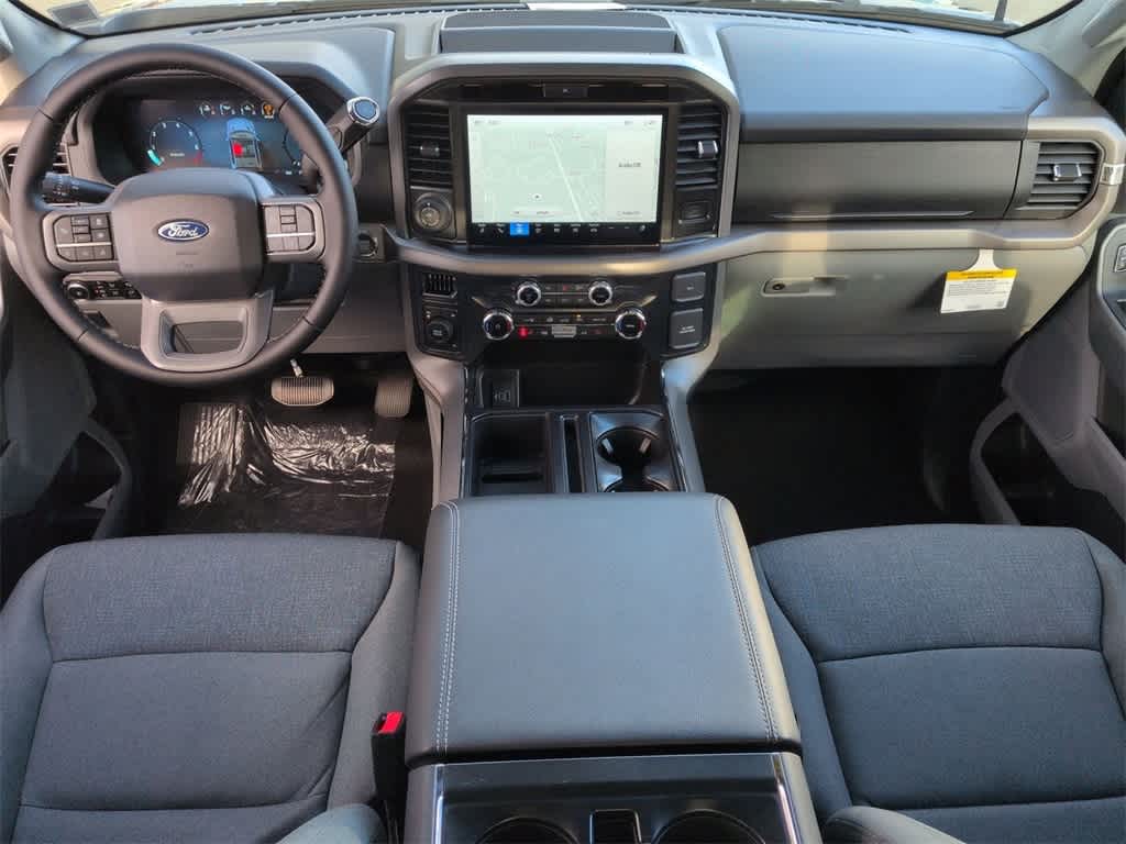 F-150 XLT is nicely equipped with Equipment Group 302A Mid (360 Degree Camera, 400W Cab & Bed Outlets, 6 Angular Bright Anodized Step Bar, Adaptive Cruise Control w/Stop & Go, Auto-Dimming Rear-View Mirror, Black Painted Grille w/Chrome Center Bar, Chrome Door & Tailgate Handles, Chrome Single-Tip Exhaust, Cloth 40/Console/40 Front Seats, Connected Navigation, Driver State Detection, Dual-Zone Electronic Automatic Temperature Control, Evasive Steering Assist, Ford Co-Pilot360 Assist 2.0, Front Parking Sensors, Heated Front Seats, Intelligent Access w/Push Button Start, Power Glass Heated Sideview Mirrors, Power-Sliding Rear Window, Remote Start System w/Remote Tailgate Release, Towing Technology, and Wrapped Steering Wheel), GVWR: 6,650 lbs Payload Package, 3.55 Axle Ratio, 4-Wheel Disc Brakes, 6 Speakers, ABS brakes, Air Conditioning, Alloy wheels, AM/FM radio: SiriusXM with 360L, Auto High-beam Headlights, Brake assist, Bumpers: chrome, Chrome wheels, Cloth 40/20/40 Front Seat, Compass, Delay-off headlights, Driver door bin, Driver vanity mirror, Dual front impact airbags, Dual front side impact airbags, Electronic Stability Control, Emergency communication system: SYNC 4 911 Assist, Front anti-roll bar, Front Center Armrest, Front fog lights, Front License Plate Bracket, Front reading lights, Front wheel independent suspension, Fully automatic headlights, Heated door mirrors, Illuminated entry, Internet access capable: FordPass Connect 5G, Low tire pressure warning, Occupant sensing airbag, Outside temperature display, Overhead airbag, Overhead console, Panic alarm, Passenger door bin, Passenger vanity mirror, Power door mirrors, Power steering, Power windows, Radio data system, Radio: AM/FM Stereo w/SiriusXM 360L, Rear Parking Sensors, Rear reading lights, Rear step bumper, Rear window defroster, Remote keyless entry, Retractable Rear Center Step, Security system, Speed control, Split folding rear seat, Steering wheel mounted audio controls, SYNC 4 w/Enhanced Voice Recognition, Tachometer, Telescoping steering wheel, Tilt steering wheel, Traction control, Tray Style Floor Liner w/Carpet Mats, Trip computer, Variably intermittent wipers, Voltmeter, and Wheels: 18 Chrome-Like PVD.