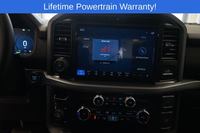 F-150 XLT is nicely equipped with Equipment Group 302A Mid (360 Degree Camera, 400W Cab & Bed Outlets, 6" Angular Bright Anodized Step Bar, Adaptive Cruise Control w/Stop & Go, Auto-Dimming Rear-View Mirror, Black Painted Grille w/Chrome Center Bar, Chrome Door & Tailgate Handles, Chrome Single-Tip Exhaust, Cloth 40/Console/40 Front Seats, Connected Navigation, Driver State Detection, Dual-Zone Electronic Automatic Temperature Control, Evasive Steering Assist, Ford Co-Pilot360 Assist 2.0, Front Parking Sensors, Heated Front Seats, Intelligent Access w/Push Button Start, Power Glass Heated Sideview Mirrors, Power-Sliding Rear Window, Remote Start System w/Remote Tailgate Release, Towing Technology, and Wrapped Steering Wheel), Mobile Office Package (Console Worksurface and Partitioned Lockable Rear Storage), 4-Wheel Disc Brakes, 6 Speakers, ABS brakes, Air Conditioning, Alloy wheels, AM/FM radio: SiriusXM with 360L, Auto High-beam Headlights, BlueCruise (Equipment + 1-Year Plan), Brake assist, Bumpers: chrome, Chrome wheels, Cloth 40/20/40 Front Seat, Compass, Delay-off headlights, Driver door bin, Driver vanity mirror, Dual front impact airbags, Dual front side impact airbags, Electronic Stability Control, Emergency communication system: SYNC 4 911 Assist, Front anti-roll bar, Front Center Armrest, Front fog lights, Front License Plate Bracket, Front reading lights, Front wheel independent suspension, Fully automatic headlights, Heated door mirrors, Illuminated entry, Internet access capable: FordPass Connect 5G, Low tire pressure warning, Occupant sensing airbag, Outside temperature display, Overhead airbag, Overhead console, Panic alarm, Passenger door bin, Passenger vanity mirror, Power door mirrors, Power steering, Power windows, Radio data system, Radio: AM/FM Stereo w/SiriusXM 360L, Rear Parking Sensors, Rear reading lights, Rear step bumper, Rear window defroster, Remote keyless entry, Security system, Speed control, Split folding rear seat, Steering wheel mounted audio controls, SYNC 4 w/Enhanced Voice Recognition, Tachometer, Telescoping steering wheel, Tilt steering wheel, Tough Bed Spray-In Bedliner, Traction control, Tray Style Floor Liner w/Carpet Mats, Trip computer, Variably intermittent wipers, Voltmeter, and Wheels: 18" Chrome-Like PVD.