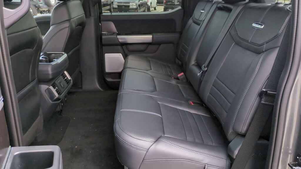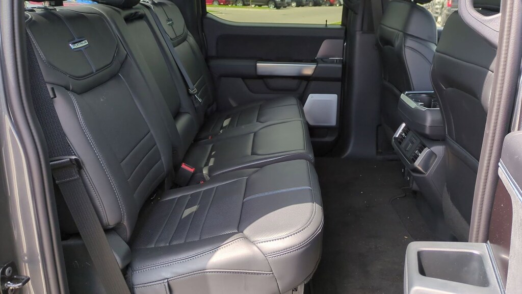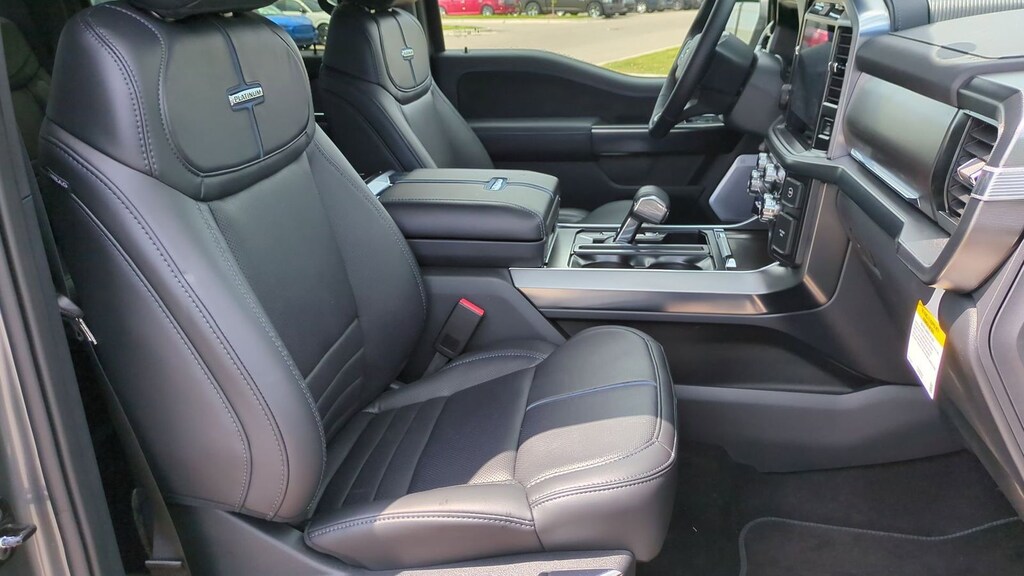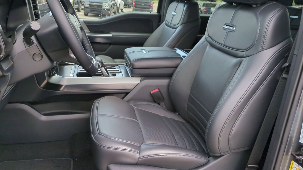 2025 Ford F-150 Platinum Is nicely equipped with Equipment Group 702A High, 3.5L PowerBoost Full-Hybrid V6, 4WD, 4-Wheel Disc Brakes, 8 Speakers, ABS brakes, Adjustable pedals, Air Conditioning, Alloy wheels, AM/FM radio: SiriusXM with 360L, Auto High-beam Headlights, Auto tilt-away steering wheel, Auto-dimming door mirrors, Auto-dimming Rear-View mirror, Automatic temperature control, Brake assist, Bumpers: body-color, Compass, Delay-off headlights, Driver door bin, Driver vanity mirror, Dual front impact airbags, Dual front side impact airbags, Electronic Stability Control, Emergency communication system: SYNC 4 911 Assist, Front anti-roll bar, Front Bucket Seats, Front Center Armrest, Front dual zone A/C, Front fog lights, Front reading lights, Front wheel independent suspension, Fully automatic headlights, Garage door transmitter, Heated door mirrors, Heated front seats, Heated rear seats, Heated steering wheel, Illuminated entry, Illuminated Ford Logo Badge, Internet access capable: FordPass Connect 5G, Leather steering wheel, Low tire pressure warning, Memory seat, Navigation system: Connected Navigation, Occupant sensing airbag, Outside temperature display, Overhead airbag, Overhead console, Panic alarm, Passenger door bin, Passenger vanity mirror, Pedal memory, Power door mirrors, Power driver seat, Power passenger seat, Power steering, Power windows, Radio data system, Radio: B&O Sound System by Bang & Olufsen, Rain sensing wipers, Rear reading lights, Rear seat center armrest, Rear step bumper, Rear window defroster, Remote keyless entry, SecuriCode Keyless-Entry Keypad, Security system, Speed control, Split folding rear seat, Steering wheel memory, Steering wheel mounted audio controls, SYNC 4 w/Enhanced Voice Recognition, Tachometer, Telescoping steering wheel, Tilt steering wheel, Traction control, Trip computer, Turn signal indicator mirrors, Unique Multi-Contour Leather Bucket Seats, Variably intermittent wipers, Ventilated front seats, Voltmeter, and Wheels: 20" Painted Gloss Ebony Black. Factory MSRP: $84,195 Dealer Discount of $8,534 off MSRP
