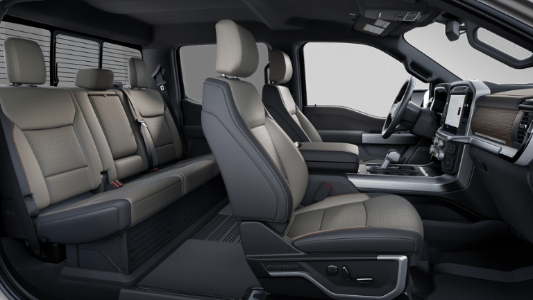 F-150 Lariat is nicely equipped with Equipment Group 501A Mid (Wheels: 20" Chrome-Like PVD), FX4 Off-Road Package (4x4 FX4 Off-Road Bodyside Decal, Hill Descent Control, Monotube Rear Shocks, Off-Road Tuned Front Shock Absorbers, Rock Crawl Mode, and Tray Style Floor Liner w/o Carpet Mats), Mobile Office Package (Console Worksurface, Partitioned Lockable Rear Storage, and Wireless Charging), Tow/Haul Package, 3.5L PowerBoost Full-Hybrid V6, 4WD, 4-Wheel Disc Brakes, 8 Speakers, ABS brakes, ActiveX Trimmed Bucket Seats, ActiveX Trimmed Smoked Truffle Bucket Seats, Adjustable pedals, Air Conditioning, Alloy wheels, AM/FM radio: SiriusXM with 360L, Auto High-beam Headlights, Auto-dimming door mirrors, Auto-dimming Rear-View mirror, Automatic temperature control, Brake assist, Bumpers: chrome, Chrome wheels, Compass, Delay-off headlights, Driver door bin, Driver vanity mirror, Dual front impact airbags, Dual front side impact airbags, Electronic Stability Control, Emergency communication system: SYNC 4 911 Assist, Front anti-roll bar, Front Bucket Seats, Front Center Armrest, Front dual zone A/C, Front fog lights, Front reading lights, Front wheel independent suspension, Fully automatic headlights, Garage door transmitter, Heated door mirrors, Heated front seats, Heated steering wheel, Illuminated entry, Internet access capable: FordPass Connect 5G, Low tire pressure warning, Memory seat, Navigation system: Connected Navigation, Occupant sensing airbag, Outside temperature display, Overhead airbag, Overhead console, Panic alarm, Passenger door bin, Passenger vanity mirror, Pedal memory, Power door mirrors, Power driver seat, Power passenger seat, Power steering, Power windows, Radio data system, Radio: B&O Sound System by Bang & Olufsen, Rain sensing wipers, Rear reading lights, Rear seat center armrest, Rear step bumper, Rear window defroster, Remote keyless entry, Security system, Speed control, Split folding rear seat, Steering wheel mounted audio controls, SYNC 4 w/Enhanced Voice Recognition, Tachometer, Telescoping steering wheel, Tilt steering wheel, Traction control, Trip computer, Turn signal indicator mirrors, Variably intermittent wipers, Ventilated front seats, Voltmeter, and Wheels: 18" Chrome-Like PVD. See dealer for details. Price may include Ford Employee discount. Price does not include licensing costs, registration fees, taxes and dealer doc fee of $280, which are to be paid by the consumer.$2000 - Retail Customer Cash. Exp. 03/31/2026 $500 - Retail Bonus Cash. Exp. 03/31/2026 $750 - 2026 College Student Recognition Exclusive Cash Reward Pgm. Exp. 01/04/2027