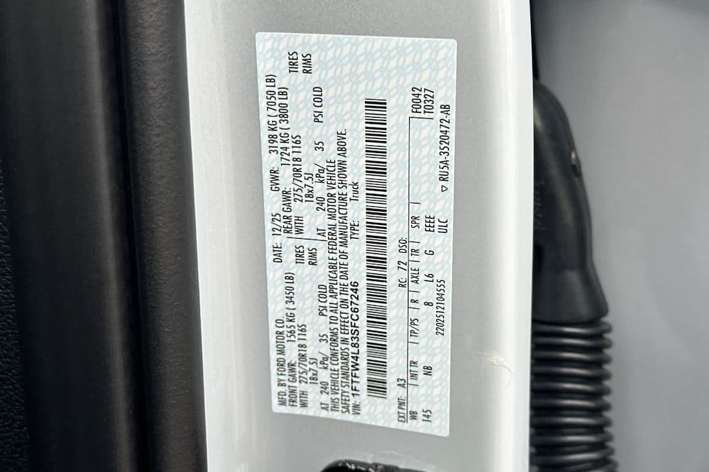 Lithia Ford and Lincoln of Fresno is pleased to offer this Space White Metallic 2025 Ford F-150 Tremor for purchase, this vehicle is well equipped with many features including: GVWR: 7,100 lbs Payload Package, 4WD, 4-Wheel Disc Brakes, 8 Speakers, ABS brakes, Adjustable pedals, Air Conditioning, Alloy wheels, AM/FM radio: SiriusXM with 360L, Auto High-beam Headlights, Auto-dimming door mirrors, Auto-dimming Rear-View mirror, Automatic temperature control, Brake assist, Bumpers: body-color, Compass, Delay-off headlights, Driver door bin, Driver vanity mirror, Dual front impact airbags, Dual front side impact airbags, Electronic Locking w/3.73 Axle Ratio, Electronic Stability Control, Emergency communication system: SYNC 4 911 Assist, Front anti-roll bar, Front Bucket Seats, Front Center Armrest, Front dual zone A/C, Front fog lights, Front reading lights, Front wheel independent suspension, Fully automatic headlights, Heated door mirrors, Heated front seats, Illuminated entry, Internet access capable: FordPass Connect 5G, Low tire pressure warning, Navigation system: Connected Navigation, Occupant sensing airbag, Outside temperature display, Overhead airbag, Overhead console, Panic alarm, Passenger door bin, Passenger vanity mirror, Power door mirrors, Power driver seat, Power passenger seat, Power steering, Power windows, Radio data system, Radio: B&O Sound System by Bang & Olufsen, Rear reading lights, Rear step bumper, Rear window defroster, Remote keyless entry, Security system, Speed control, Split folding rear seat, Steering wheel mounted audio controls, SYNC 4 w/Enhanced Voice Recognition, Tachometer, Telescoping steering wheel, Tilt steering wheel, Traction control, Trip computer, Turn signal indicator mirrors, Unique Sport Cloth 40/Console/40 Power Front Seat, Variably intermittent wipers, Voltmeter, and Wheels: 18 Alloy w/Dark Matte Finish. 4WD 10-Speed Automatic 3.5L V6 EcoBoost Tremor 4WD.