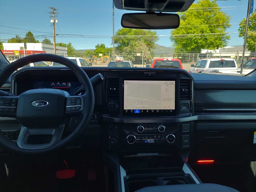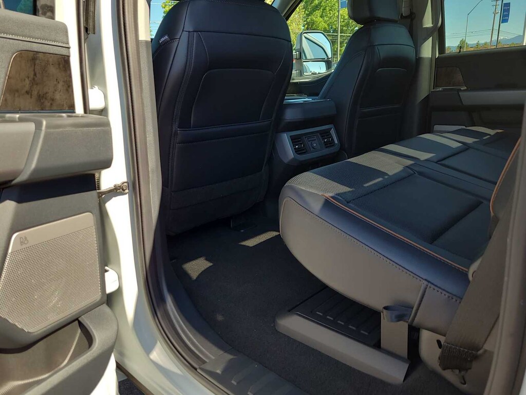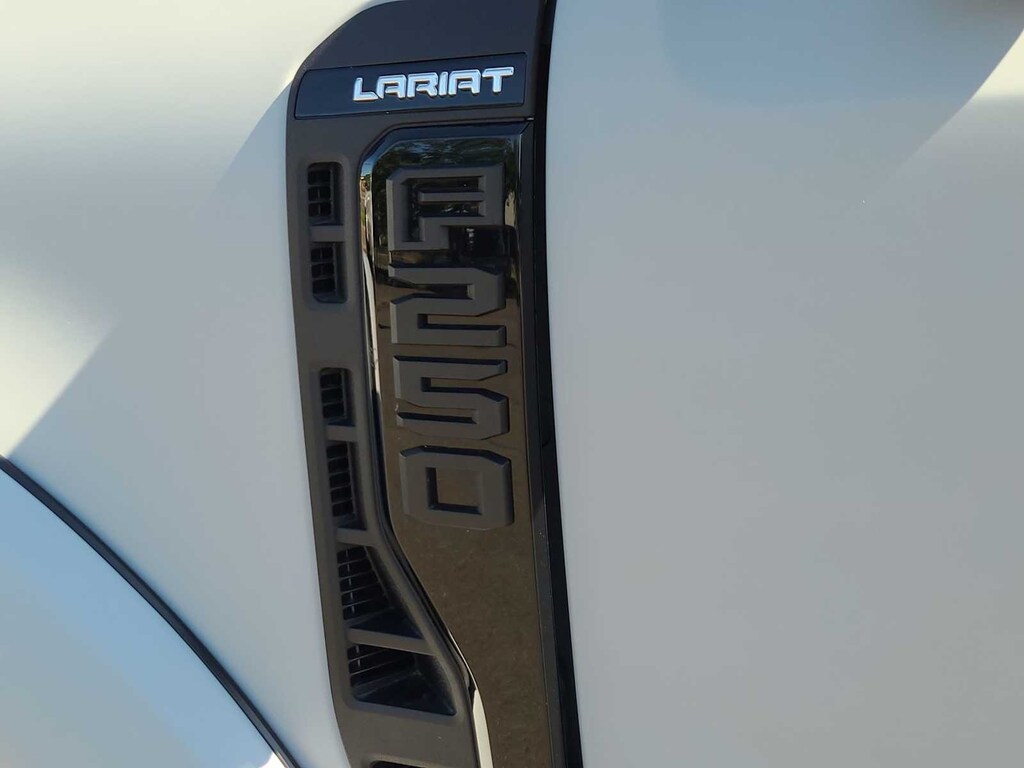 ENGINE: 6.7L HIGH OUTPUT POWER STROKE V8 DIESEL Turbo diesel B20, manual push-button engine-exhaust braking and Operator Commanded Regeneration (OCR), 250 Amp Alternator, 34 Gallon Fuel Tank, 3.31 Axle Ratio, High Capacity 11.6 Axle Upgrade Package, increased GCW and upgraded 11.6 axle, Note: Salespersons portfolio or trailer towing guide should be consulted for specific trailer towing or camper limits and corresponding required equipment, axle ratios and model availability, See supplemental reference for vehicle height consideration, Dual AGM 68 AH Battery, LARIAT ULTIMATE PACKAGE Pro Trailer Hitch Assist, Ford Co-Pilot 360 Assist 2.0, 360-degree camera, rear view camera and reverse brake assist, Pre-Collision Assist, Automatic Emergency Braking (AEB), pedestrian detection, forward collision warning, dynamic brake support and intersection assist, Post-Collision Braking, Lane-Keeping System, lane-keeping alert, lane-keeping aid and driver alert, Front & Rear Parking Sensors, Automatic High Beam, Adaptive Cruise Control w/Stop-and-Go, lane centering and predictive speed assist, 4-Way Adjustable Headrests, Power-Sliding Rear-Window w/Defrost, Tailgate Step & Handle, Head-Up Display, Power-Deployable Running Boards, Pro Trailer Backup Assist, trailer reverse guidance, Radio: B&O Unleashed Sound System by Bang & Olufsen, HD Radio w/14 speakers, BLACK APPEARANCE PACKAGE front and rear black Ford ovals, box side decal (4x4, FX4 or Tremor) and ebony black fender vent surround dark fender badge, Rear Wheel Well Liners (Pre-Installed), Black Painted Front Grille Surround, Ebony Black Painted Mirror Caps, Tough Bed Spray-In Bedliner, tailgate-guard, black box bed tie-down hooks and black bed attachment bolts, Body Color Front & Rear Bumpers, Wheels: 20 Machined & Ebony Black High Gloss, Black premium painted aluminum, gloss black hub cover/center ornament, Tires: LT275/65Rx20E BSW Automatic Transmission, Spare may not be the same as road tire, 6 Ebony Black Angular Running Boards, TWIN PANEL POWER MOONROOF map lights and moonroof switches, ELECTRONIC-LOCKING W/3.55 AXLE RATIO, TRANSMISSION: TORQSHIFT 10-SPEED AUTOMATIC SelectShift and selectable drive modes: normal, eco, slippery roads, tow/haul and off-road. MP3 Player, Privacy Glass.