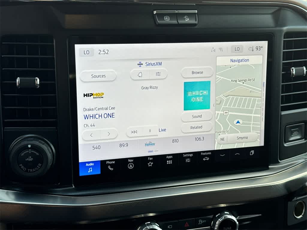 F-350 SuperDuty King Ranch is nicely equipped with FX4 Off-Road Package (Hill Descent Control, Off-Road Specifically Tuned Shock Absorbers, and Unique FX4 Off-Road Box Decal), Order Code 710A (Flow-Through Console, Radio: B&O Unleashed Sound System by Bang & Olufsen, Unique King Ranch Leather 40/Console/40 Seats, and Wheels: 20 Bright Machined Cast Aluminum), 4WD, 14 Speakers, 4-Wheel Disc Brakes, 410 Amp Dual Alternators, ABS brakes, Adjustable pedals, Air Conditioning, All-Weather Floor Mats, Alloy wheels, AM/FM radio: SiriusXM with 360L, Auto High-beam Headlights, Auto tilt-away steering wheel, Auto-dimming Rear-View mirror, Automatic temperature control, Brake assist, Compass, Delay-off headlights, Driver door bin, Driver vanity mirror, Dual front impact airbags, Dual front side impact airbags, Electronic Stability Control, Emergency communication system: SYNC 4 911 Assist, Engine Block Heater, Front anti-roll bar, Front Bucket Seats, Front Center Armrest, Front dual zone A/C, Front fog lights, Front License Plate Bracket, Front reading lights, Fully automatic headlights, Garage door transmitter, Heads-Up Display, Heated door mirrors, Heated front seats, Heated rear seats, Heated steering wheel, Illuminated entry, Leather steering wheel, LED Roof Clearance Lights, Low tire pressure warning, Max Recline Seats, Memory seat, Navigation System, Outside temperature display, Overhead airbag, Overhead console, Panic alarm, Passenger door bin, Passenger vanity mirror, Pedal memory, Power door mirrors, Power driver seat, Power passenger seat, Power steering, Power windows, Pro Power Onboard - 2kW, Rain sensing wipers, Rapid-Heat Supplemental Cab Heater, Rear reading lights, Rear seat center armrest, Rear step bumper, Rear window defroster, Remote keyless entry, Security system, Speed control, Split folding rear seat, Steering wheel memory, Steering wheel mounted A/C controls, Steering wheel mounted audio controls, Tachometer, Telescoping steering wheel, Tilt steering wheel, Traction control, Trip computer, Turn signal indicator mirrors, Twin Panel Power Moonroof, Upfitter Switches (6), Variably intermittent wipers, and Ventilated front seats.