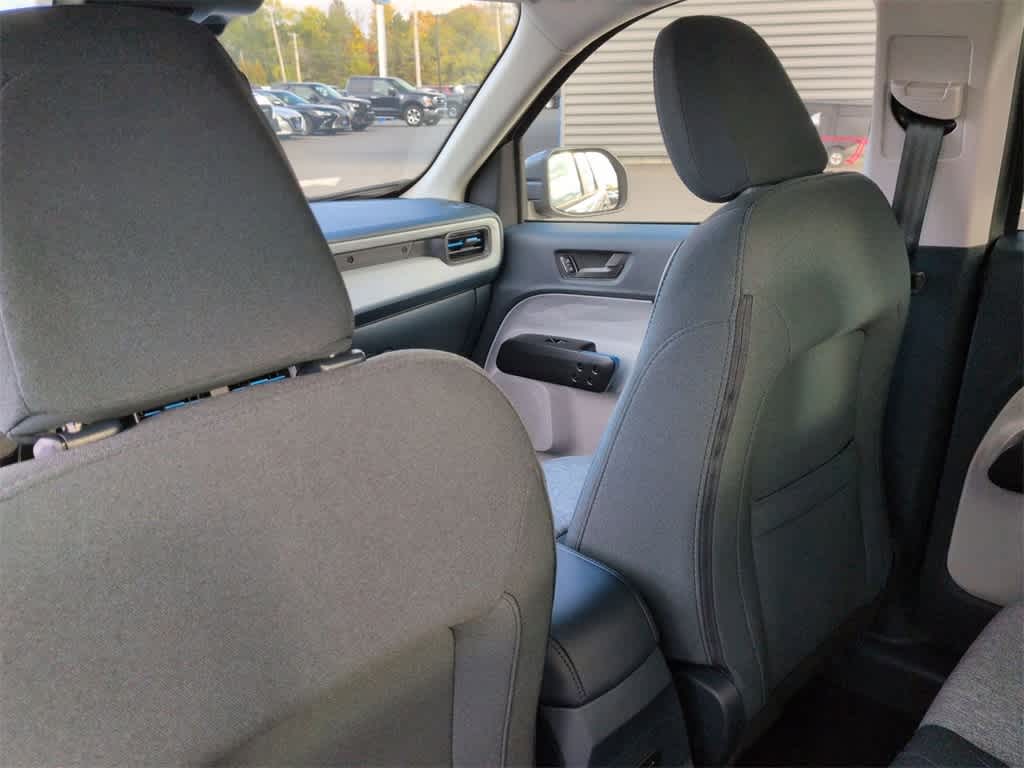 Maverick XLT is nicely equipped with Equipment Group 301A, Ford Co-Pilot360 1.0 (Auto High Beams, BLIS w/Cross-Traffic Alert, Cross Traffic Brake Assist, Evasive Steering Assist, Intersection Assist, Lane-Keeping System, Power Glass Manual-Folding Mirrors, Pre-Collision Assist w/Automatic Emergency Braking, Rear Parking Sensors, and Rear-View Camera), 2.91 Axle Ratio, 4-Wheel Disc Brakes, 6 Speakers, ABS brakes, Air Conditioning, Alloy wheels, AM/FM radio: SiriusXM with 360L, Apple CarPlay/Android Auto, Auto High-beam Headlights, Automatic temperature control, Brake assist, Bumpers: body-color, Compass, Delay-off headlights, Driver door bin, Driver vanity mirror, Dual front impact airbags, Dual front side impact airbags, Electronic Stability Control, Emergency communication system: SYNC 4 911 Assist, Exterior Parking Camera Rear, Four wheel independent suspension, Front & Rear Floor Liners w/Front Carpet Floor Mats, Front anti-roll bar, Front Bucket Seats, Front Center Armrest, Front reading lights, Fully automatic headlights, Illuminated entry, Internet access capable: FordPass Connect 5G, Knee airbag, Low tire pressure warning, Occupant sensing airbag, Outside temperature display, Overhead airbag, Overhead console, Panic alarm, Passenger door bin, Passenger vanity mirror, Power door mirrors, Power steering, Power windows, Radio data system, Radio: AM/FM Stereo w/6 Speakers, Rear anti-roll bar, Rear seat center armrest, Rear step bumper, Remote keyless entry, Security system, SiriusXM w/360L, Speed control, Speed-sensing steering, Steering wheel mounted audio controls, SYNC 4 w/Enhanced Voice Recognition, Telescoping steering wheel, Tilt steering wheel, Traction control, Trip computer, Unique Cloth Front Bucket Seats, and Wheels: 17 Carbonized Gray Painted Aluminum.