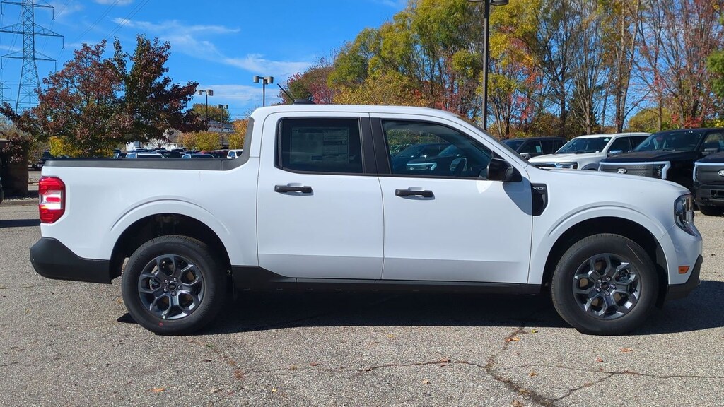 2025 Ford Maverick XLT Is nicely equipped with Equipment Group 302A, Ford Co-Pilot360 1.0 (Auto High Beams, BLIS w/Cross-Traffic Alert, Cross Traffic Brake Assist, Evasive Steering Assist, Intersection Assist, Lane-Keeping System, Power Glass Manual-Folding Mirrors, Pre-Collision Assist w/Automatic Emergency Braking, Rear Parking Sensors, and Rear-View Camera), XLT Luxury Package (400W Inverter w/USB Console Rear, Heated Mirror w/Painted Black Skull Caps, Heated Seats, LED Box Lighting, Remote Start System, and Soft Vinyl Wrapped Heated Steering Wheel), 2.91 Axle Ratio, 4-Wheel Disc Brakes, 6 Speakers, ABS brakes, Air Conditioning, Alloy wheels, AM/FM radio: SiriusXM with 360L, Apple CarPlay/Android Auto, Auto High-beam Headlights, Automatic temperature control, Brake assist, Bumpers: body-color, Commercial Roadside Assist Kit, Compass, Delay-off headlights, Driver door bin, Driver vanity mirror, Dual front impact airbags, Dual front side impact airbags, Electronic Stability Control, Emergency communication system: SYNC 4 911 Assist, Exterior Parking Camera Rear, First Aid Kit, Four wheel independent suspension, Front anti-roll bar, Front Bucket Seats, Front Center Armrest, Front reading lights, Fully automatic headlights, Illuminated entry, Internet access capable: FordPass Connect 5G, Knee airbag, Low tire pressure warning, Occupant sensing airbag, Outside temperature display, Overhead airbag, Overhead console, Panic alarm, Passenger door bin, Passenger vanity mirror, Power door mirrors, Power steering, Power windows, Radio data system, Radio: AM/FM Stereo w/6 Speakers, Rear anti-roll bar, Rear seat center armrest, Rear step bumper, Remote keyless entry, Security system, SiriusXM w/360L, Speed control, Speed-sensing steering, Steering wheel mounted audio controls, SYNC 4 w/Enhanced Voice Recognition, Telescoping steering wheel, Tilt steering wheel, Tough Bed Spray-In Bedliner, Traction control, Trip computer, Unique Cloth Front Bucket Seats, and Wheels: 17" Carbonized Gray Painted Aluminum. Factory MSRP: $35,785 Dealer Discount of $1,859 off MSRP