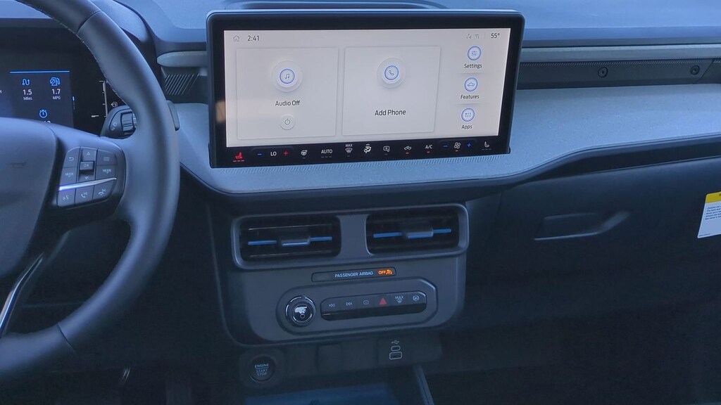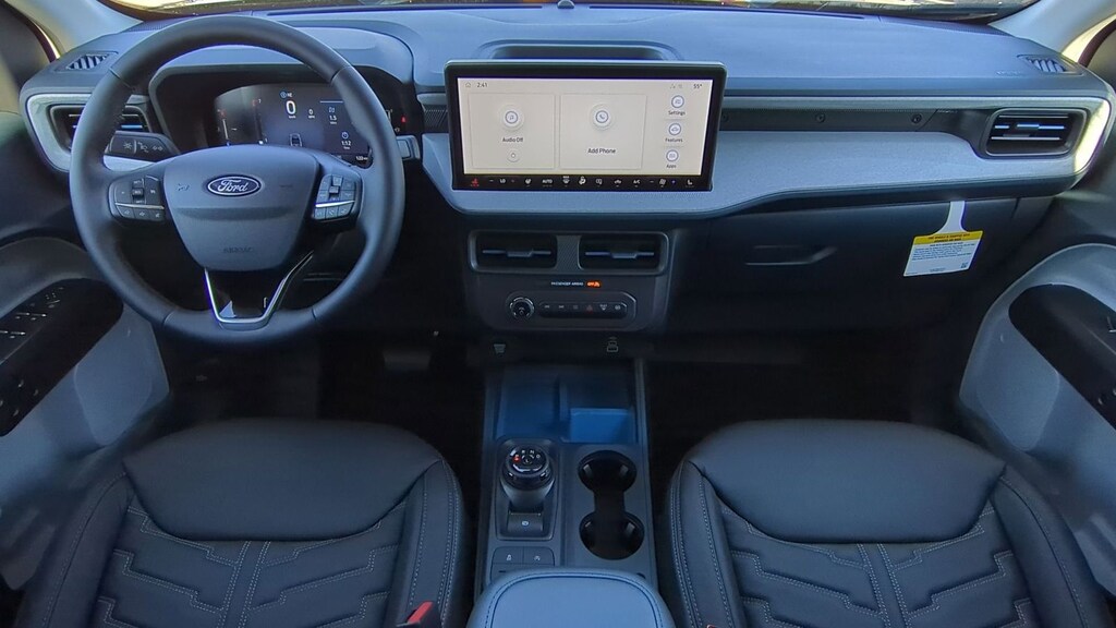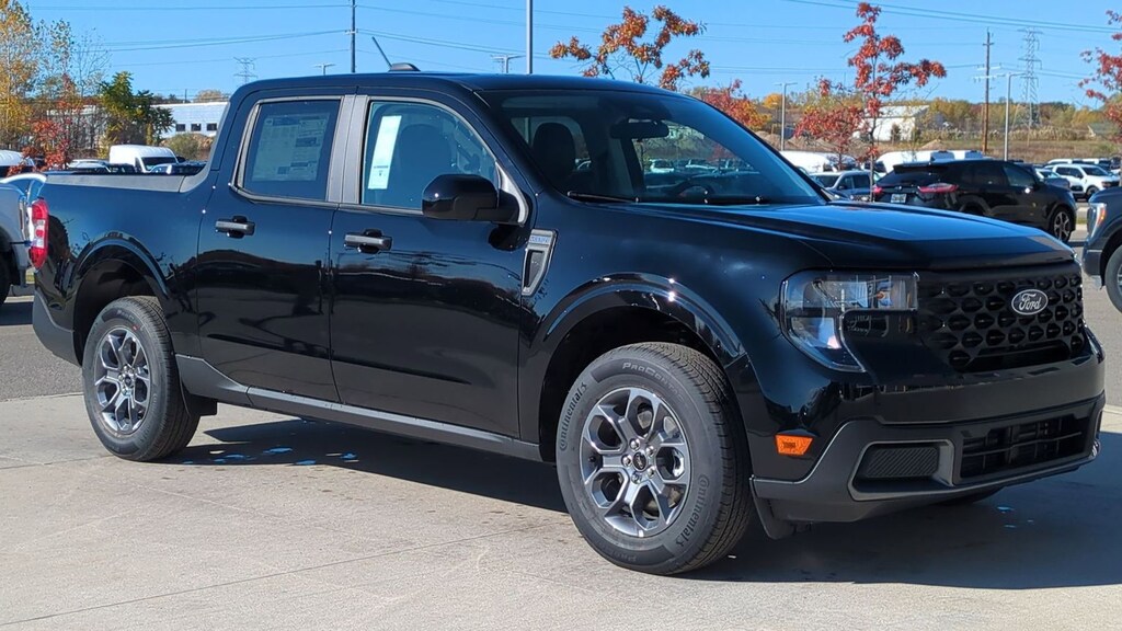 2025 Ford Maverick XLT Is nicely equipped with a Leather seat upgrade along with Equipment Group 302A, Ford Co-Pilot360 1.0 (Auto High Beams, BLIS w/Cross-Traffic Alert, Cross Traffic Brake Assist, Evasive Steering Assist, Intersection Assist, Lane-Keeping System, Power Glass Manual-Folding Mirrors, Pre-Collision Assist w/Automatic Emergency Braking, Rear Parking Sensors, and Rear-View Camera), XLT Luxury Package (400W Inverter w/USB Console Rear, Heated Mirror w/Painted Black Skull Caps, Heated Seats, LED Box Lighting, Remote Start System, and Soft Vinyl Wrapped Heated Steering Wheel), 2.91 Axle Ratio, 4-Wheel Disc Brakes, 6 Speakers, ABS brakes, Air Conditioning, Alloy wheels, AM/FM radio: SiriusXM with 360L, Apple CarPlay/Android Auto, Auto High-beam Headlights, Automatic temperature control, Brake assist, Bumpers: body-color, Compass, Delay-off headlights, Driver door bin, Driver vanity mirror, Dual front impact airbags, Dual front side impact airbags, Electronic Stability Control, Emergency communication system: SYNC 4 911 Assist, Exterior Parking Camera Rear, Four wheel independent suspension, Front anti-roll bar, Front Bucket Seats, Front Center Armrest, Front reading lights, Fully automatic headlights, Illuminated entry, Knee airbag, Low tire pressure warning, Occupant sensing airbag, Outside temperature display, Overhead airbag, Overhead console, Panic alarm, Passenger door bin, Passenger vanity mirror, Power door mirrors, Power Moonroof, Power steering, Power windows, Radio data system, Radio: AM/FM Stereo w/6 Speakers, Rear anti-roll bar, Rear seat center armrest, Rear step bumper, Remote keyless entry, Security system, SiriusXM w/360L, Speed control, Speed-sensing steering, Steering wheel mounted audio controls, SYNC 4 w/Enhanced Voice Recognition, Telescoping steering wheel, Tilt steering wheel, Tough Bed Spray-In Bedliner, Traction control, Trip computer, Unique Cloth Front Bucket Seats, and Wheels: 17" Carbonized Gray Painted Aluminum. Factory MSRP: $35,885 Dealer Discount of $1,942 off MSRP