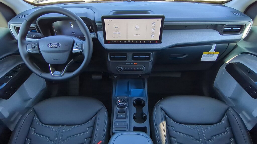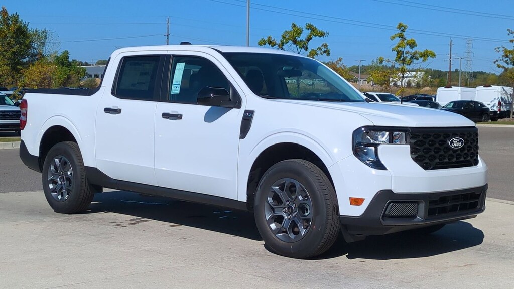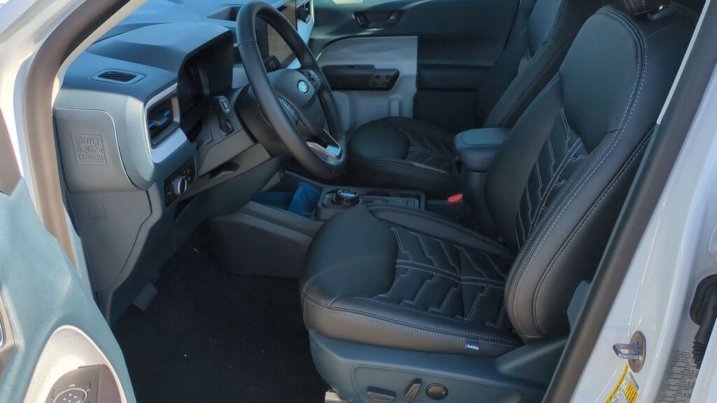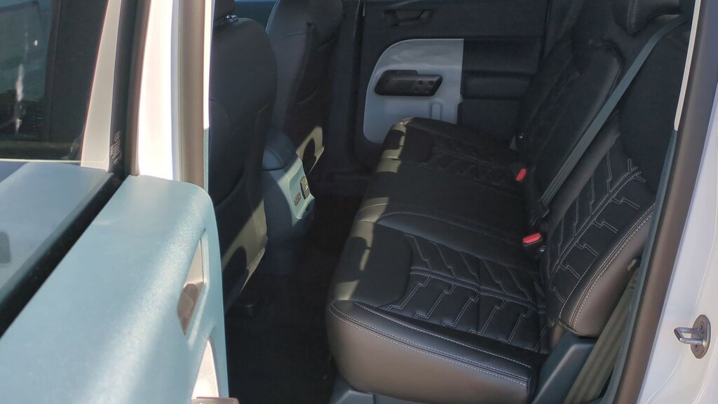 2025 Ford Maverick XLT Is nicely equipped with and upgraded leather seat option along with Equipment Group 302A, Ford Co-Pilot360 1.0 (Auto High Beams, BLIS w/Cross-Traffic Alert, Cross Traffic Brake Assist, Evasive Steering Assist, Intersection Assist, Lane-Keeping System, Power Glass Manual-Folding Mirrors, Pre-Collision Assist w/Automatic Emergency Braking, Rear Parking Sensors, and Rear-View Camera), XLT Luxury Package (400W Inverter w/USB Console Rear, Heated Mirror w/Painted Black Skull Caps, Heated Seats, LED Box Lighting, Remote Start System, and Soft Vinyl Wrapped Heated Steering Wheel), 2.91 Axle Ratio, 4-Wheel Disc Brakes, 6 Speakers, ABS brakes, Air Conditioning, Alloy wheels, AM/FM radio: SiriusXM with 360L, Apple CarPlay/Android Auto, Auto High-beam Headlights, Automatic temperature control, Brake assist, Bumpers: body-color, Compass, Delay-off headlights, Driver door bin, Driver vanity mirror, Dual front impact airbags, Dual front side impact airbags, Electronic Stability Control, Emergency communication system: SYNC 4 911 Assist, Exterior Parking Camera Rear, Four wheel independent suspension, Front anti-roll bar, Front Bucket Seats, Front Center Armrest, Front reading lights, Fully automatic headlights, Illuminated entry, Knee airbag, Low tire pressure warning, Occupant sensing airbag, Outside temperature display, Overhead airbag, Overhead console, Panic alarm, Passenger door bin, Passenger vanity mirror, Power door mirrors, Power Moonroof, Power steering, Power windows, Radio data system, Radio: AM/FM Stereo w/6 Speakers, Rear anti-roll bar, Rear seat center armrest, Rear step bumper, Remote keyless entry, Security system, SiriusXM w/360L, Speed control, Speed-sensing steering, Steering wheel mounted audio controls, SYNC 4 w/Enhanced Voice Recognition, Telescoping steering wheel, Tilt steering wheel, Tough Bed Spray-In Bedliner, Traction control, Trip computer, Unique Cloth Front Bucket Seats, and Wheels: 17" Carbonized Gray Painted Aluminum. Factory MSRP: $35,885 Dealer Discount of $1,942 off MSRP