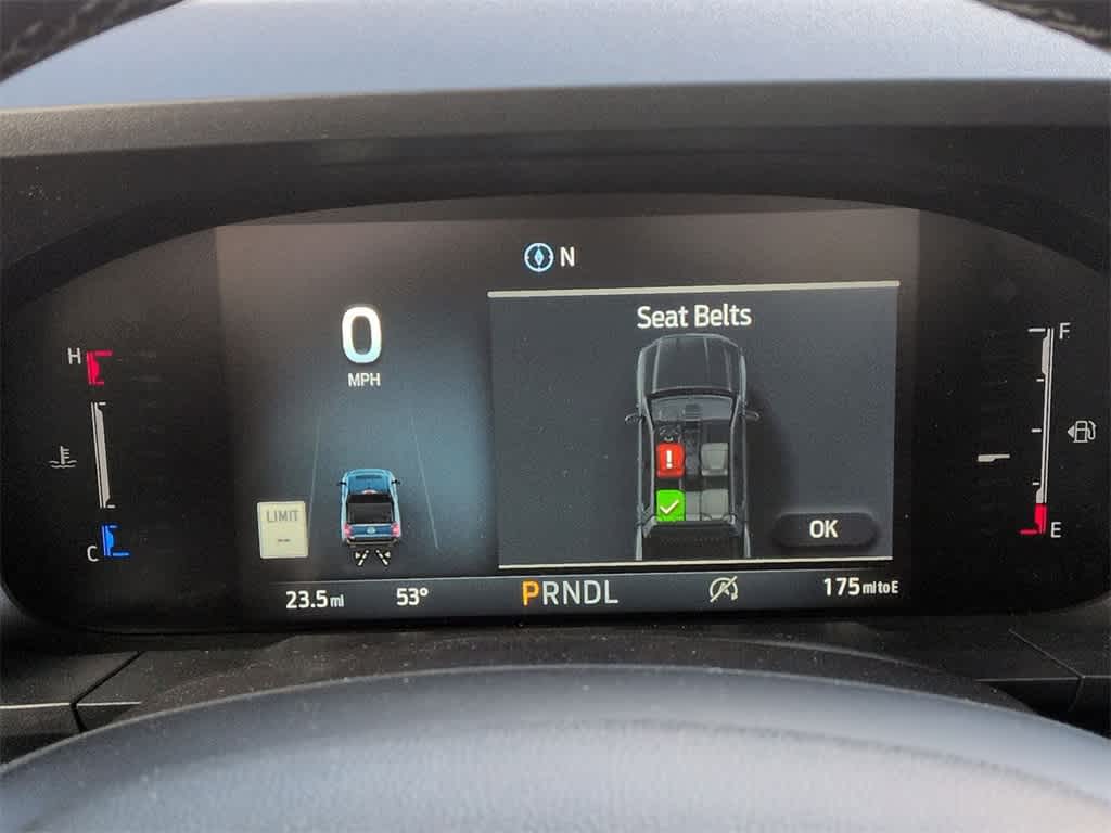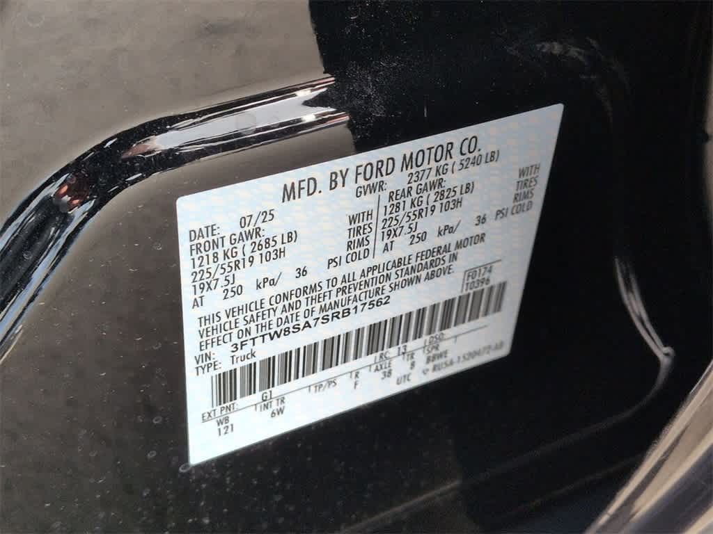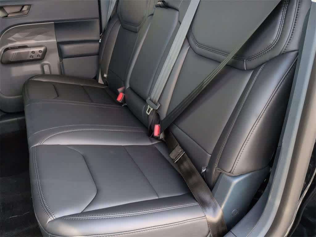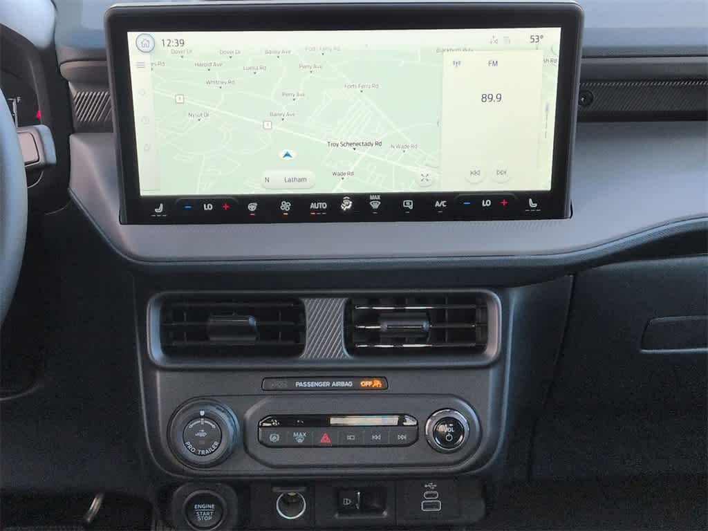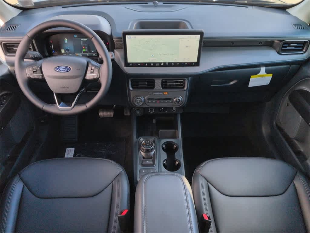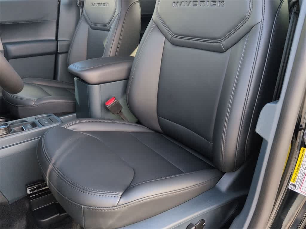 Maverick Lariat is nicely equipped with Black Appearance Package (Black Grille, Black Interior Accents, Front & Back Black Edition Ford Logo, and Wheels: 19 Black Painted Aluminum), Equipment Group 502A, 2.91 Axle Ratio, 4-Wheel Disc Brakes, 8 Speakers, ABS brakes, ActiveX Trimmed Heated Front Bucket Seats, Air Conditioning, Alloy wheels, AM/FM radio: SiriusXM with 360L, Apple CarPlay/Android Auto, Auto High-beam Headlights, Automatic temperature control, Brake assist, Bumpers: body-color, Compass, Delay-off headlights, Driver door bin, Driver vanity mirror, Dual front impact airbags, Dual front side impact airbags, Electronic Stability Control, Emergency communication system: SYNC 4 911 Assist, Exterior Parking Camera Rear, Four wheel independent suspension, Front & Rear Floor Liners w/Front Carpet Floor Mats, Front anti-roll bar, Front Bucket Seats, Front Center Armrest, Front dual zone A/C, Front reading lights, Fully automatic headlights, Heated door mirrors, Heated front seats, Heated steering wheel, Illuminated entry, Internet access capable: FordPass Connect 5G, Knee airbag, Low tire pressure warning, Navigation system: Connected Navigation, Occupant sensing airbag, Outside temperature display, Overhead airbag, Overhead console, Panic alarm, Passenger door bin, Passenger vanity mirror, Power door mirrors, Power driver seat, Power steering, Power windows, Radio data system, Radio: B&O Sound System by Bang & Olufsen, Rear anti-roll bar, Rear seat center armrest, Rear step bumper, Remote keyless entry, Security system, SiriusXM w/360L, Speed control, Speed-sensing steering, Steering wheel mounted audio controls, SYNC 4 w/Enhanced Voice Recognition, Telescoping steering wheel, Tilt steering wheel, Traction control, Trip computer, and Wheels: 19 Machined Painted Aluminum.