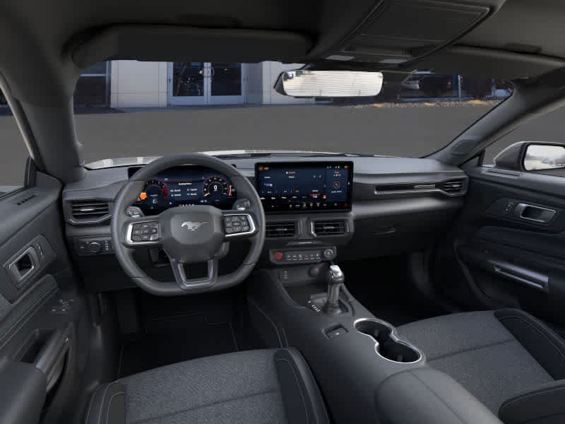EQUIPMENT GROUP 301A HIGH PACKAGE Ambient Lighting w/MyColor, SiriusXM w/360L & HD Radio, a three (3)-month prepaid subscription, Service is not available in Alaska and Hawaii, Note: Trial length and service availability may vary by model, model year or trim, Details: SiriusXM audio and data services each require a subscription sold separately, or as a package, by Sirius XM Radio Inc, Your SiriusXM service will automatically stop at the end of your trial unless you decide to subscribe, If you decide to continue service after your trial, the subscription plan you choose will automatically renew thereafter and you will be charged according to your chosen payment method at then-current rates, Fees and taxes apply, To cancel you must call SiriusXM at 1-866-635-2349, See SiriusXM Customer, MINI SPARE WHEEL & TIRE Replaces tire inflator and sealant kit, TRANSMISSION: 10-SPEED AUTOMATIC paddle shifters and remote rev, 3.15 Limited-Slip Rear-Axle, Leather-Wrapped Shift Knob, Remote Start System, ENGINE: 5.0L TI-VCT V8 stop/start system and Port Fueled Direct Injection (PFDI) (STD). 2025 Ford Mustang with Carbonized Gray exterior and Black Onyx interior features a 8 Cylinder Engine with 480 HP at 7150 RPM*. Approx. Original Base Sticker Price: $53,100*.