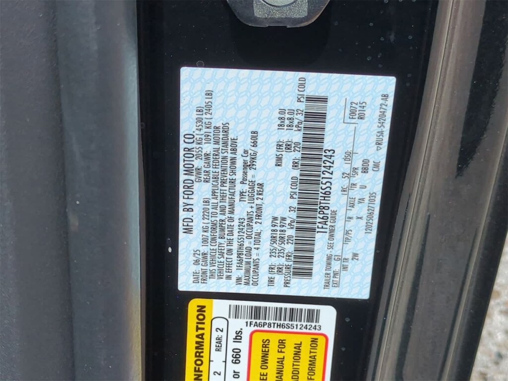 EQUIPMENT GROUP 101A HIGH PACKAGE SiriusXM w/360L & HD Radio, a three (3)-month prepaid subscription, Service is not available in Alaska and Hawaii, Note: Trial length and service availability may vary by model, model year or trim, Details: SiriusXM audio and data services each require a subscription sold separately, or as a package, by Sirius XM Radio Inc, Your SiriusXM service will automatically stop at the end of your trial unless you decide to subscribe, If you decide to continue service after your trial, the subscription plan you choose will automatically renew thereafter and you will be charged according to your chosen payment method at then-current rates, Fees and taxes apply, To cancel you must call SiriusXM at 1-866-635-2349, See SiriusXM Customer Agreement for complete terms at, MINI SPARE WHEEL & TIRE Replaces tire inflator and sealant kit, TRANSMISSION: 10-SPEED AUTOMATIC selectable drive modes (STD). 2025 Ford Mustang with Shadow Black exterior and Black Onyx interior features a 4 Cylinder Engine with 315 HP at 5000 RPM*.