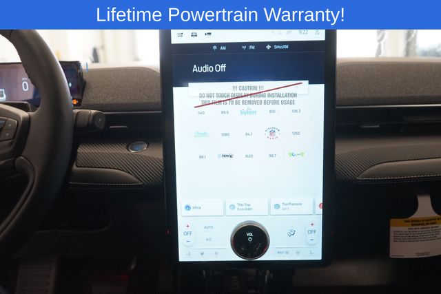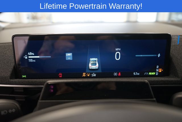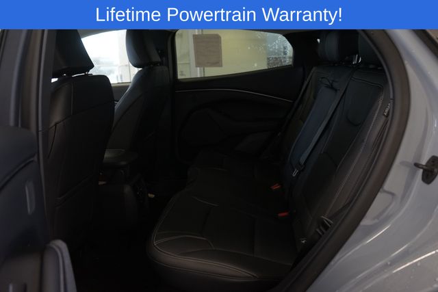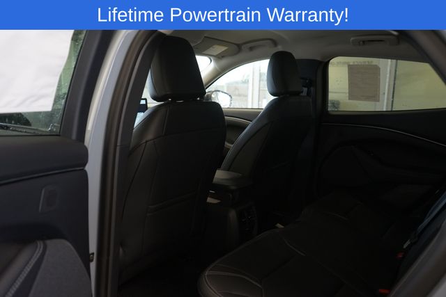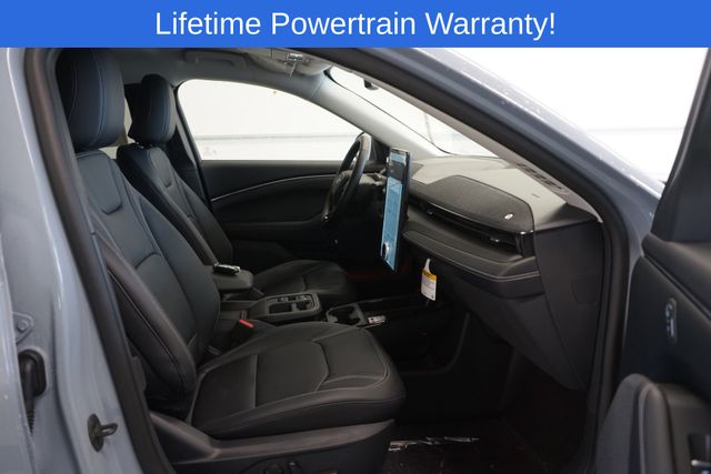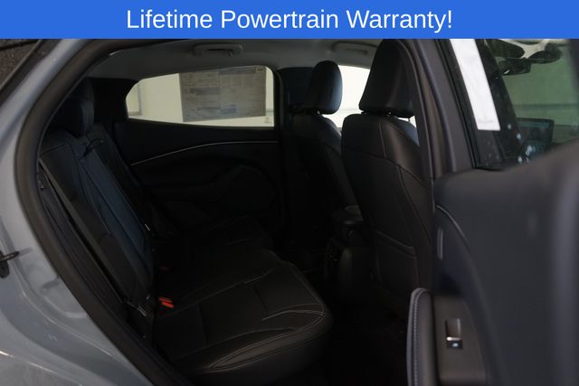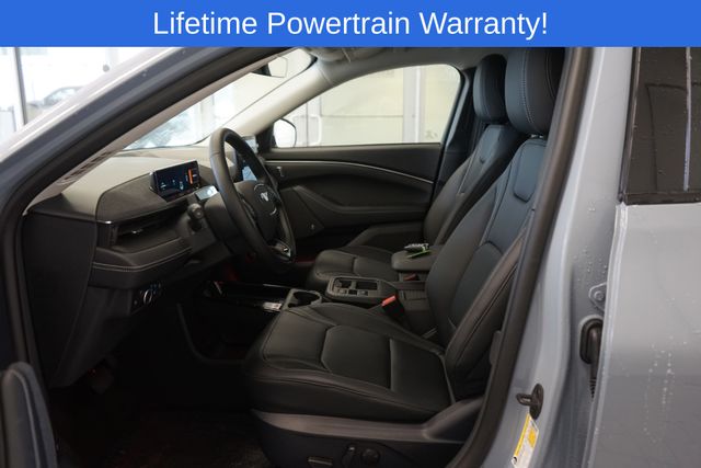 Mustang Mach-E Premium is nicely equipped with 10 Speakers, 4-Wheel Disc Brakes, ABS brakes, Air Conditioning, Alloy wheels, AM/FM radio: SiriusXM with 360L, Apple CarPlay/Android Auto, Auto High-beam Headlights, Auto-dimming Rear-View mirror, Automatic temperature control, Brake assist, Bumpers: body-color, Compass, Delay-off headlights, Driver door bin, Driver vanity mirror, Dual front impact airbags, Dual front side impact airbags, Electronic Stability Control, Emergency communication system: 911 Assist, Exterior Parking Camera Rear, Four wheel independent suspension, Front anti-roll bar, Front Bucket Seats, Front Center Armrest, Front dual zone A/C, Front reading lights, Fully automatic headlights, Garage door transmitter, Heated door mirrors, Heated front seats, Heated steering wheel, Heated/Ventilated Perforated ActiveX Bucket Seats, Illuminated entry, Knee airbag, Low tire pressure warning, Memory seat, Navigation system: Connected Navigation, Occupant sensing airbag, Outside temperature display, Overhead airbag, Overhead console, Panic alarm, Passenger door bin, Passenger vanity mirror, Power door mirrors, Power driver seat, Power Liftgate, Power passenger seat, Power steering, Power windows, Radio data system, Radio: B&O Sound System by Bang & Olufsen, Rain sensing wipers, Rear anti-roll bar, Rear seat center armrest, Rear side impact airbag, Rear window defroster, Rear window wiper, Remote keyless entry, Security system, SiriusXM w/360L, Speed control, Speed-sensing steering, Speed-Sensitive Wipers, Split folding rear seat, Spoiler, Steering wheel mounted audio controls, SYNC 4A w/Enhanced Voice Recognition, Telescoping steering wheel, Tilt steering wheel, Traction control, Trip computer, Turn signal indicator mirrors, Variably intermittent wipers, Ventilated front seats, and Wheels: 19" Bright Machined-Face Aluminum.