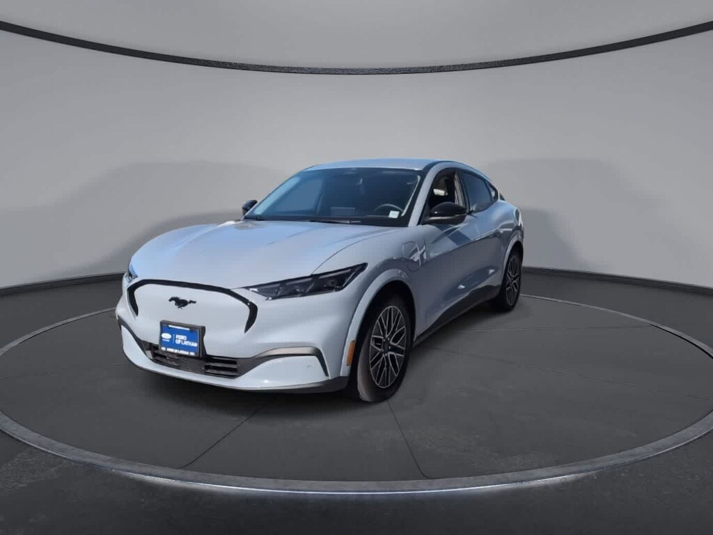 Mustang Mach-E Premium is nicely equipped with Equipment Group 300A Standard Package, 10 Speakers, 4-Wheel Disc Brakes, ABS brakes, Air Conditioning, Alloy wheels, AM/FM radio: SiriusXM with 360L, Apple CarPlay/Android Auto, Auto High-beam Headlights, Auto-dimming Rear-View mirror, Automatic temperature control, BlueCruise Equipped (1-Year Plan), Brake assist, Bumpers: body-color, Compass, Delay-off headlights, Driver door bin, Driver vanity mirror, Dual front impact airbags, Dual front side impact airbags, Electronic Stability Control, Emergency communication system: 911 Assist, Exterior Parking Camera Rear, Four wheel independent suspension, Front anti-roll bar, Front Bucket Seats, Front Center Armrest, Front dual zone A/C, Front License Plate Bracket, Front reading lights, Fully automatic headlights, Garage door transmitter, Heated door mirrors, Heated front seats, Heated steering wheel, Heated/Ventilated Perforated ActiveX Bucket Seats, Illuminated entry, Internet access capable: FordPass Connect, Knee airbag, Low tire pressure warning, Memory seat, Mobile Power Cord (120V/240V), Navigation system: Connected Navigation, Occupant sensing airbag, Outside temperature display, Overhead airbag, Overhead console, Panic alarm, Passenger door bin, Passenger vanity mirror, Power door mirrors, Power driver seat, Power Liftgate, Power passenger seat, Power steering, Power windows, Radio data system, Radio: B&O Sound System by Bang & Olufsen, Rain sensing wipers, Rear anti-roll bar, Rear seat center armrest, Rear side impact airbag, Rear window defroster, Rear window wiper, Remote keyless entry, Security system, SiriusXM w/360L, Speed control, Speed-sensing steering, Speed-Sensitive Wipers, Split folding rear seat, Spoiler, Steering wheel mounted audio controls, SYNC 4A w/Enhanced Voice Recognition, Telescoping steering wheel, Tilt steering wheel, Traction control, Trip computer, Turn signal indicator mirrors, Variably intermittent wipers, Ventilated front seats, and Wheels: 19 Bright Machined-Face Aluminum.