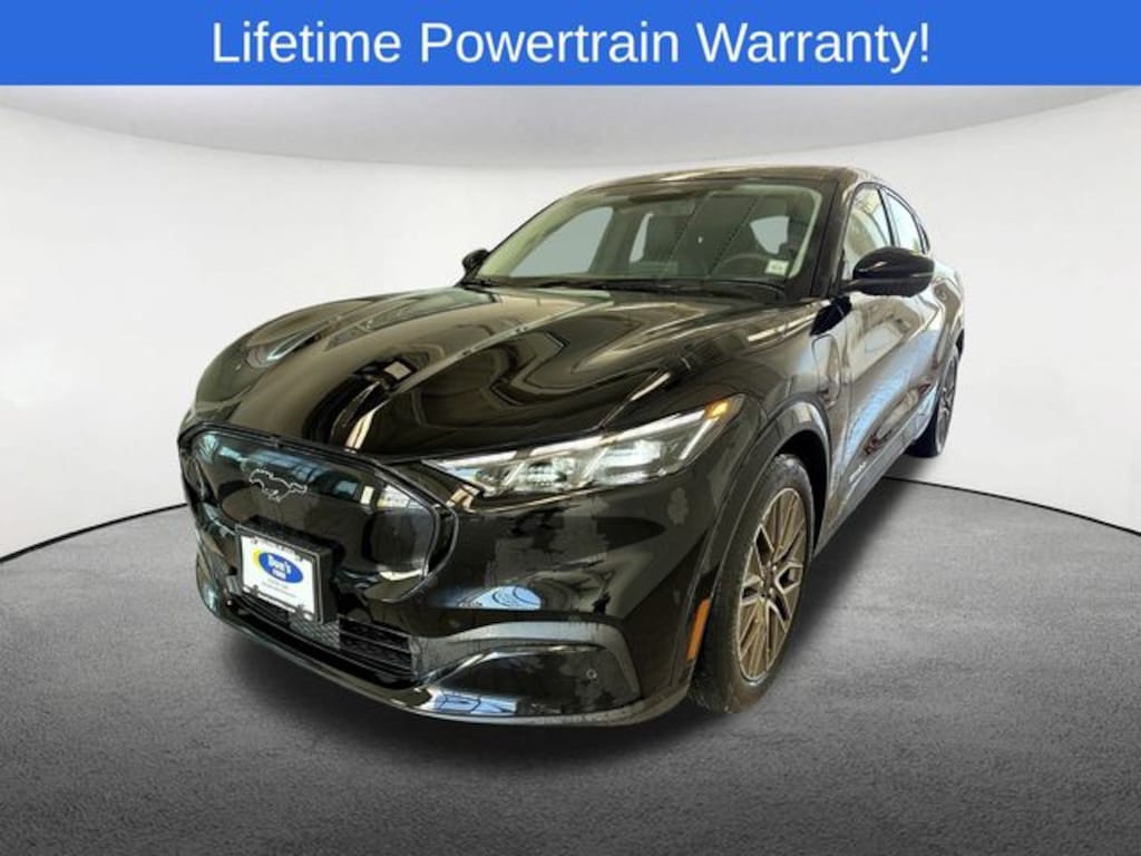 Mustang Mach-E Premium is nicely equipped with 10 Speakers, 4-Wheel Disc Brakes, ABS brakes, Air Conditioning, Alloy wheels, AM/FM radio: SiriusXM with 360L, Apple CarPlay/Android Auto, Auto High-beam Headlights, Auto-dimming Rear-View mirror, Automatic temperature control, Brake assist, Bumpers: body-color, Compass, Delay-off headlights, Driver door bin, Driver vanity mirror, Dual front impact airbags, Dual front side impact airbags, Electronic Stability Control, Emergency communication system: 911 Assist, Exterior Parking Camera Rear, Four wheel independent suspension, Front anti-roll bar, Front Bucket Seats, Front Center Armrest, Front dual zone A/C, Front reading lights, Fully automatic headlights, Garage door transmitter, Heated door mirrors, Heated front seats, Heated steering wheel, Heated/Ventilated Perforated ActiveX Bucket Seats, Illuminated entry, Knee airbag, Low tire pressure warning, Memory seat, Navigation system: Connected Navigation, Occupant sensing airbag, Outside temperature display, Overhead airbag, Overhead console, Panic alarm, Passenger door bin, Passenger vanity mirror, Power door mirrors, Power driver seat, Power Liftgate, Power passenger seat, Power steering, Power windows, Radio data system, Radio: B&O Sound System by Bang & Olufsen, Rain sensing wipers, Rear anti-roll bar, Rear seat center armrest, Rear side impact airbag, Rear window defroster, Rear window wiper, Remote keyless entry, Security system, SiriusXM w/360L, Speed control, Speed-sensing steering, Speed-Sensitive Wipers, Split folding rear seat, Spoiler, Steering wheel mounted audio controls, SYNC 4A w/Enhanced Voice Recognition, Telescoping steering wheel, Tilt steering wheel, Traction control, Trip computer, Turn signal indicator mirrors, Variably intermittent wipers, Ventilated front seats, and Wheels: 19" Bright Machined-Face Aluminum.