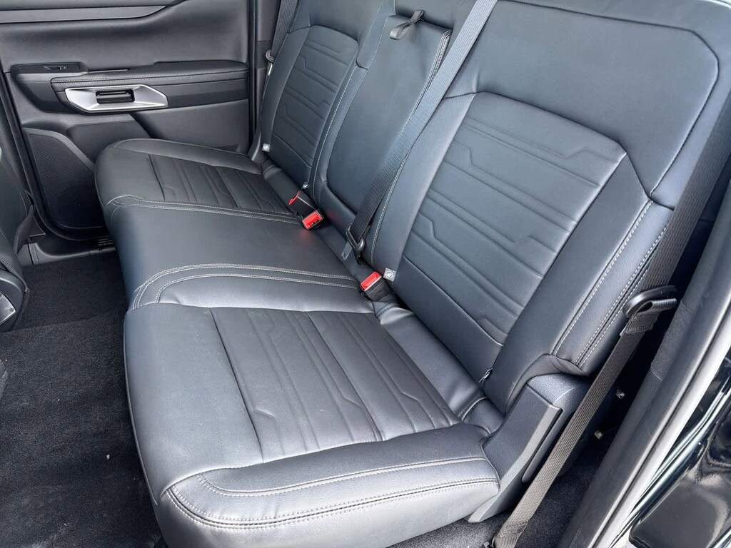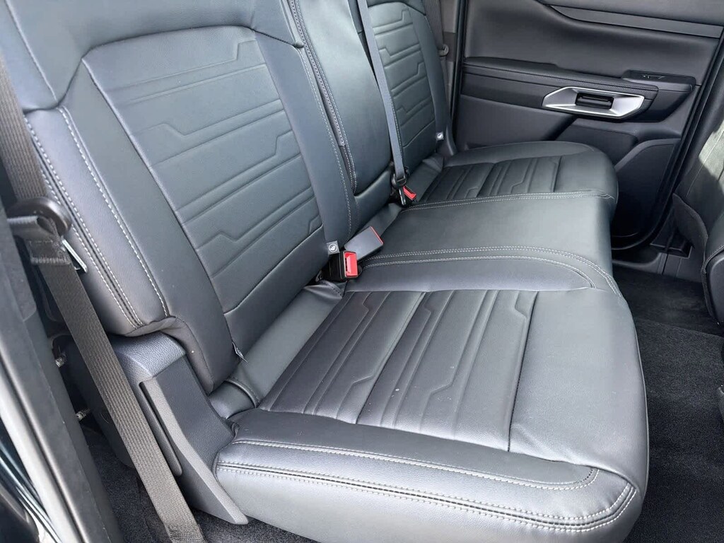 Ranger Lariat is nicely equipped with Chrome Accent Package (Body Color Painted Front Fascia, Chrome Center Bar & Grille Surround, Chrome Rear Bumper, Painted Body-Color Wheel Lip Molding, and Wheels: 18 Chrome-Like PVD), Convenience Package (120V/400W In-Cab & In-Bed Power Outlets and Wireless Charging Pad), Equipment Group 500A Standard, Sport Appearance Package (Gray Painted Center Bar & Grille Surround, Gray Painted Front Fascia & Rear Bumper, and Sport Box Decal), Trailer Tow Package (Class IV Trailer Hitch Receiver), 10 Speakers, 3.73 Axle Ratio, 4-Wheel Disc Brakes, ABS brakes, Air Conditioning, Alloy wheels, AM/FM radio: SiriusXM, Auto High-beam Headlights, Auto-dimming Rear-View mirror, Automatic temperature control, Black Running Boards, Brake assist, Compass, Delay-off headlights, Driver door bin, Driver vanity mirror, Dual front impact airbags, Dual front side impact airbags, Electronic Stability Control, Emergency communication system: SYNC 4 911 Assist, Front anti-roll bar, Front Bucket Seats, Front Center Armrest, Front dual zone A/C, Front fog lights, Front License Plate Bracket, Front reading lights, Front wheel independent suspension, Fully automatic headlights, Garage door transmitter, Heated door mirrors, Heated front seats, Heated steering wheel, Illuminated entry, Integrated Box Side Step, Internet access capable: FordPass Connect 4G, Leather Shift Knob, Leather steering wheel, Leather-Trimmed Front Heated Bucket Seats, Low tire pressure warning, Memory seat, Navigation system: Connected Navigation, Occupant sensing airbag, Outside temperature display, Overhead airbag, Overhead console, Panic alarm, Passenger door bin, Passenger vanity mirror, Power door mirrors, Power driver seat, Power passenger seat, Power steering, Power windows, Radio: B&O Sound System by Bang & Olufsen, Rain sensing wipers, Rear reading lights, Rear seat center armrest, Rear step bumper, Rear window defroster, Remote keyless entry, Security system, SiriusXM Satellite Radio, Speed control, Speed-sensing steering, Steering wheel mounted audio controls, SYNC 4A w/Connected Navigation, Telescoping steering wheel, Tilt steering wheel, Traction control, Tray Style Floor Liner w/Carpet Floor Mats, Trip computer, Turn signal indicator mirrors, Variably intermittent wipers, Voltmeter, and Wheels: 18 Machined Aluminum w/Dark Pockets.